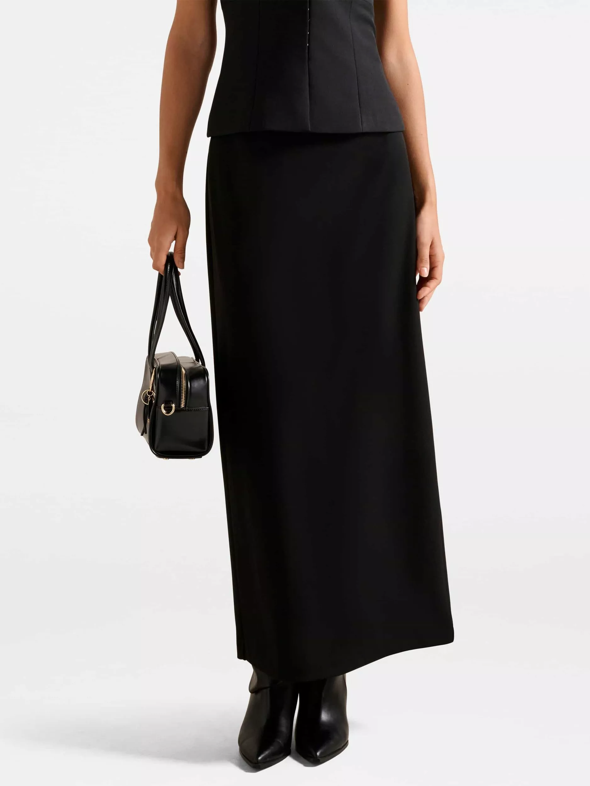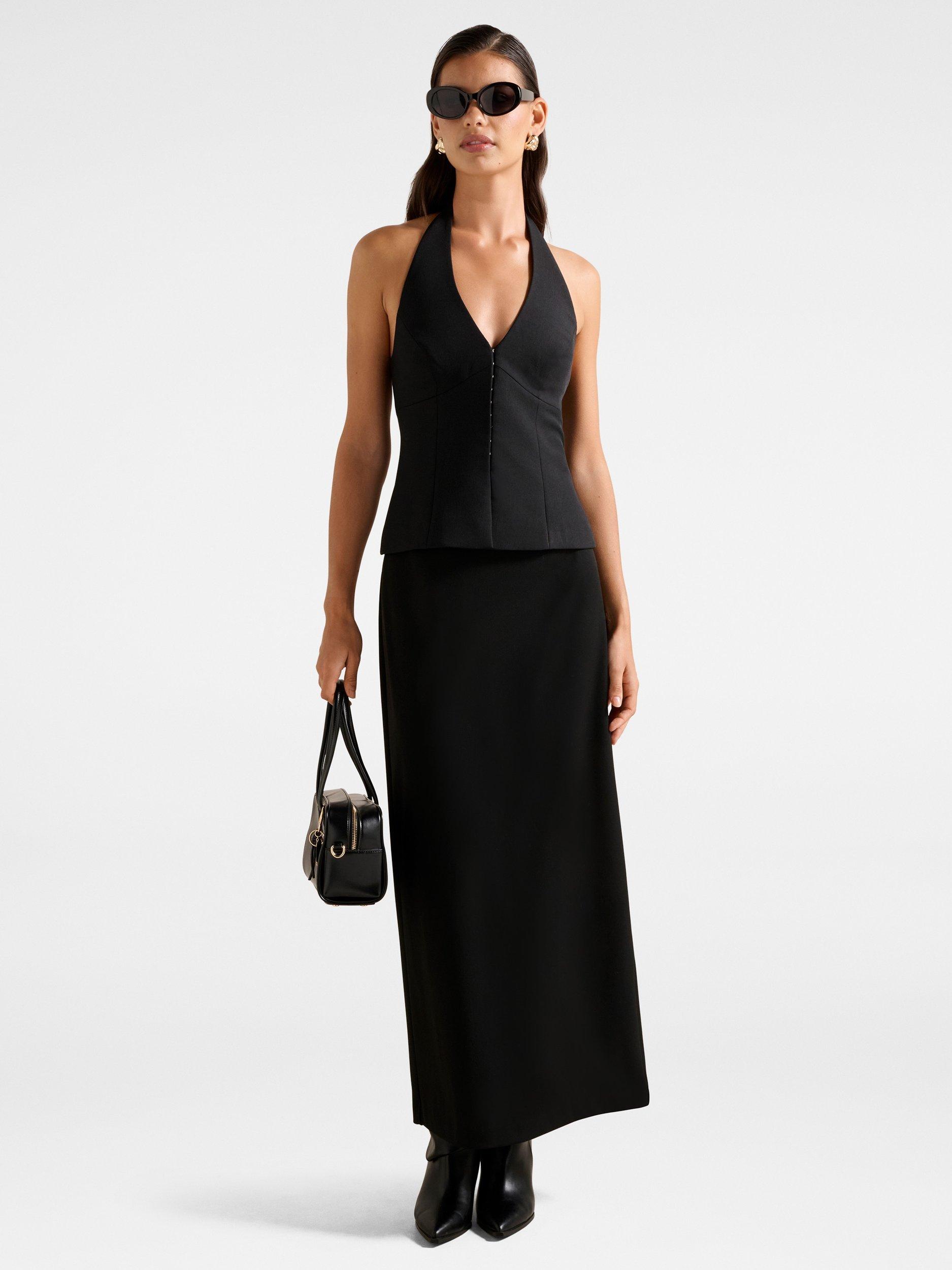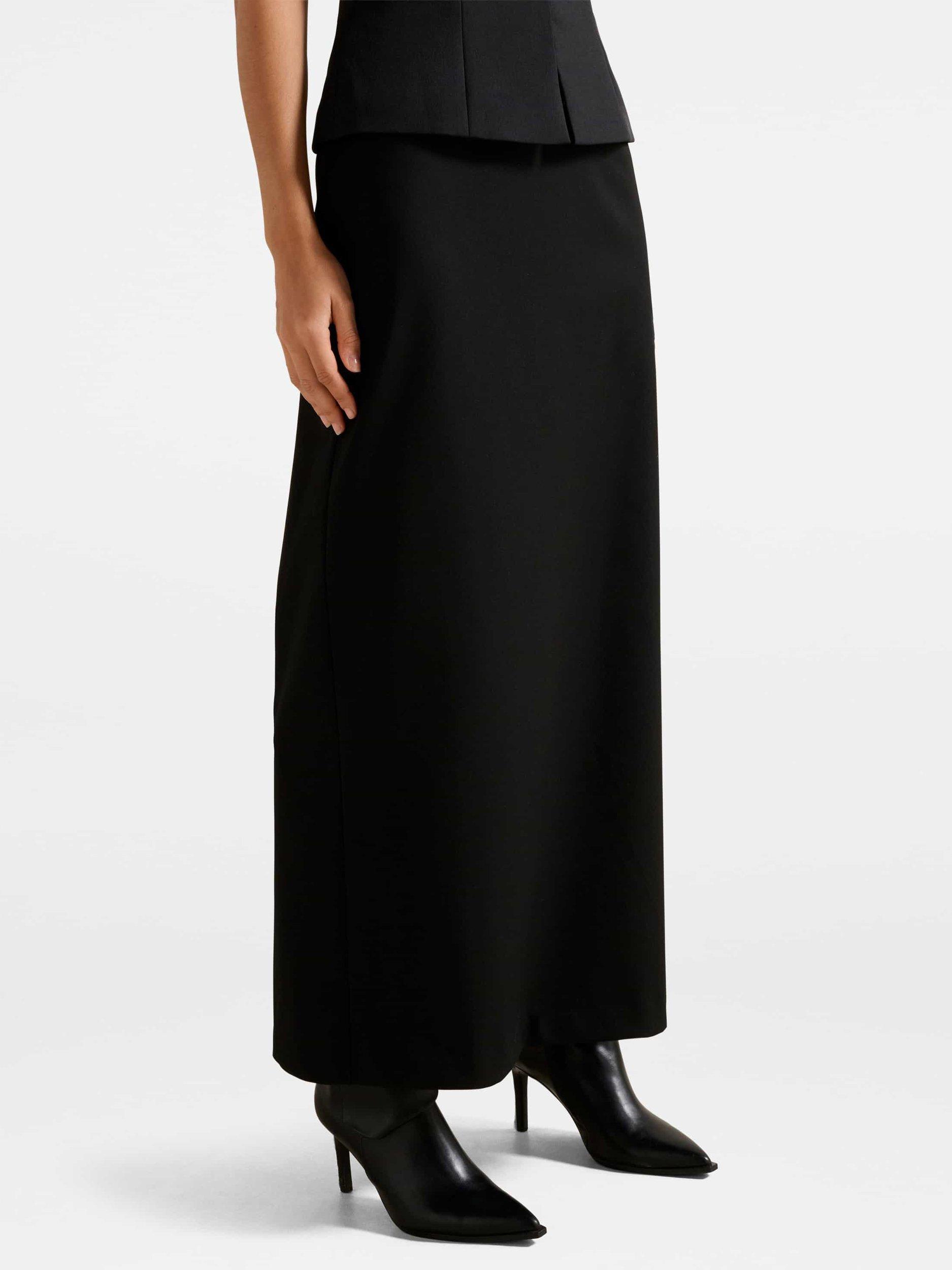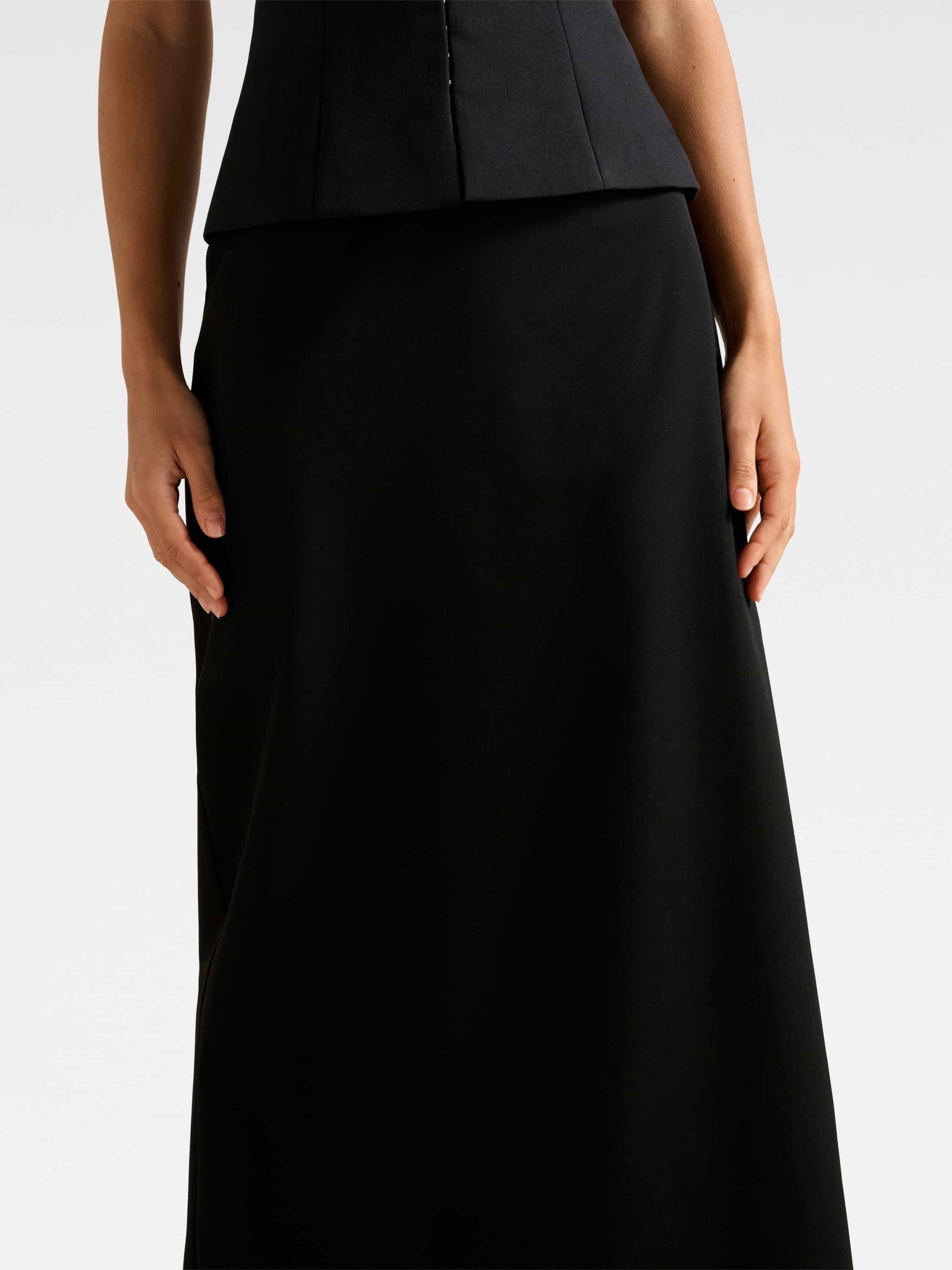 A considered maxi cut skirt, offered by Forever New. Coming in a comfortable column silhouette, it secures by a zip closure.