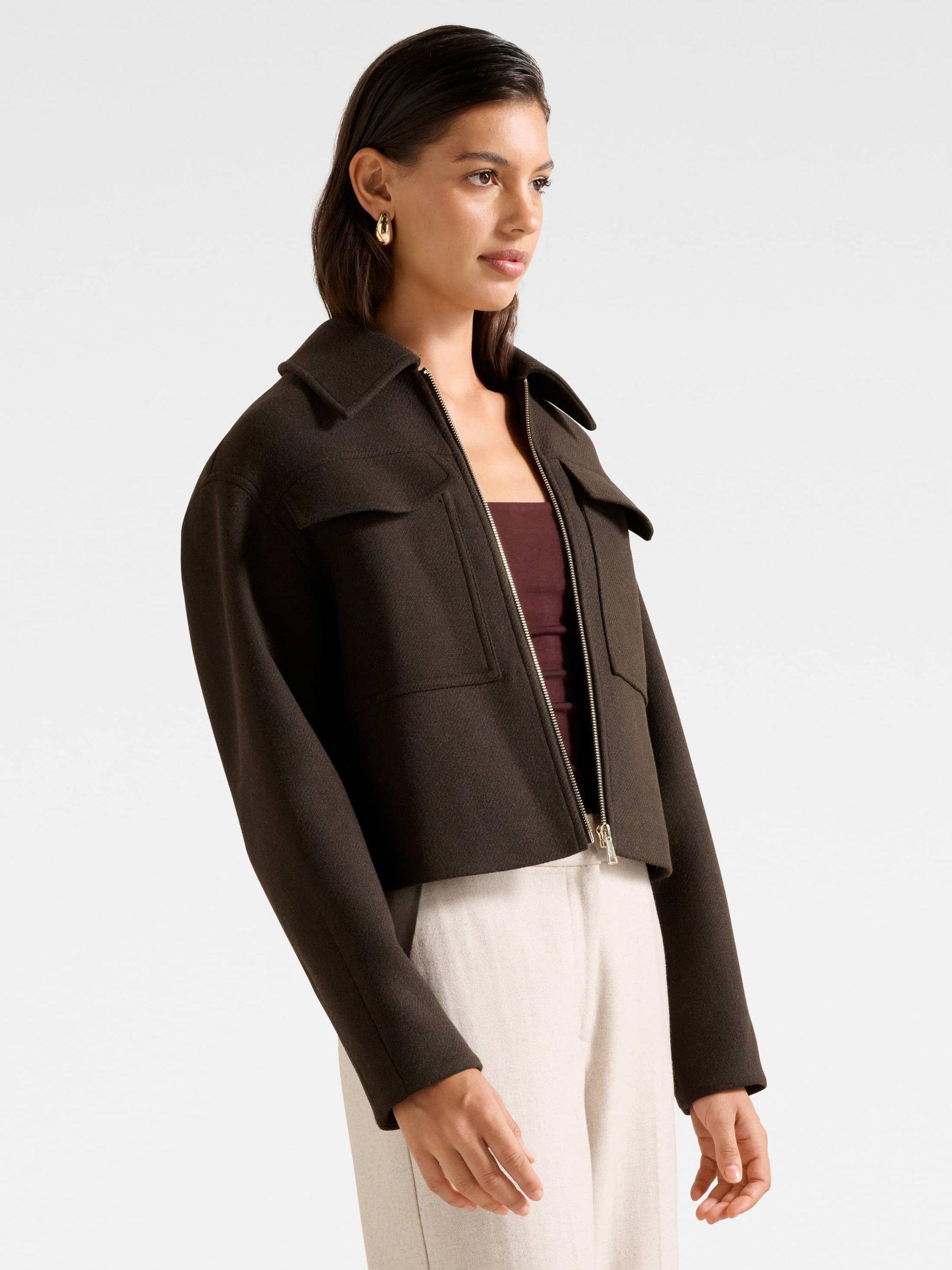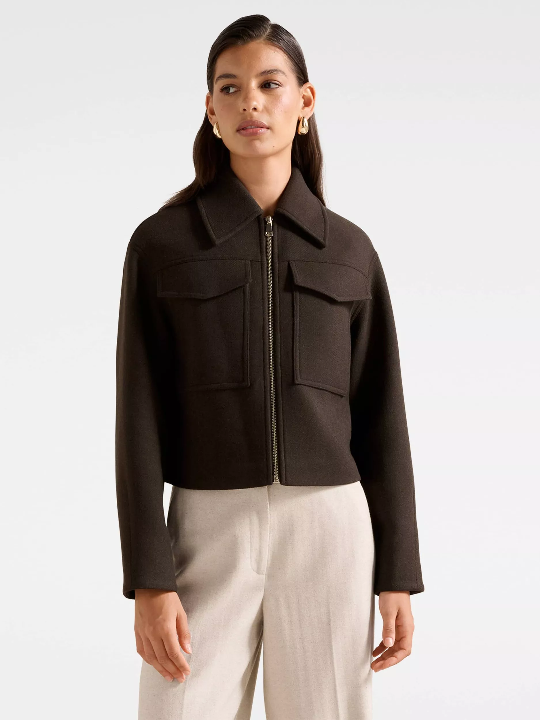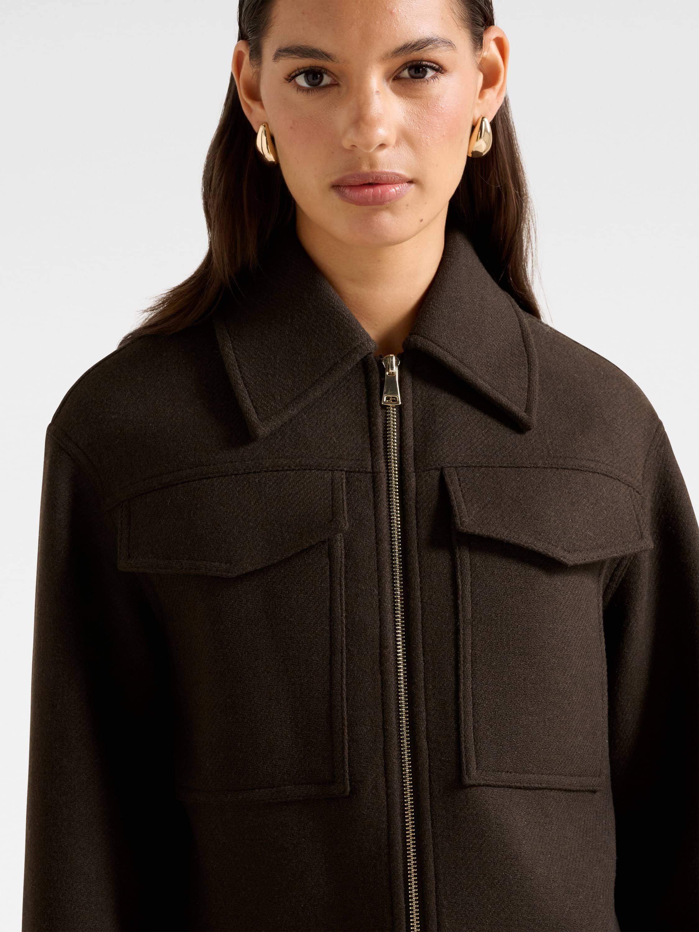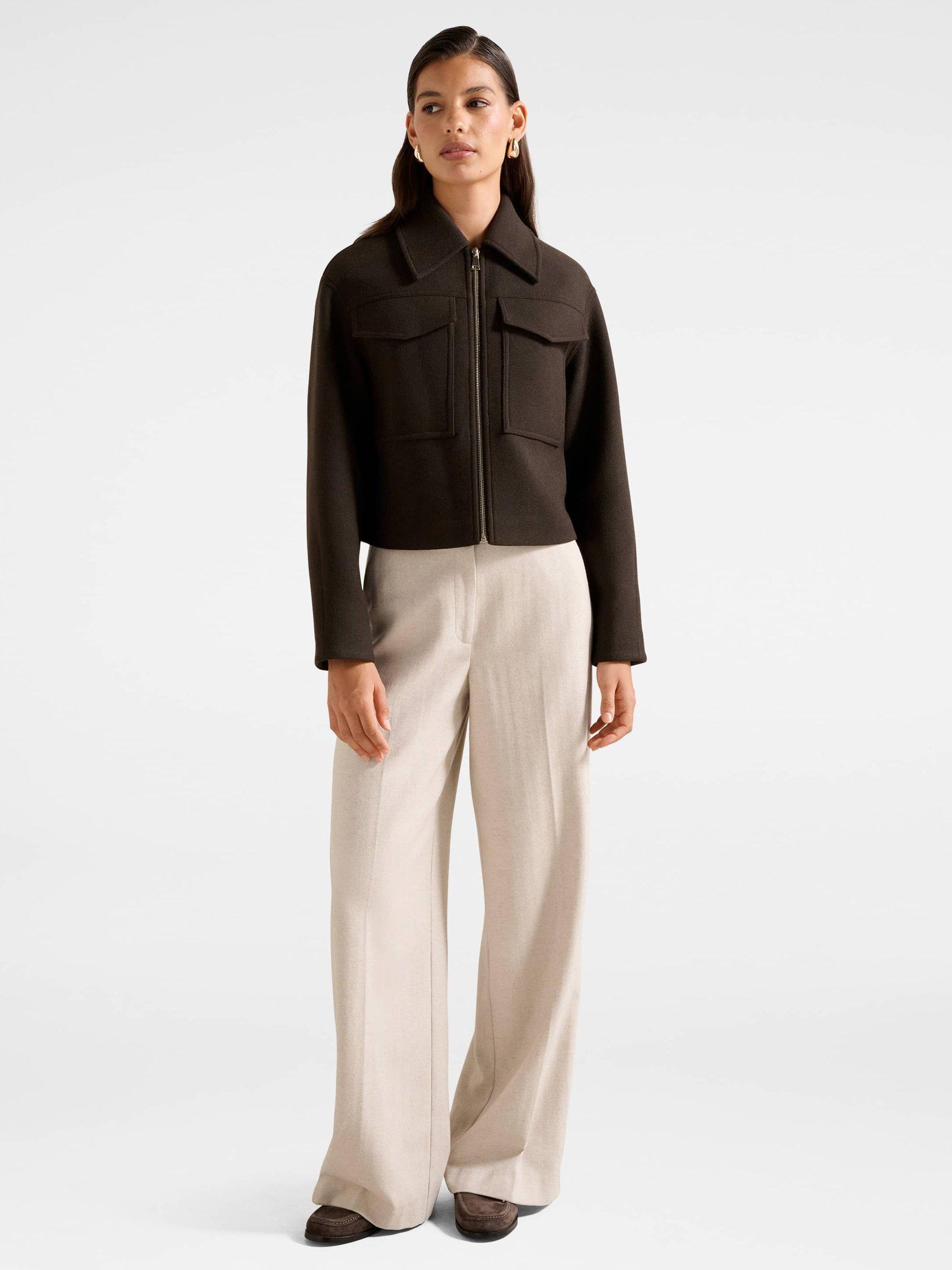 This wool blend boxy jacket keeps you comfortable and organised, with a regular cut that suits everyday plans. Set off confidently with its neat collar and long sleeves, designed for ease wherever your day takes you.