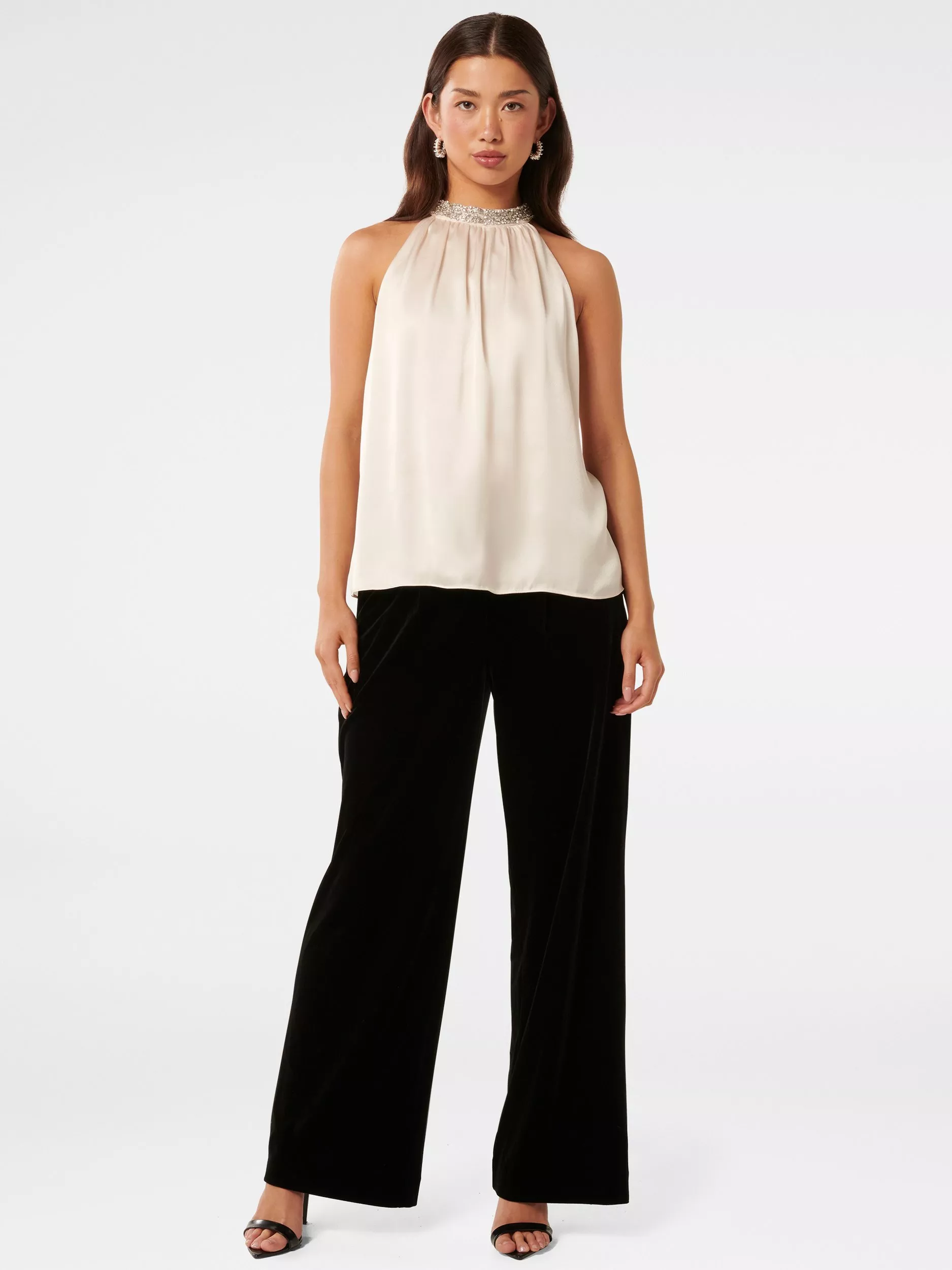 Forever NewEmily Embellished Halterneck Top, Ivory