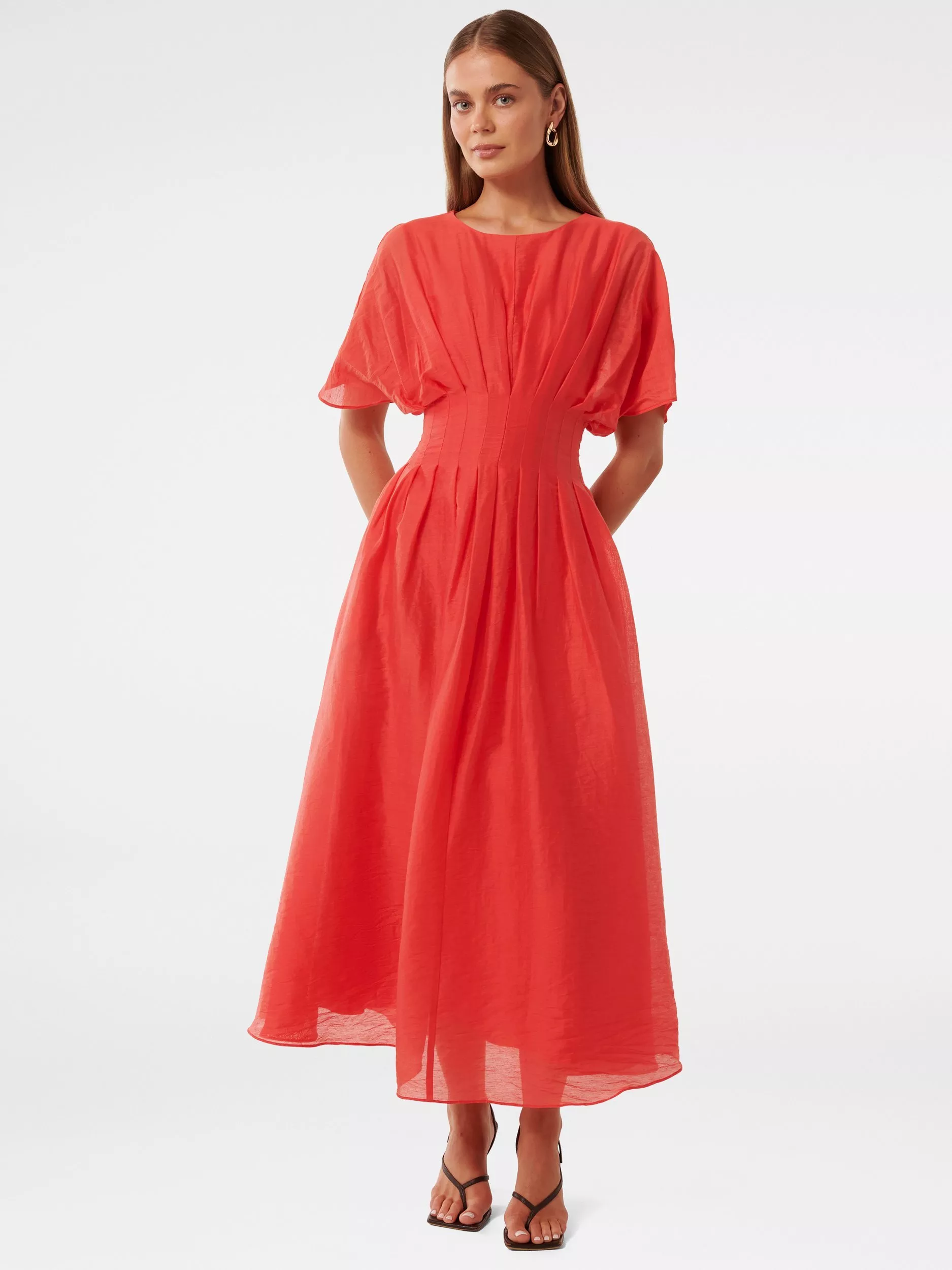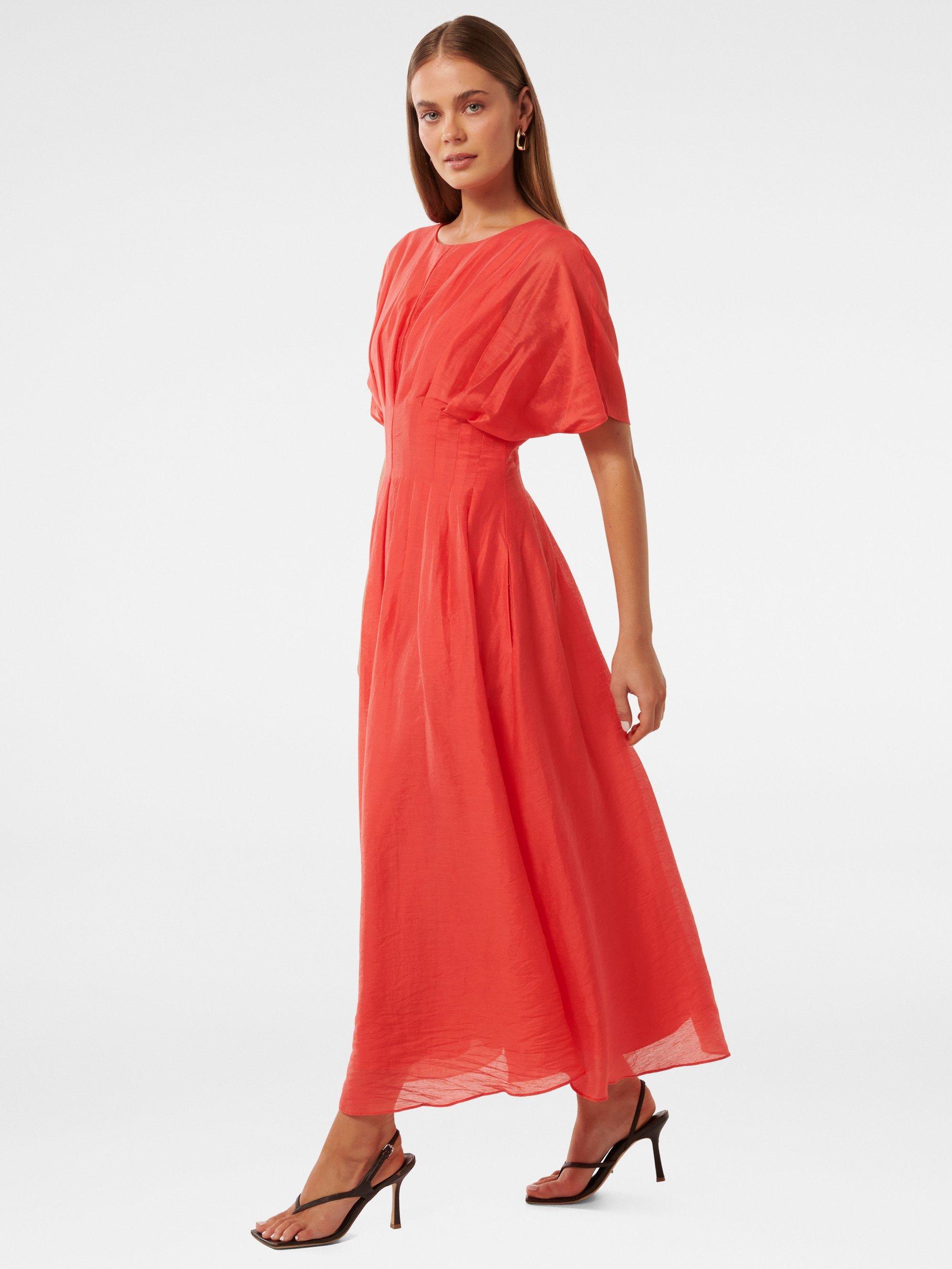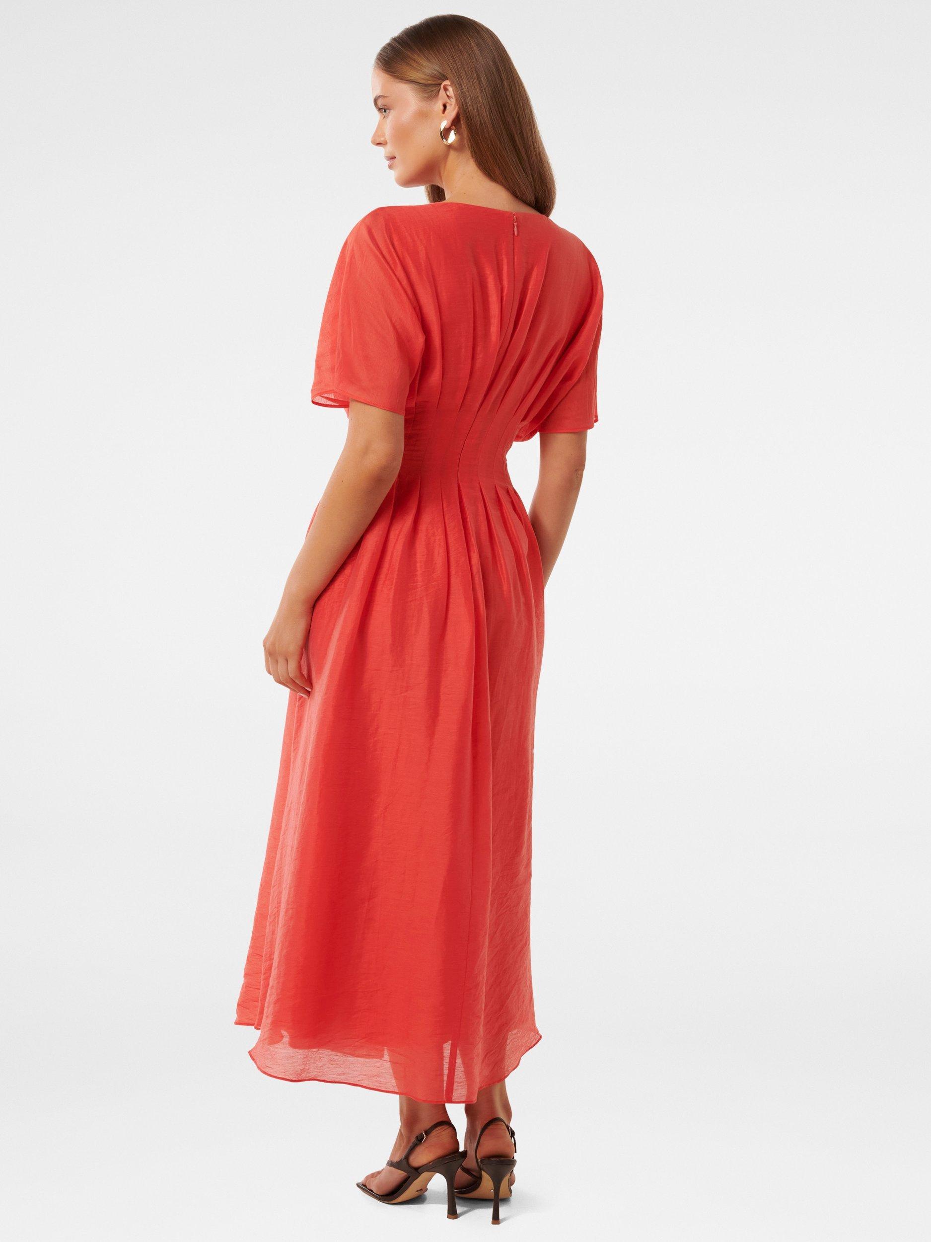 Constructed with a nipped in waist and flared hem, this mid-length dress from Forever New is dreamt up from light and breezy lyocell. Carved with a round neck and short sleeves, this style is a stunning style that can be accessorised in any which way.