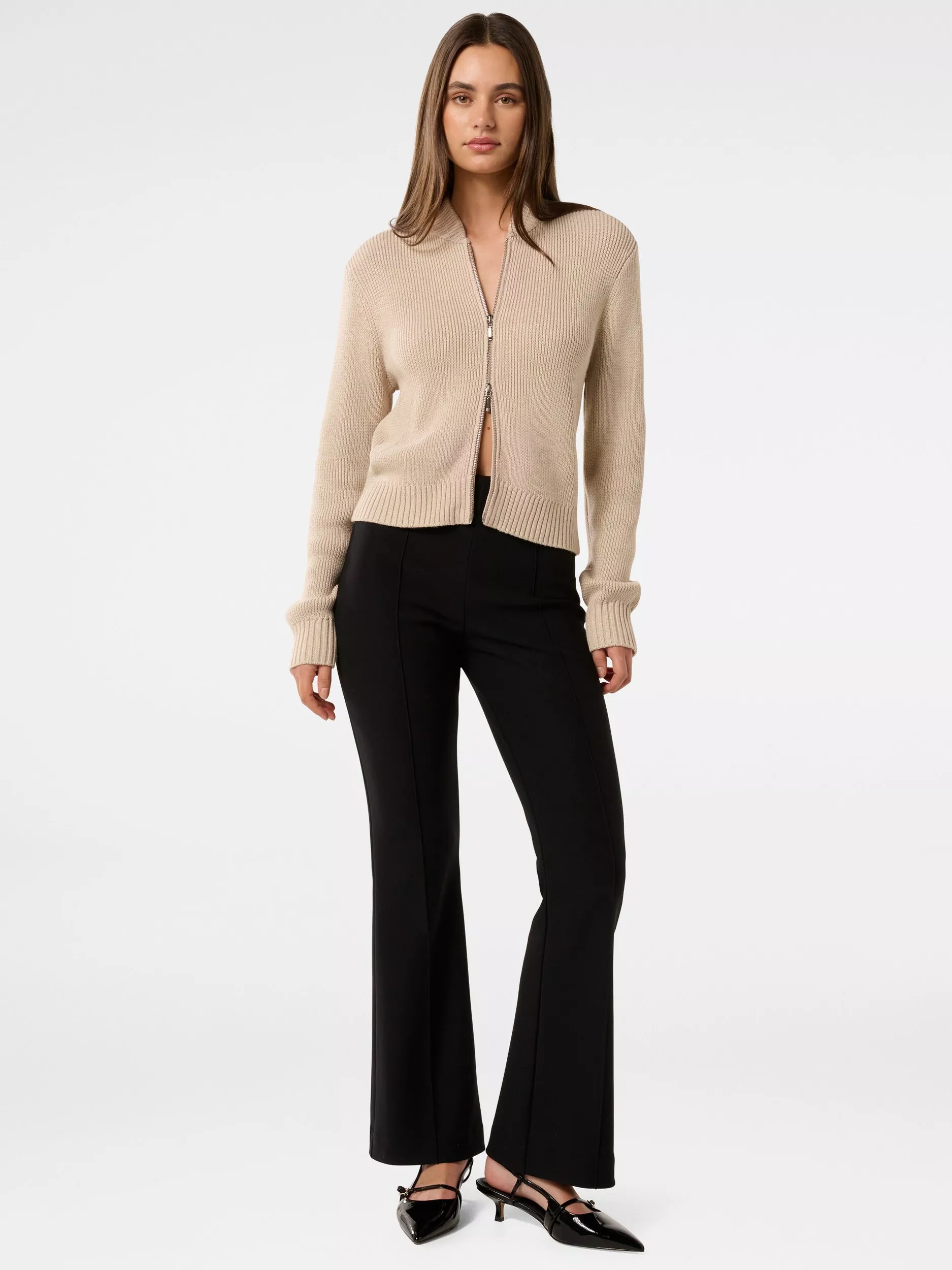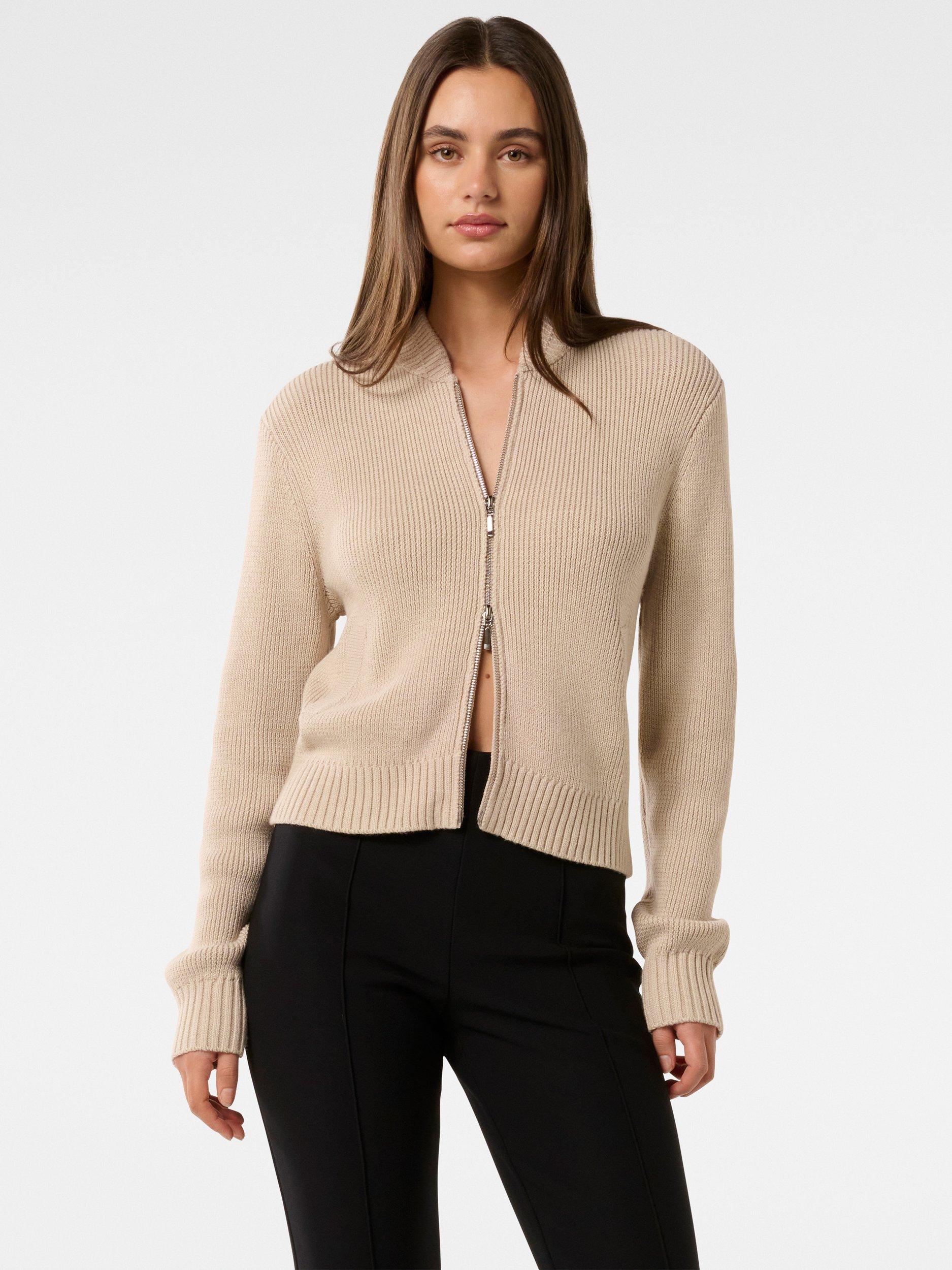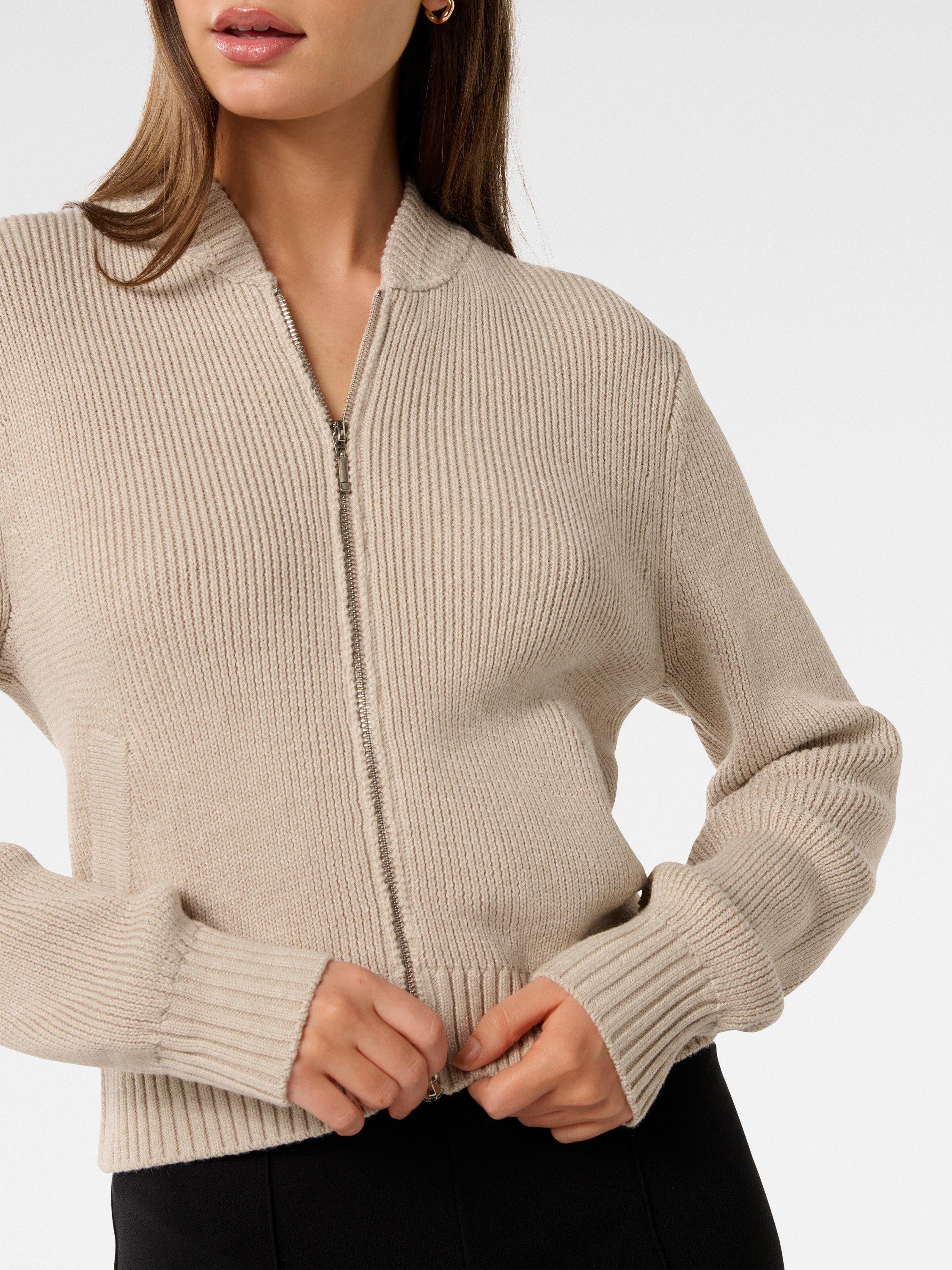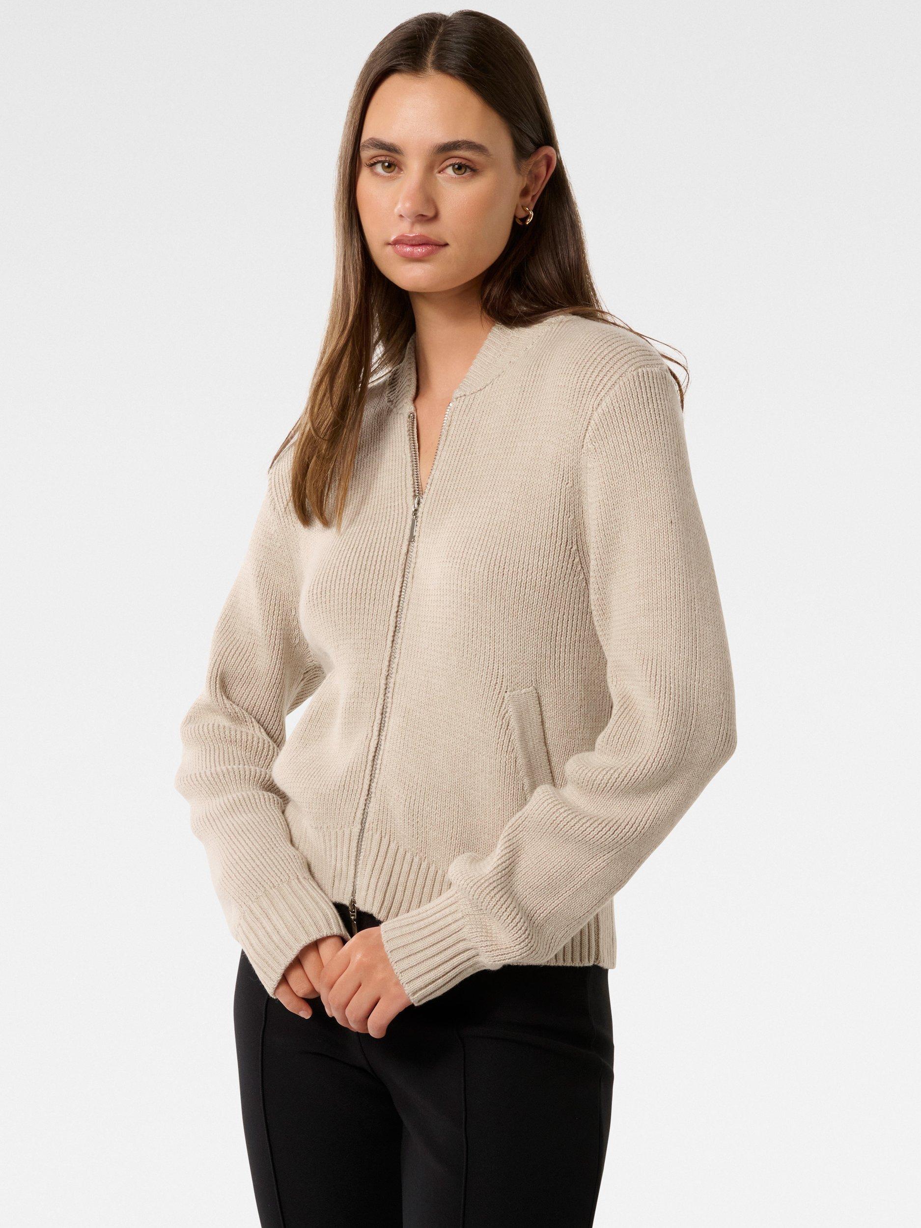 In a style that always comes up trumps, this knitted bomber jacket from Forever New is made from a super soft blend with a dash of wool.
