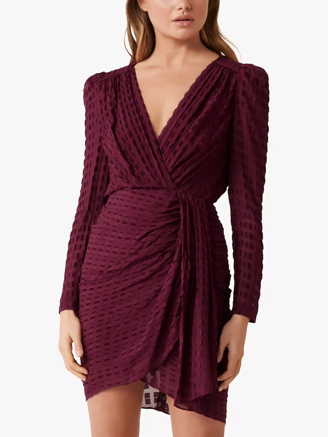 Cut from luxurious silk-blend fabric with velvety dobby detailing, this draped dress from Forever New is your answer to event dressing. It features sheer, full-length sleeves, a cut-out back design and delicate gathered detailing for an elevated finish.