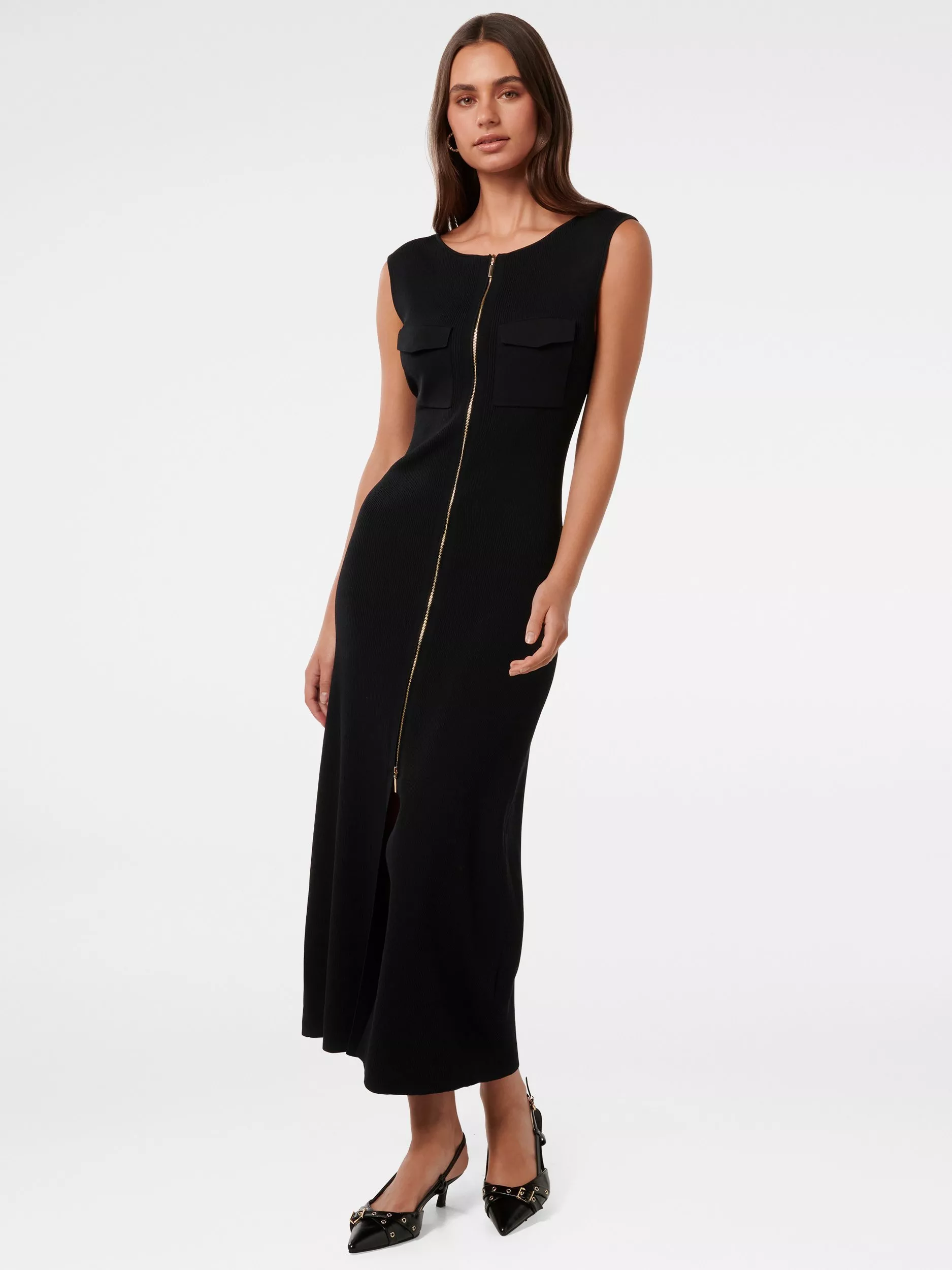 Designed to flatter in a fit and flare shaping, this midi dress from Forever New is dreamt up from a whisper-weight viscose blend. Topped with a zip neck, this style features zip detailing.