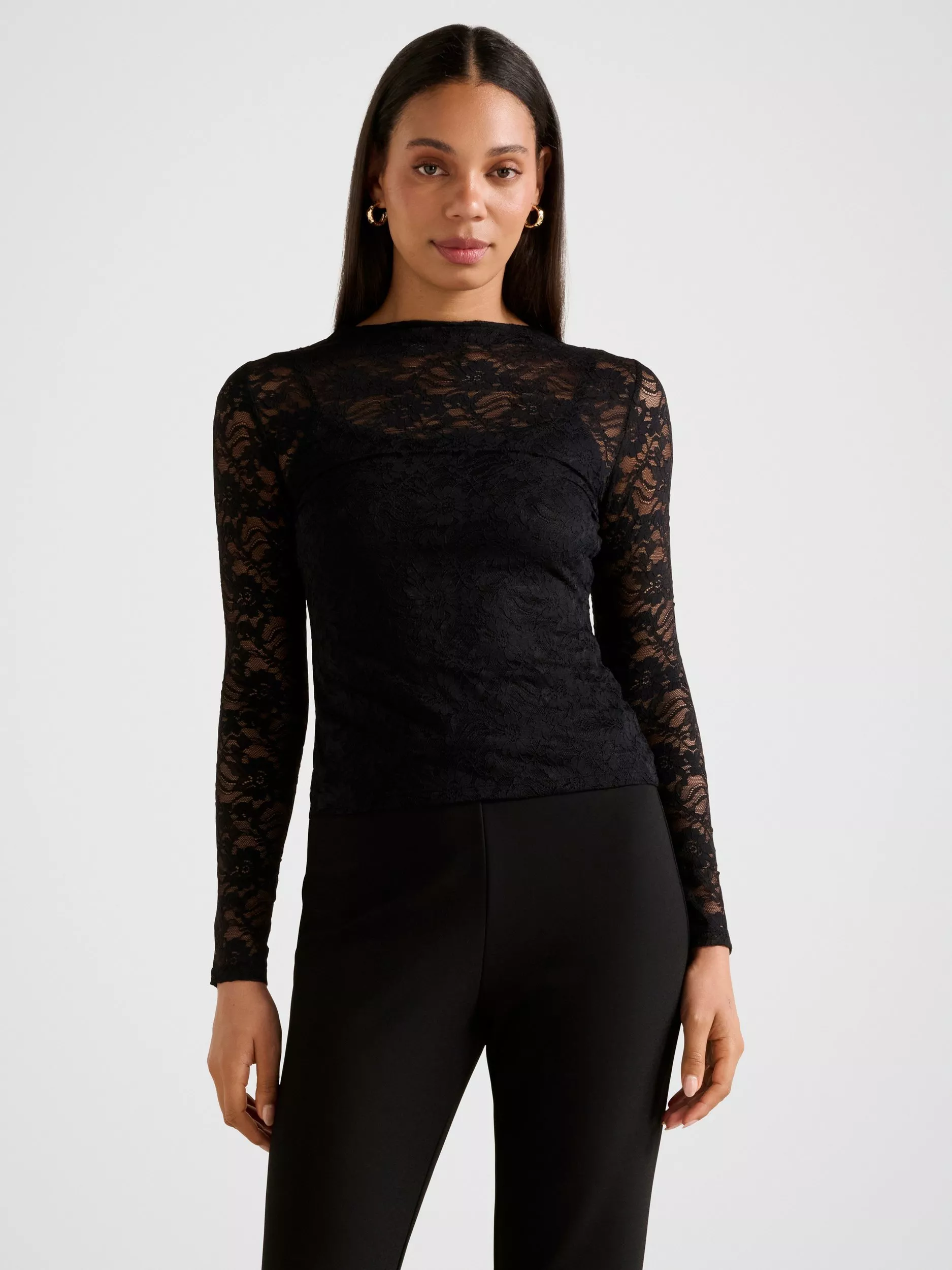 A blouse by Forever New. Featuring a high neck and long sleeves, it is fashioned with intricate lace detailing. A great piece for everyday.
