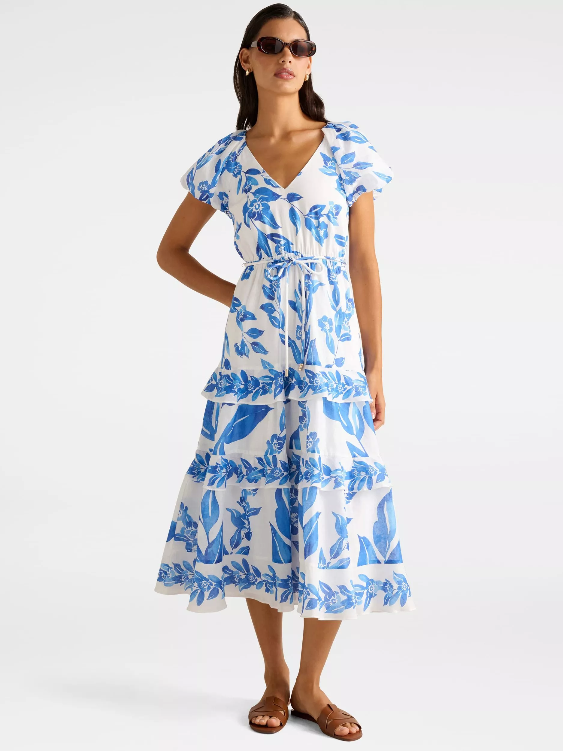 Showcasing tiers of style, this midi dress from Forever New is dreamt up from a light linen blend. With a fuss-free but smart v-neckline and short sleeves, it captures a leafy print.