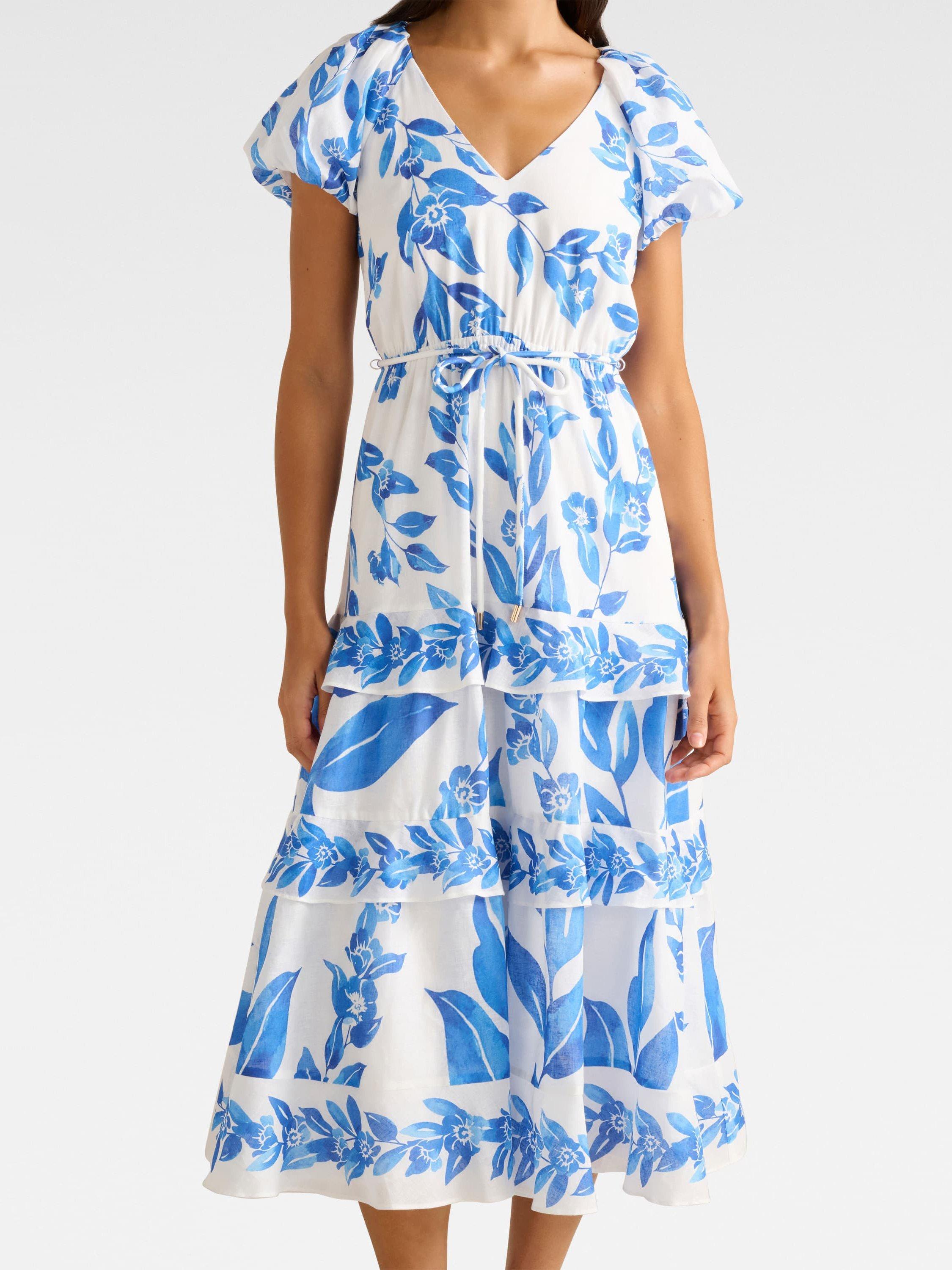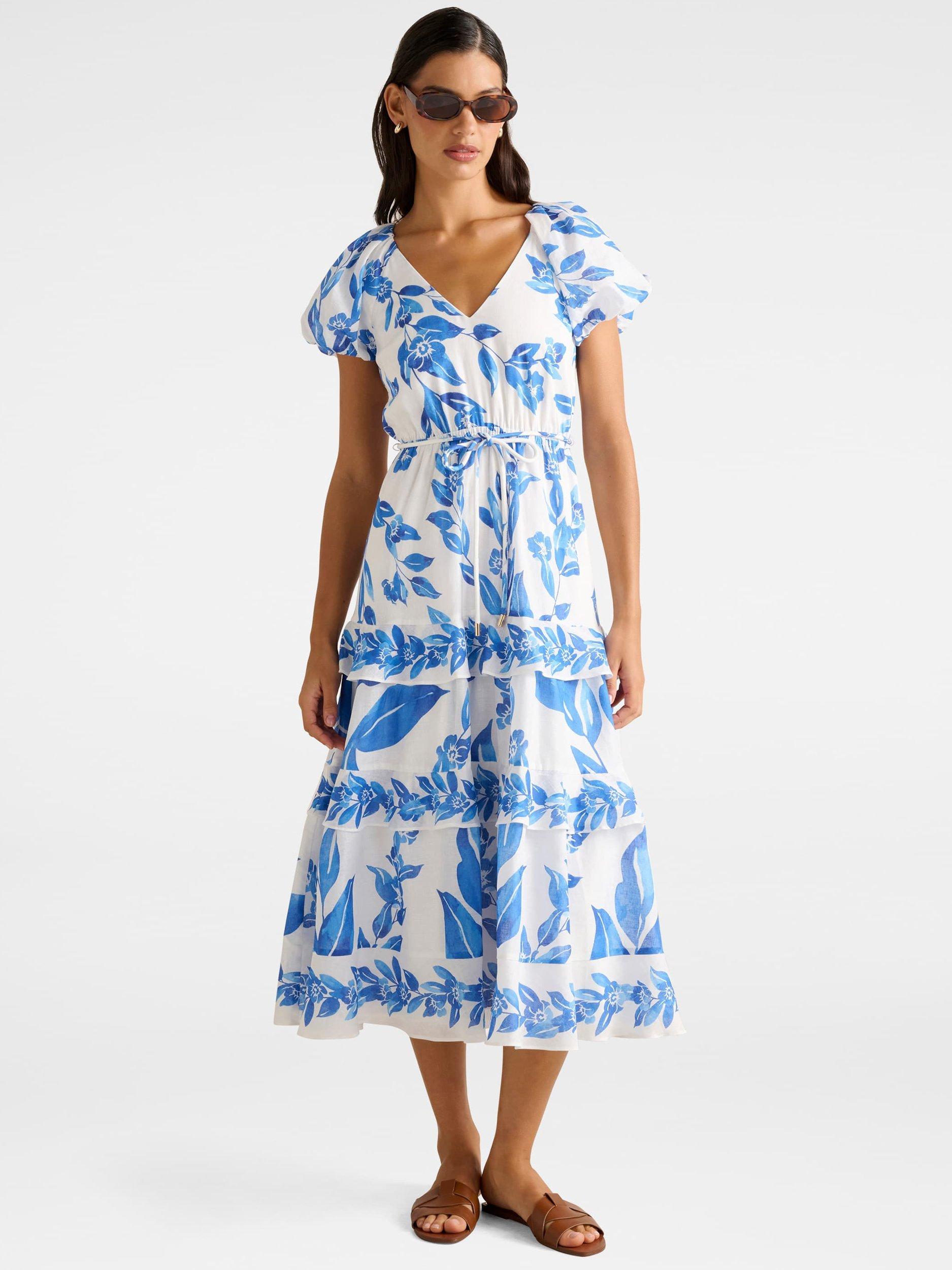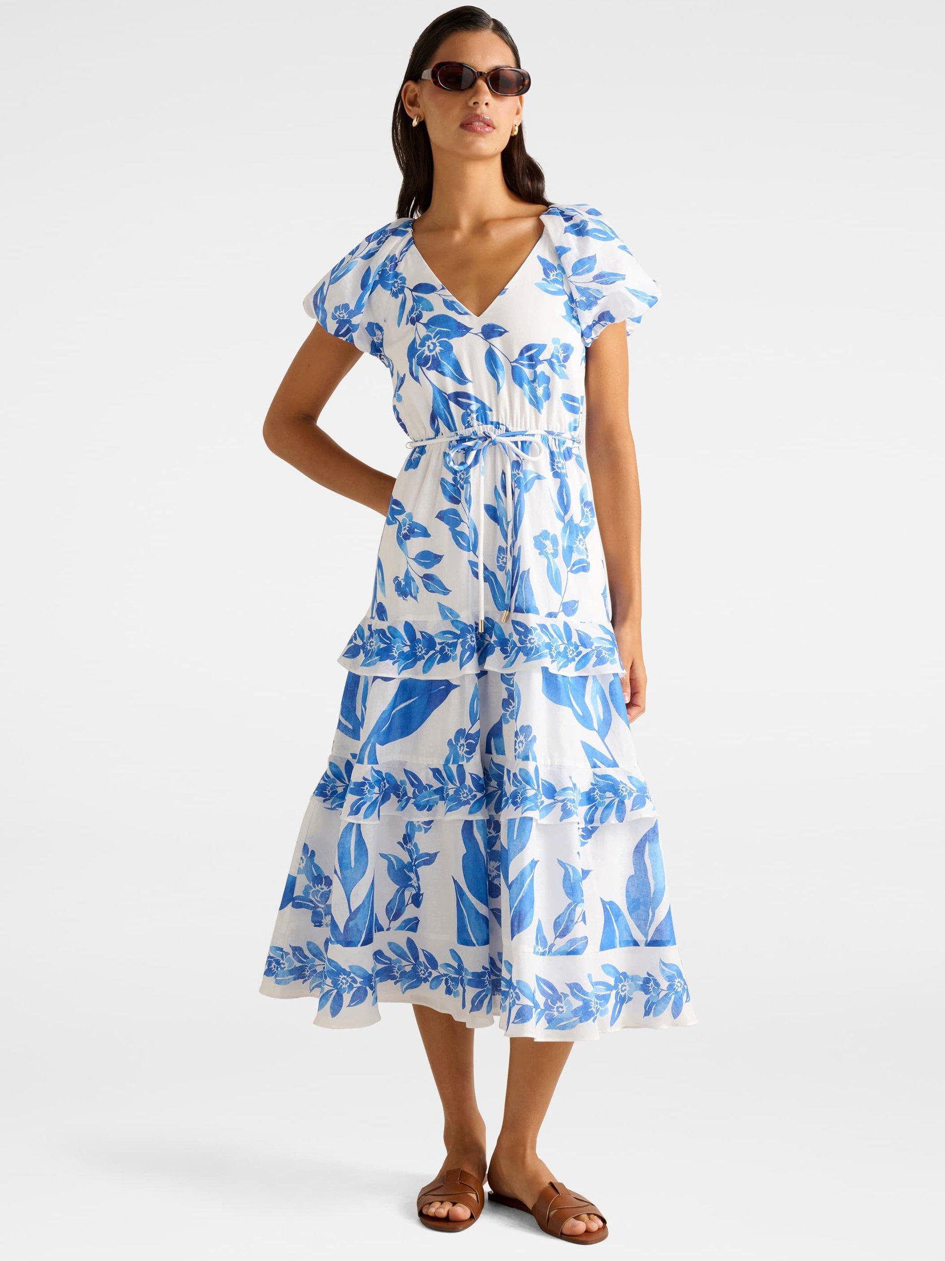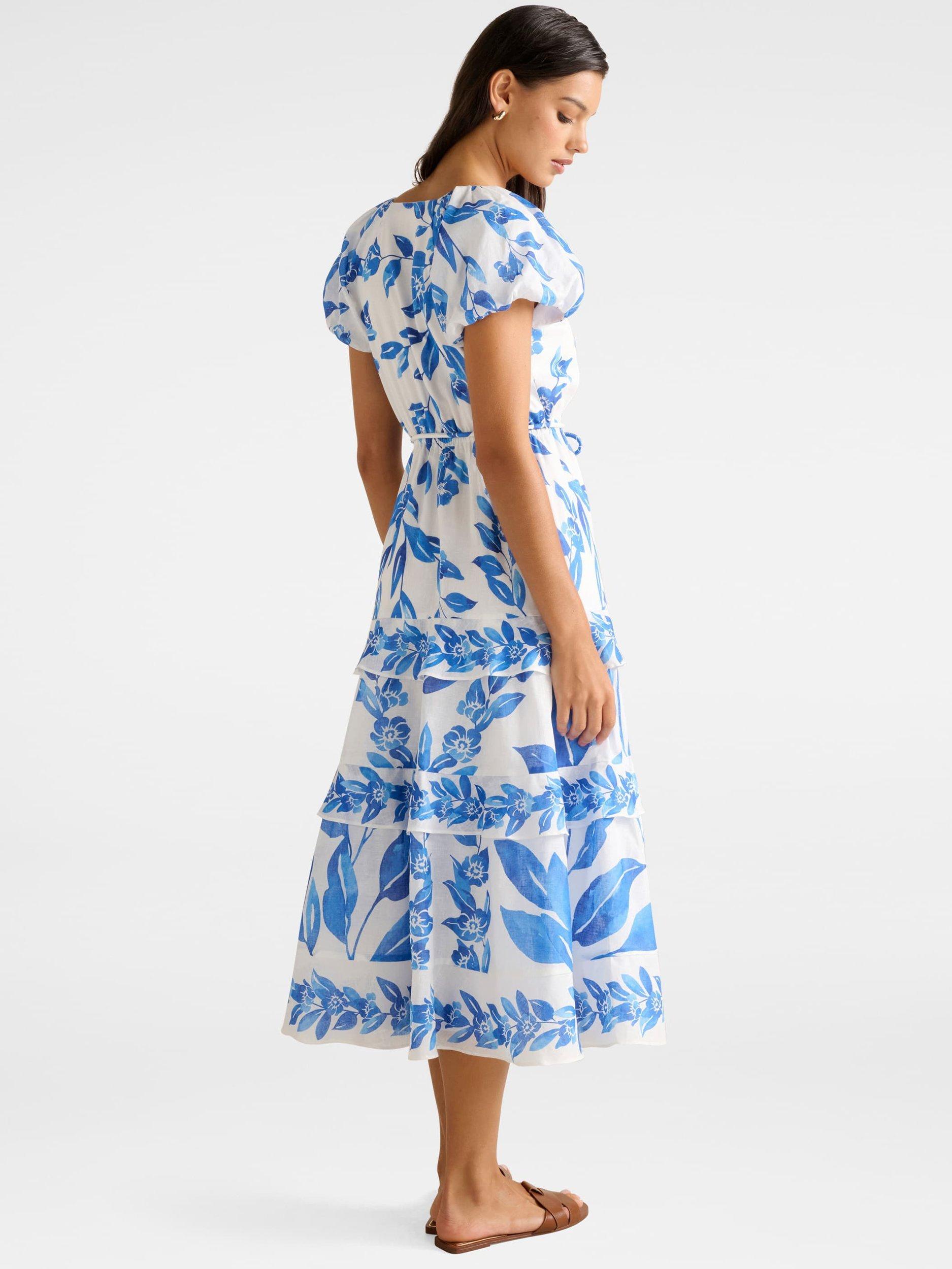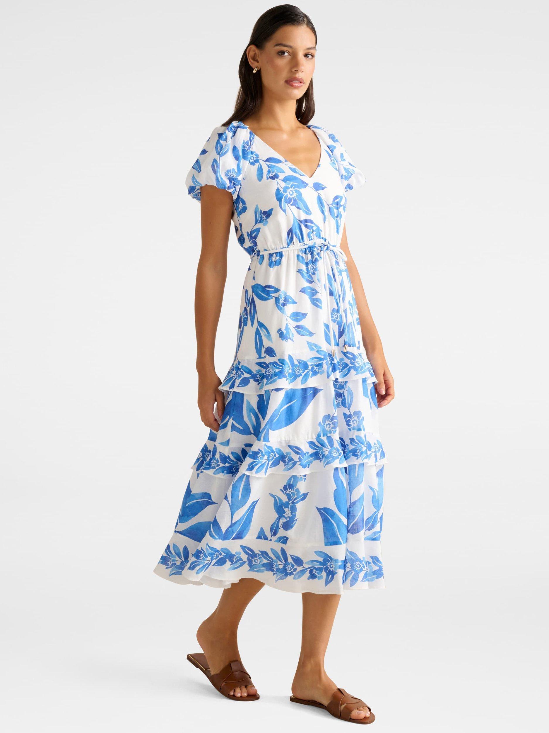 Forever NewIris Tiered Ruffle Midi Dress, Blue/Multi