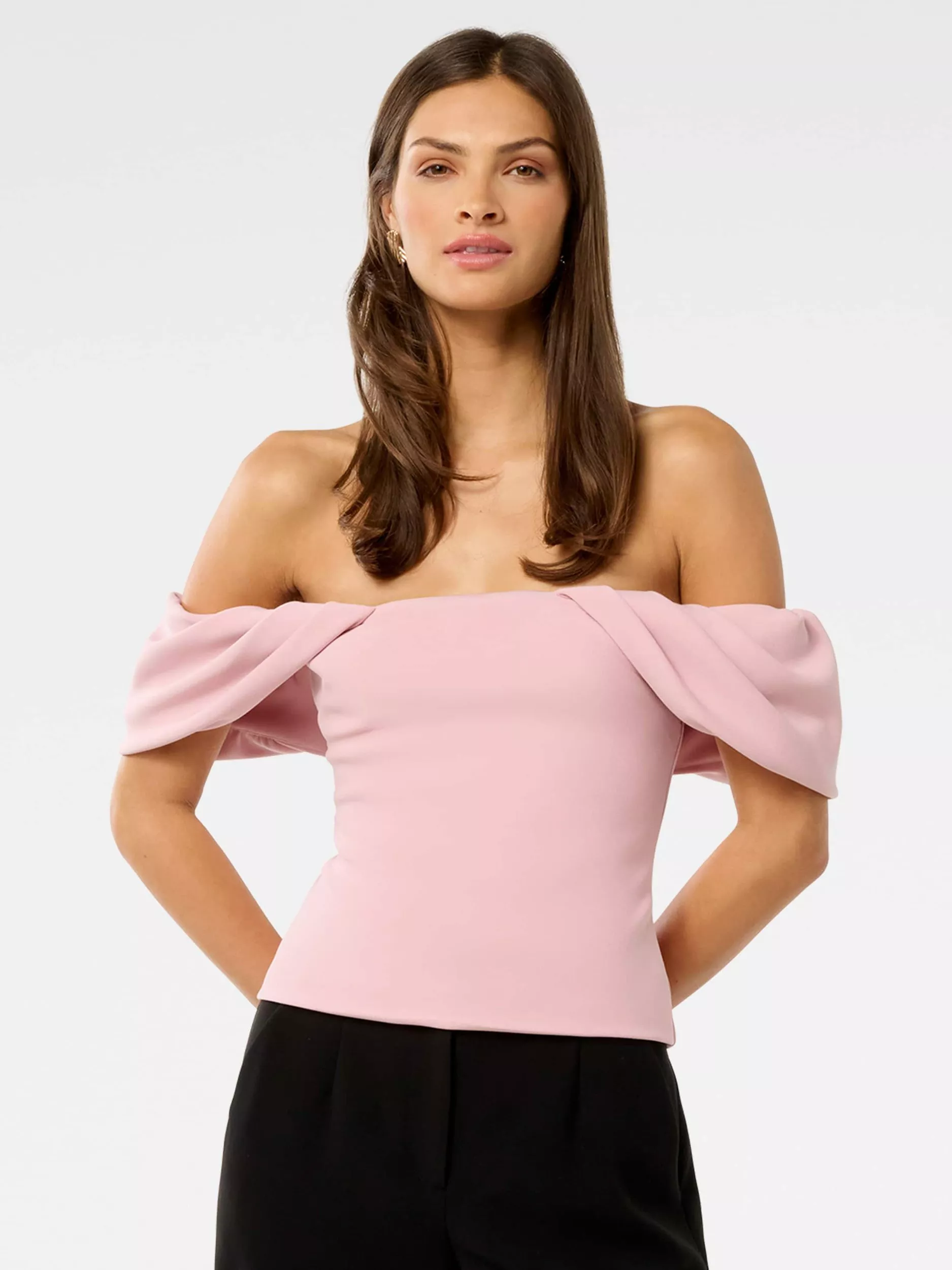 Sitting off the shoulder to create a flattering line, this bardot top from Forever New is free-from-fuss for timeless appeal. Giving a nod to vintage trends with its Bardot neckline and short sleeves, it is made with durable fabric for longevity of wear and is just what you need for the special occasion.