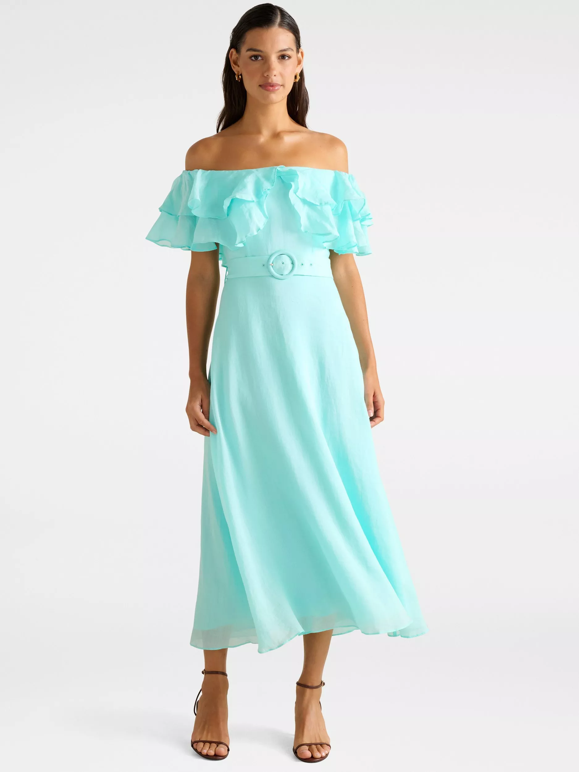 Forever NewJemima Ruffle Midi Dress, Aqua Splash
