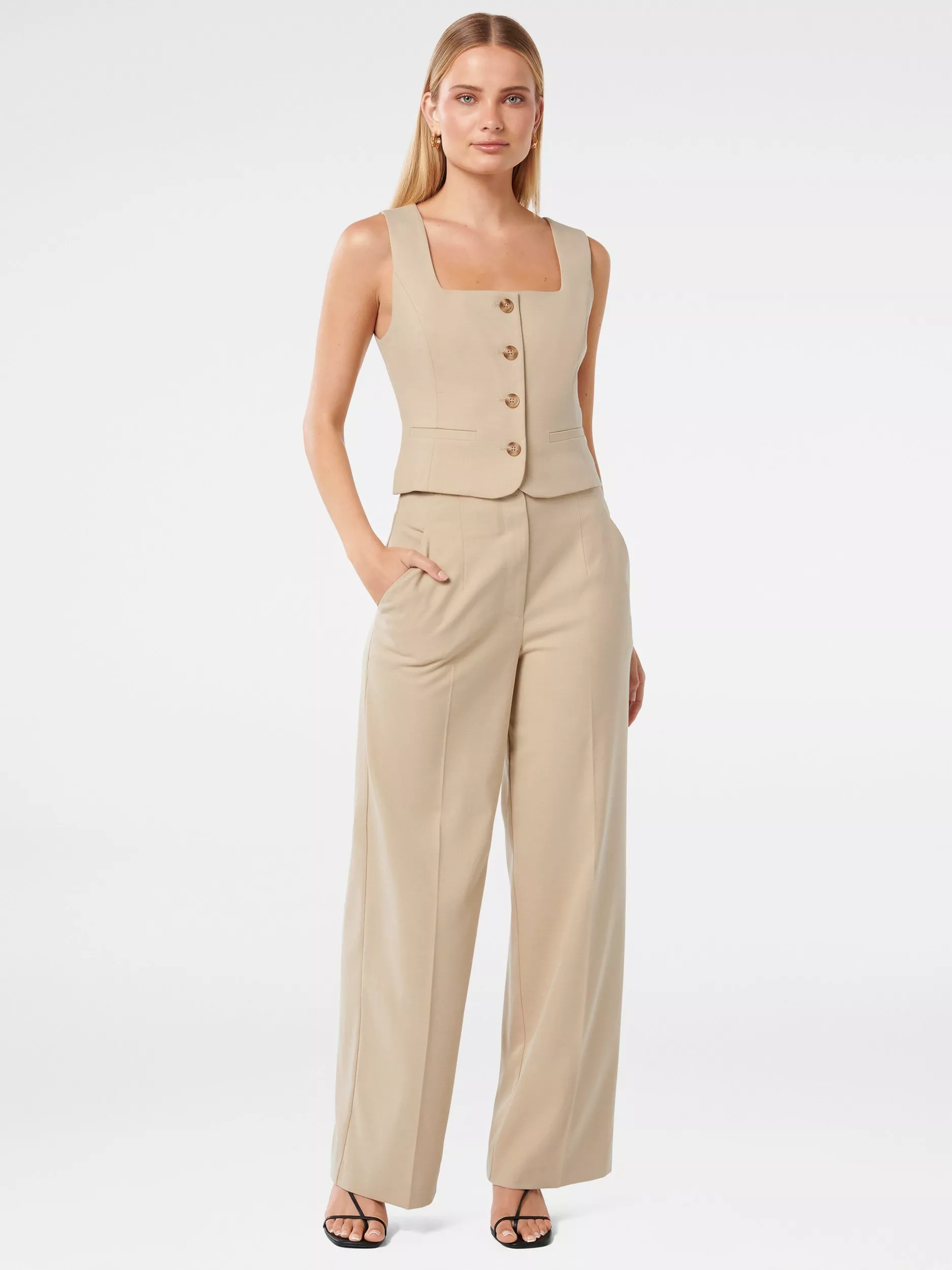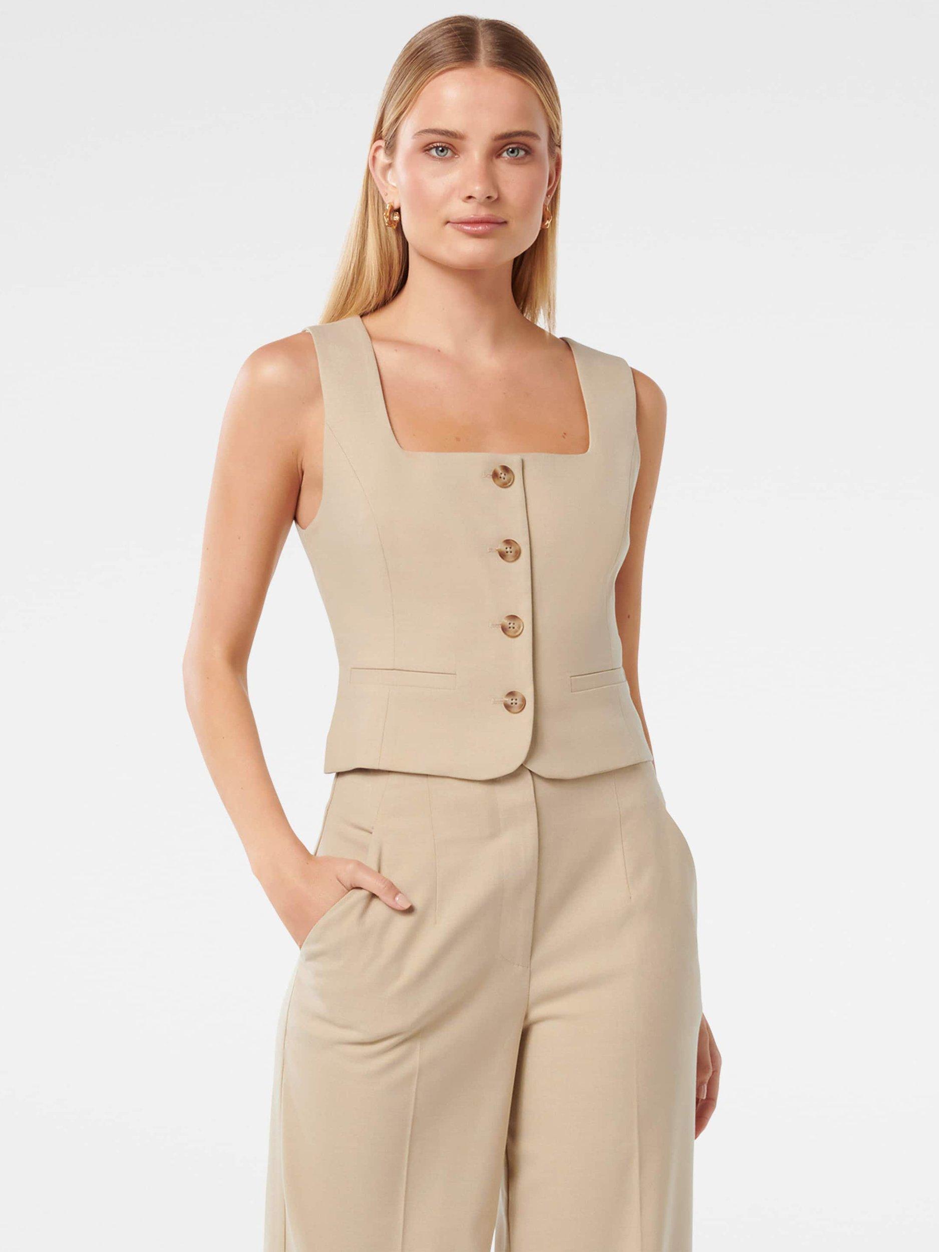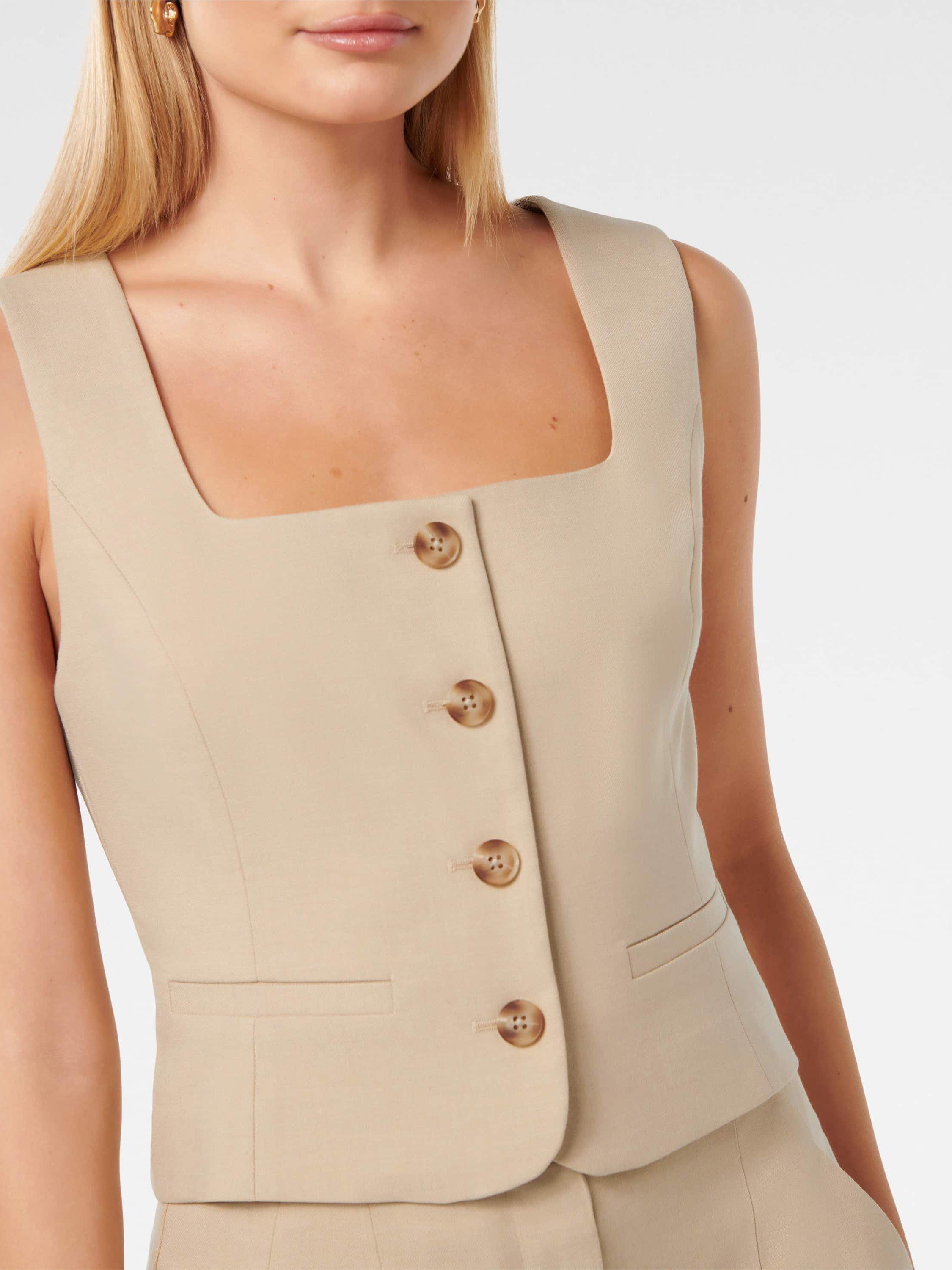 A classic tailored waistcoat with button down front and smart, square neckline.