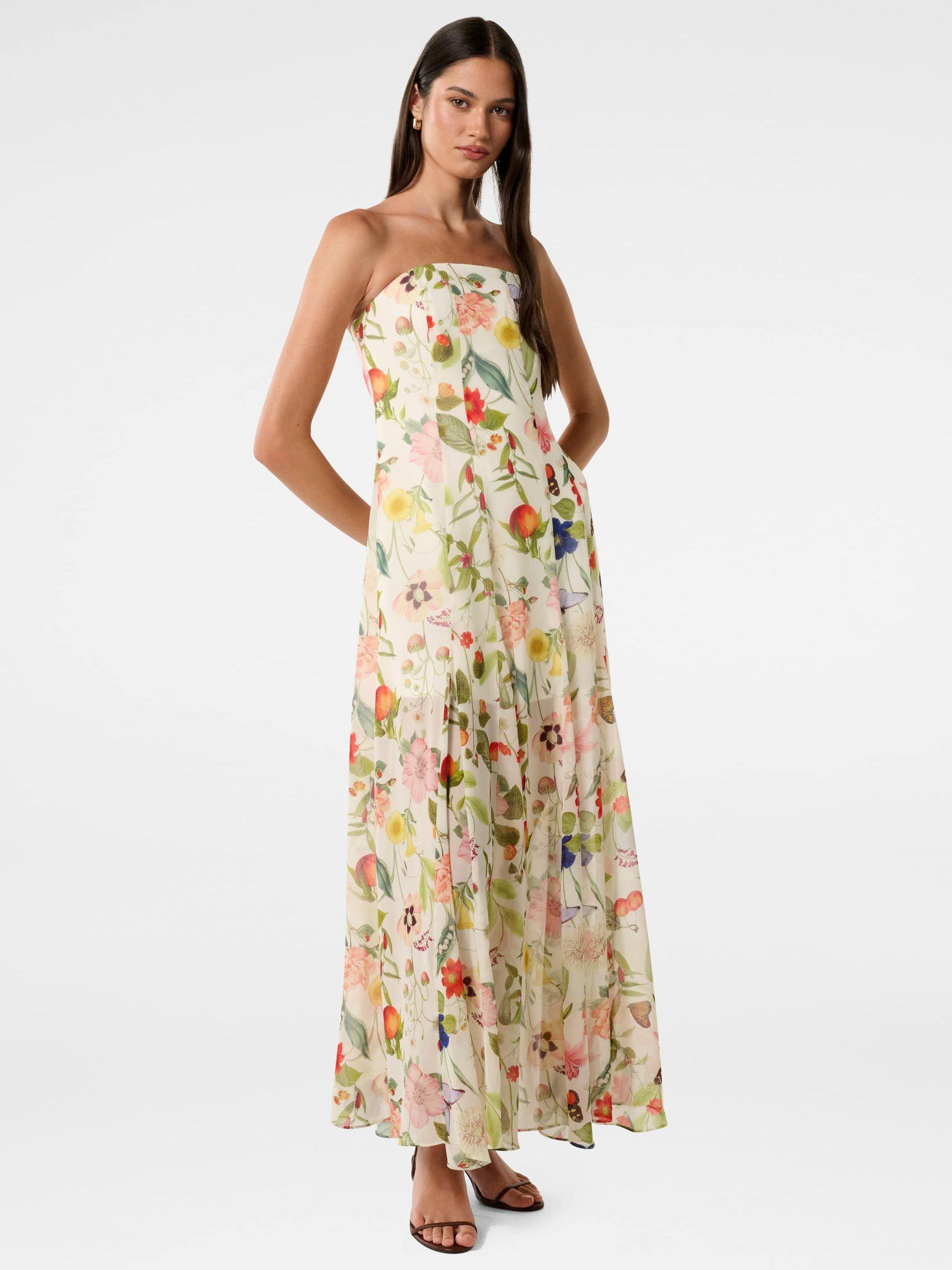 In a flattering fit with dart detailing to accentuate the waist, this midi dress from Forever New comes in a light, breezy fabric that's built to last. Topped with a bandeau neckline, this strappy style is planted with flourishing florals.