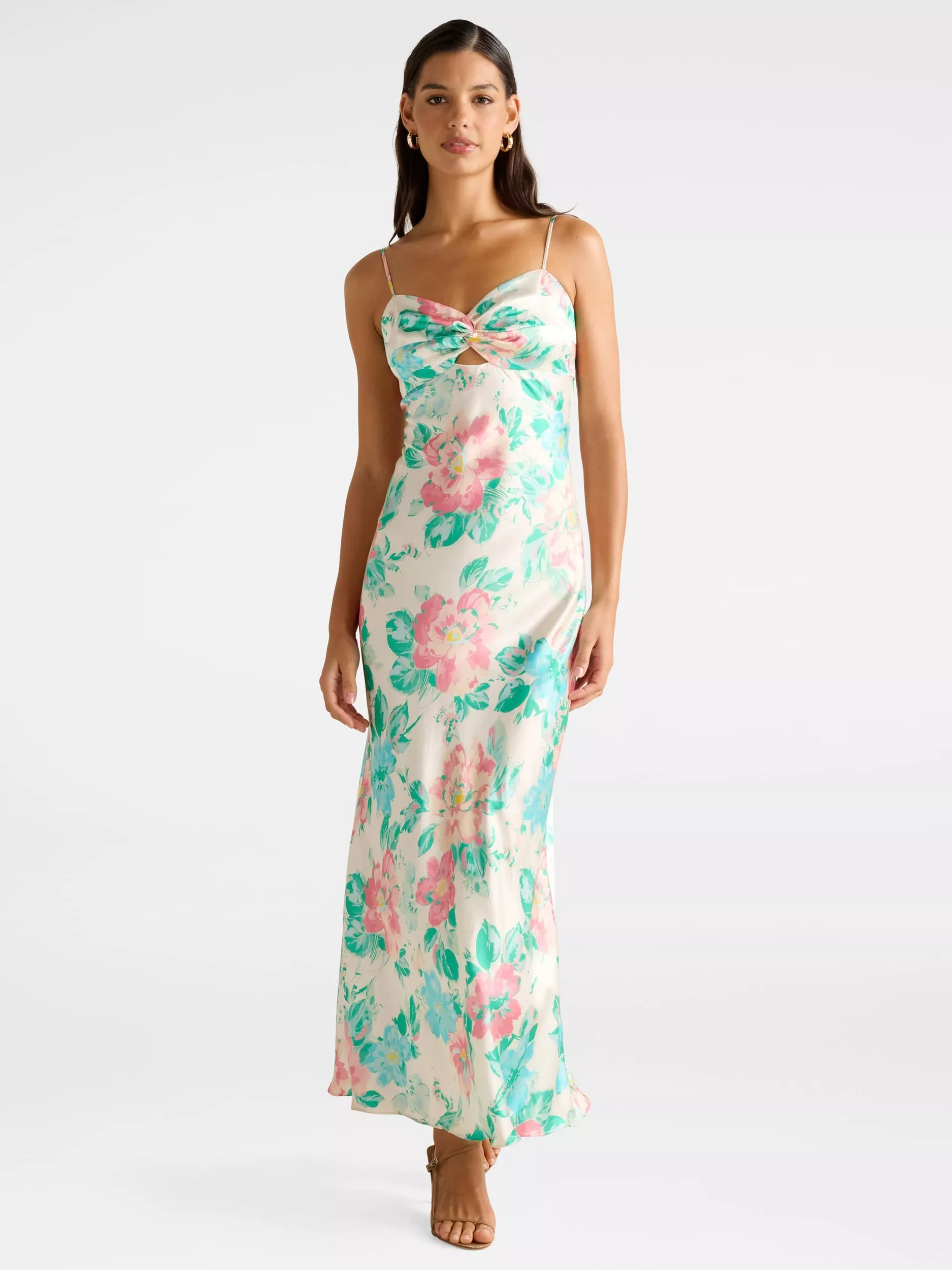 Fluidly falling over your contours, this maxi dress from Forever New is crafted from an airy viscose fabric. Fashioned with a flattering, sweetheart neckline and suspended from spaghetti straps, it recalls the florals that we can't help but let define our collections season after season.