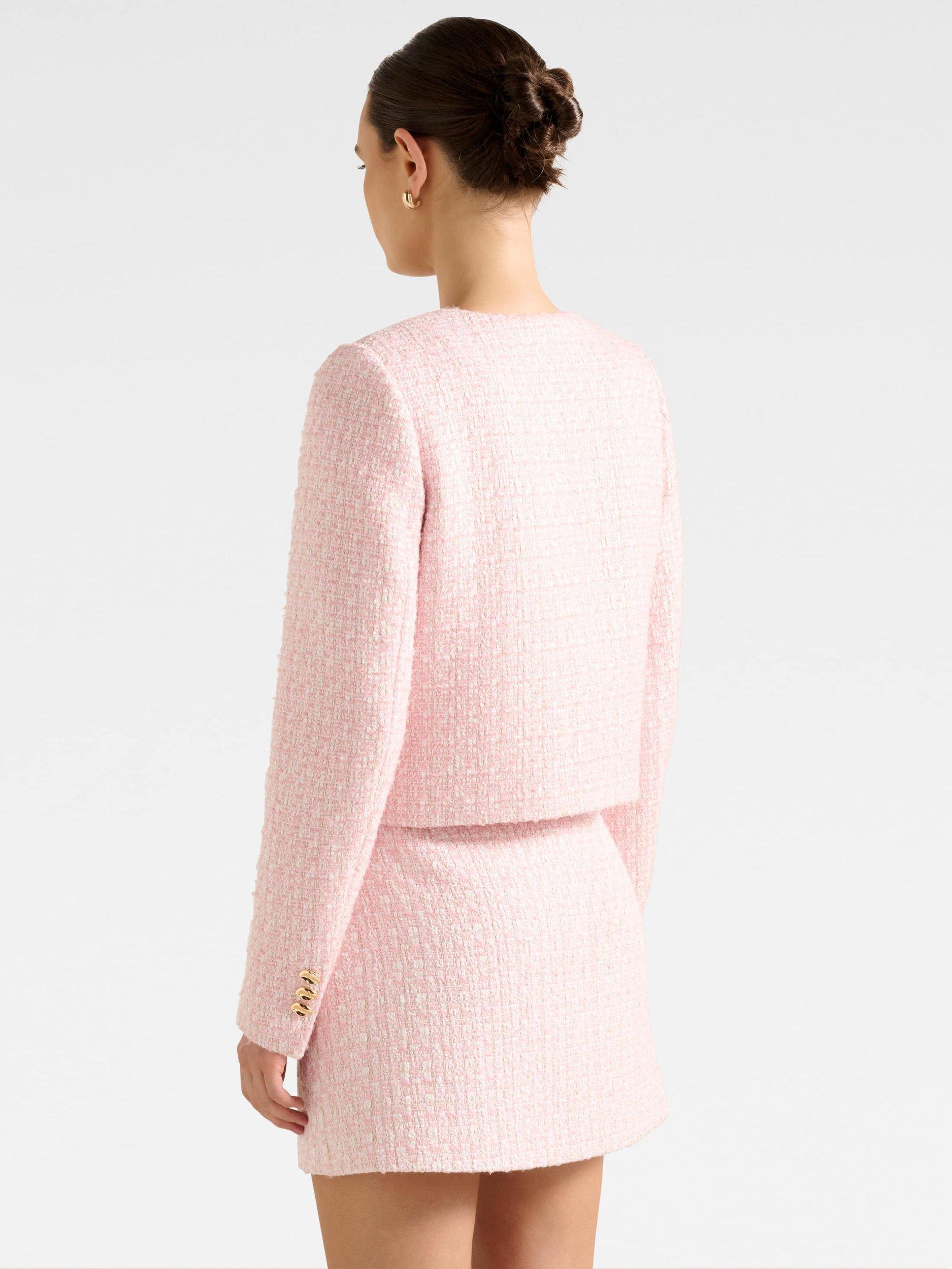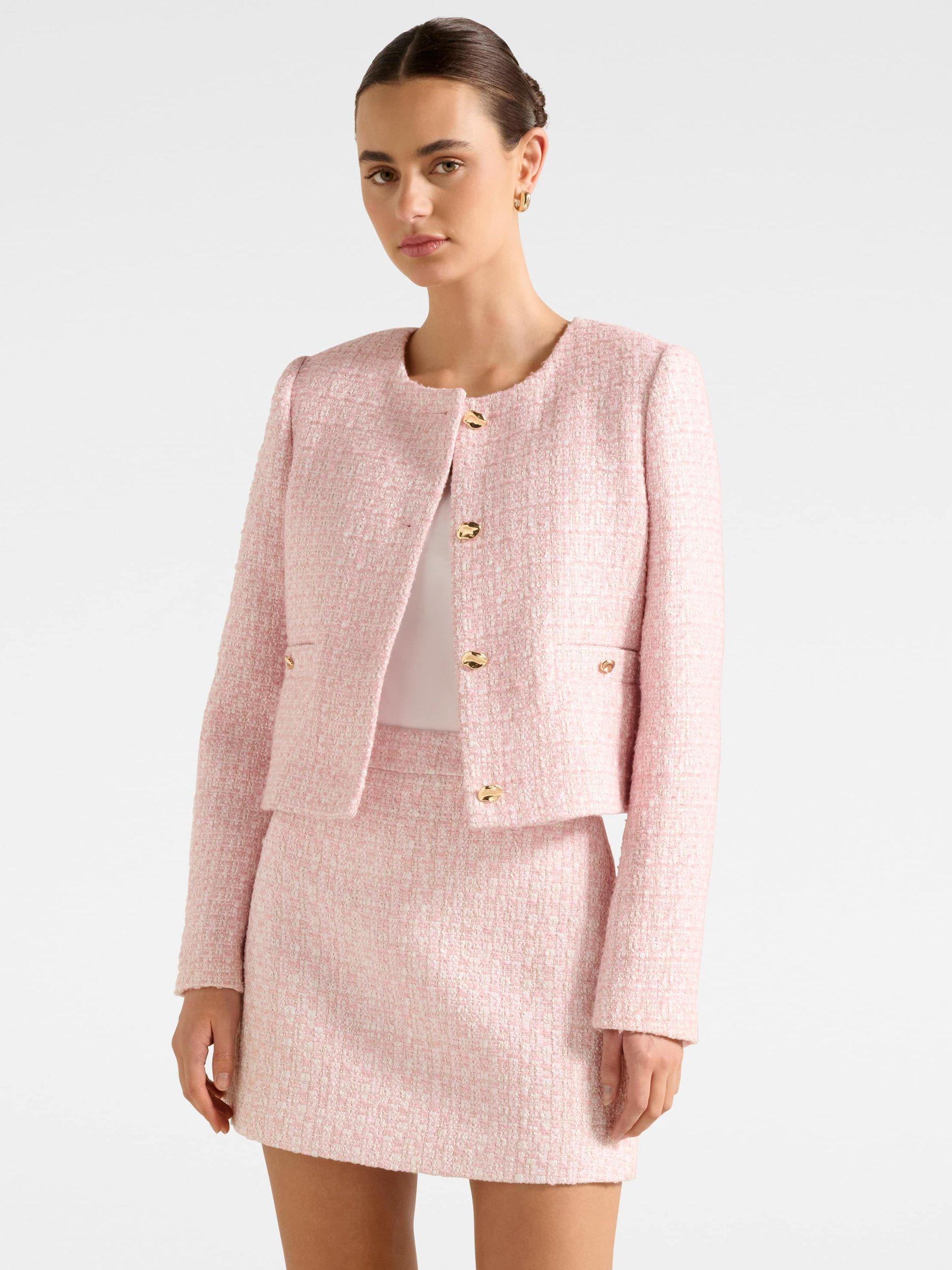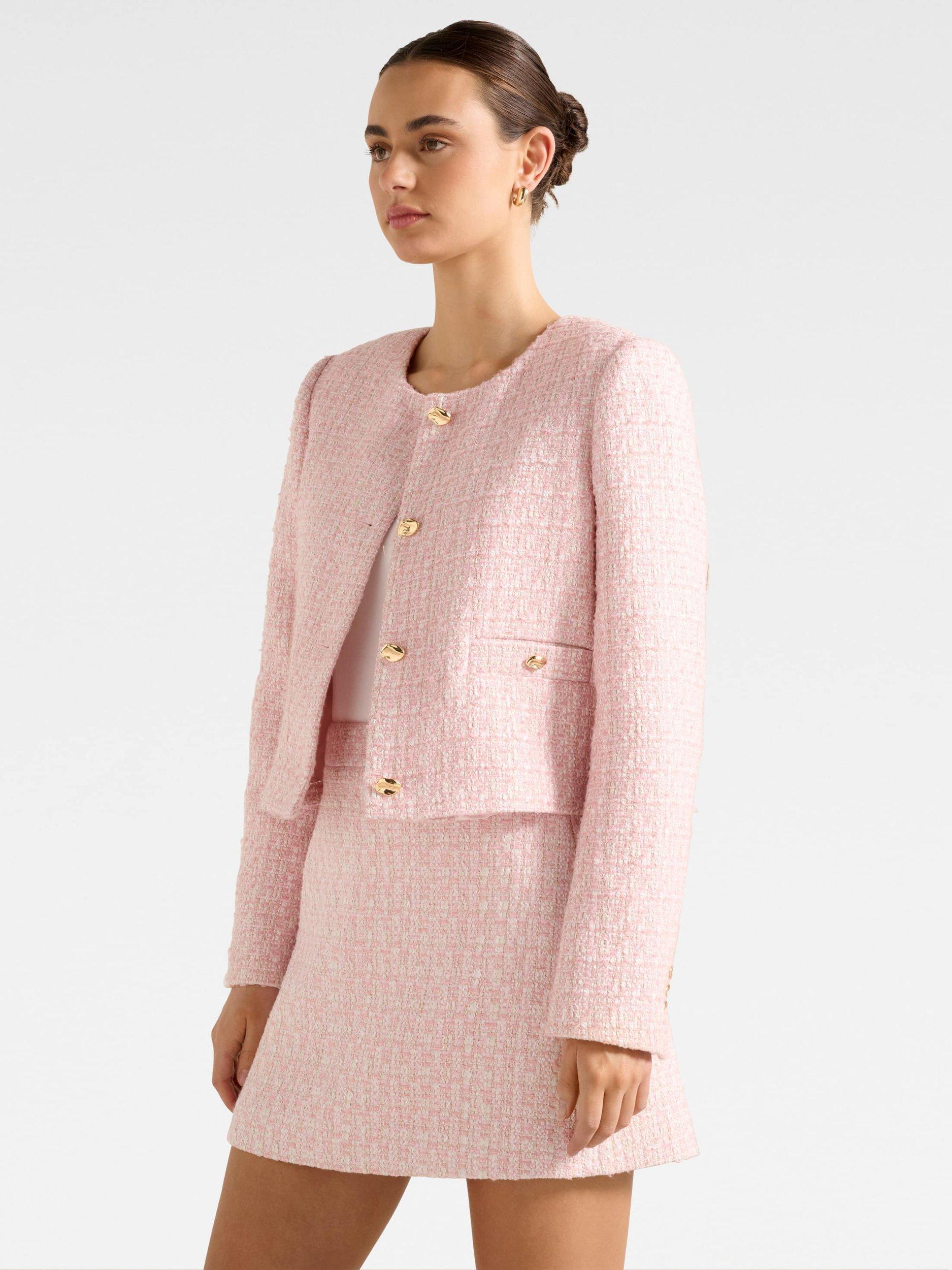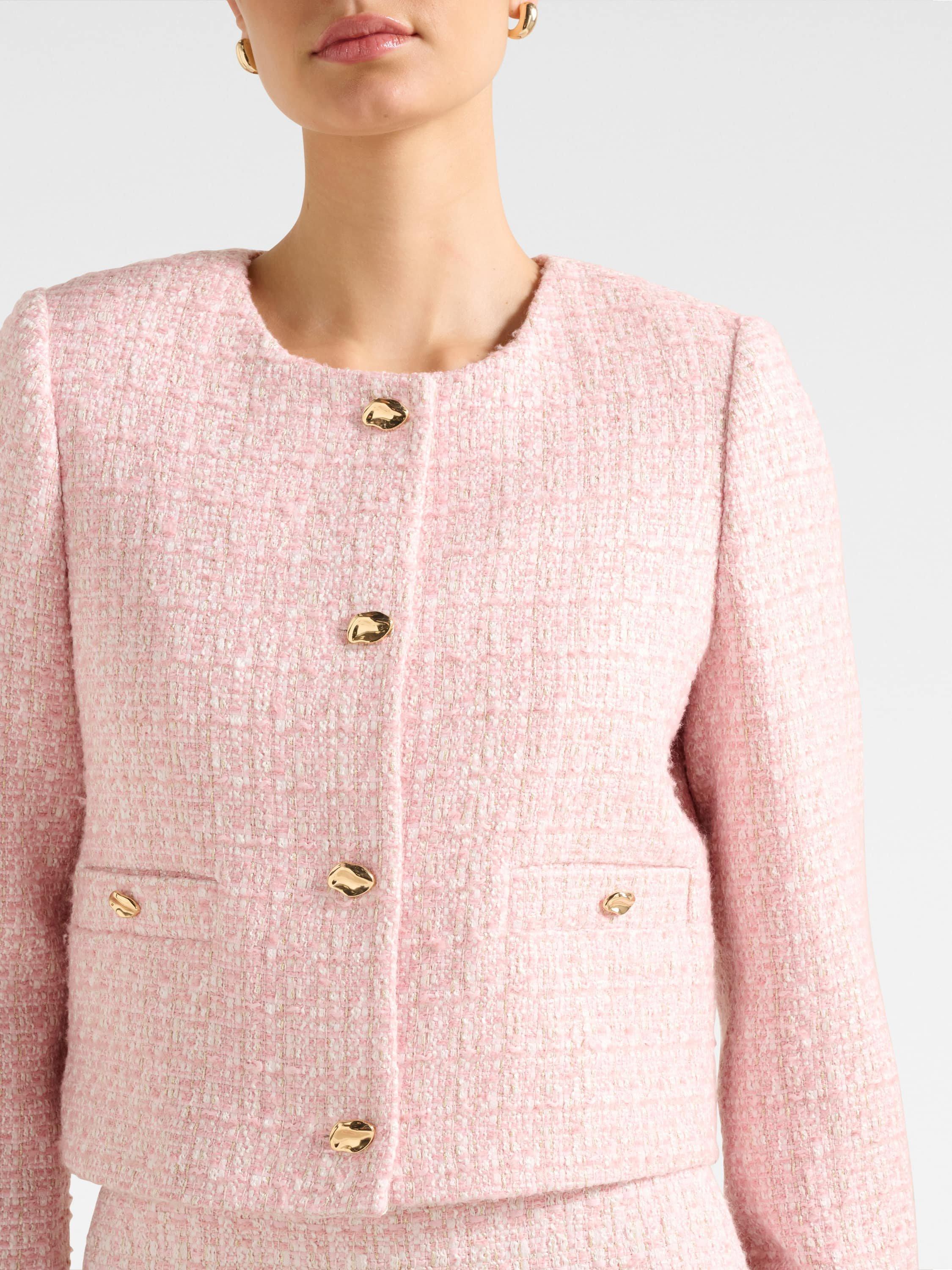 This textured boucle jacket adds a clever touch to your smart looks. Featuring a round neck and button fastening, it pairs easily with your wardrobe and keeps you looking sharp whether you are in meetings or out for the evening.