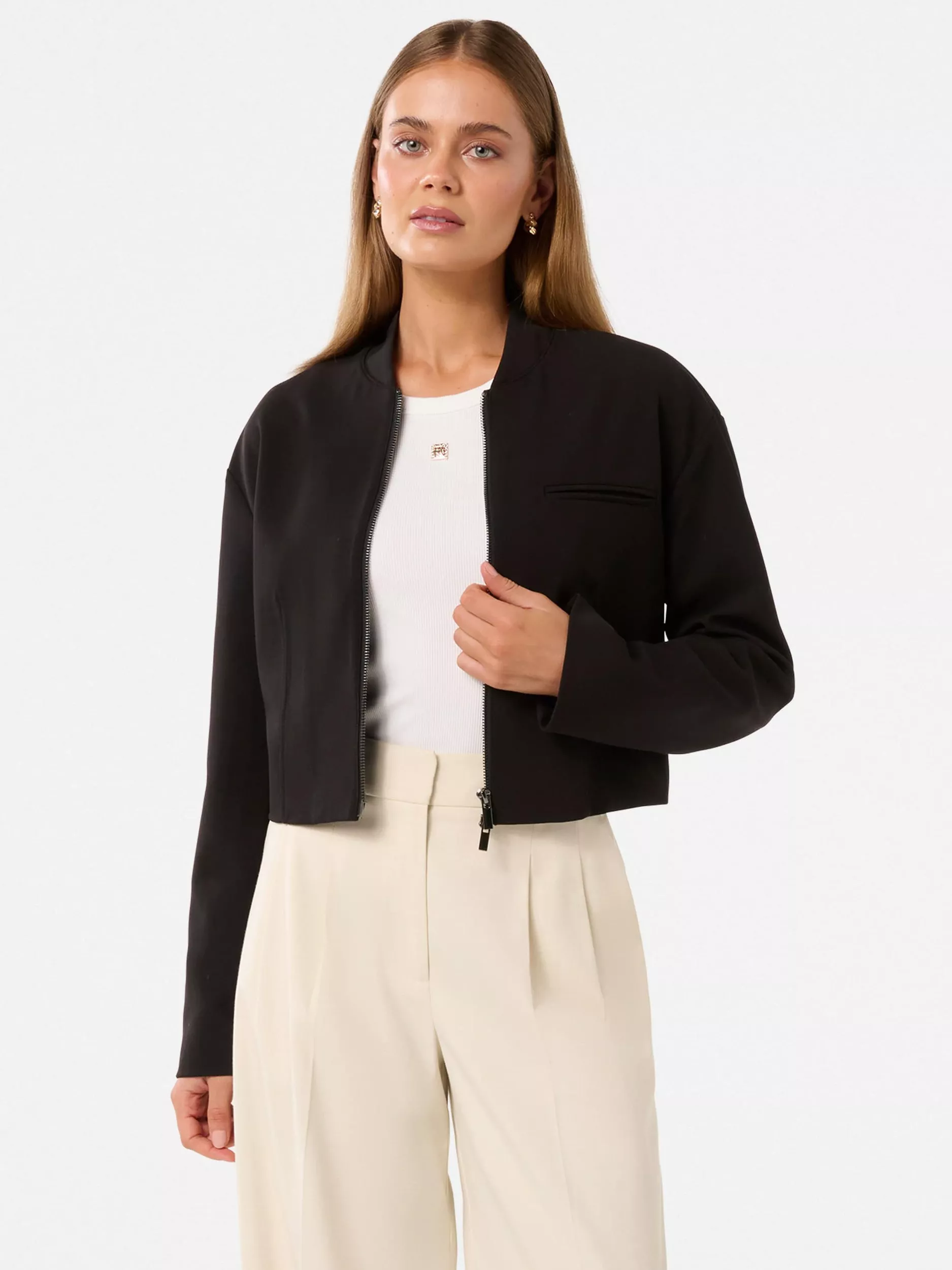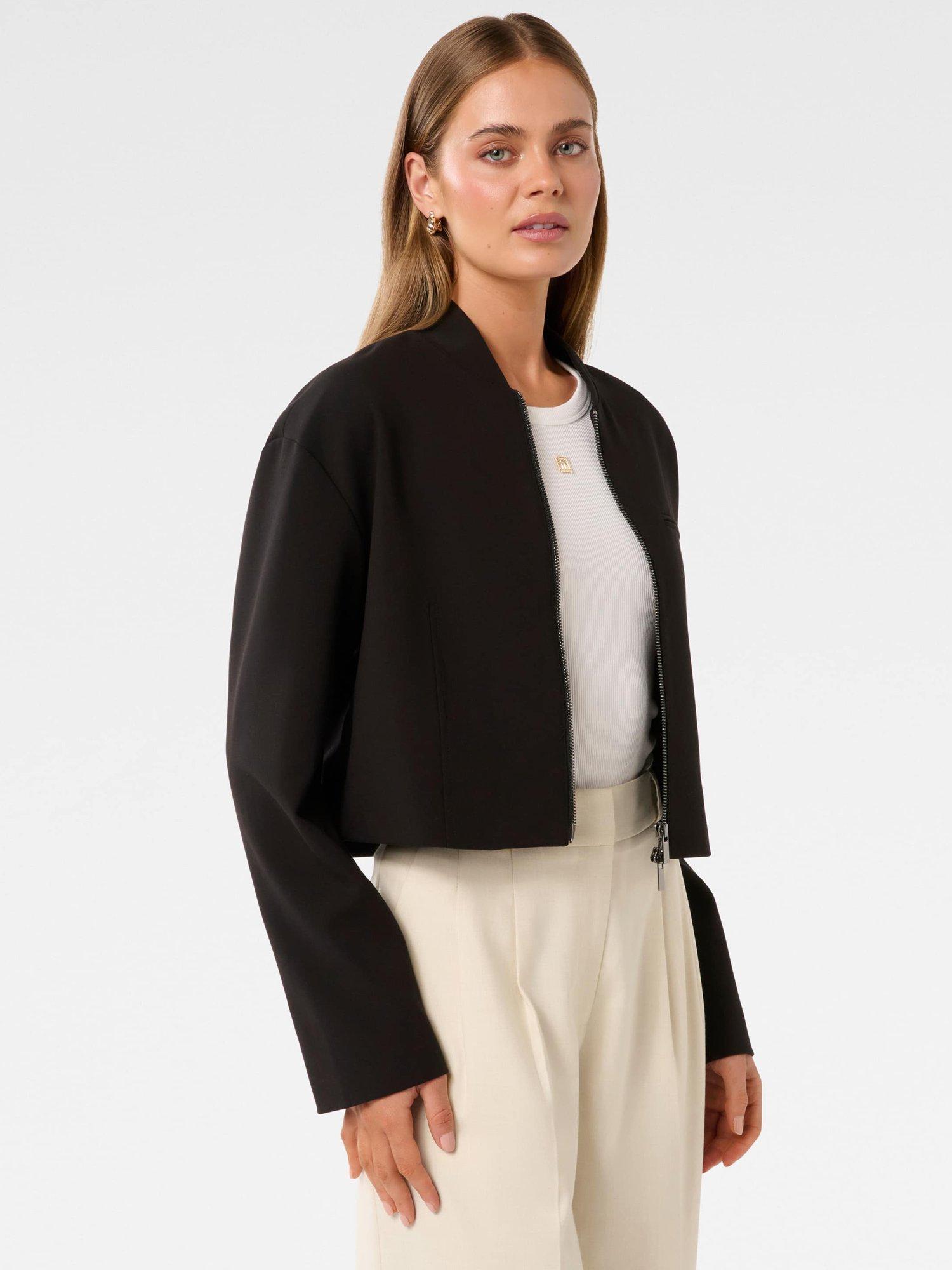 In a cool, casual style that'll serve you well come weekend, this bomber jacket from Forever New highlights the waist with its cropped hem. Zipping up to the neck, it is made from a longlasting blended fabric with classic ribbed tipping.