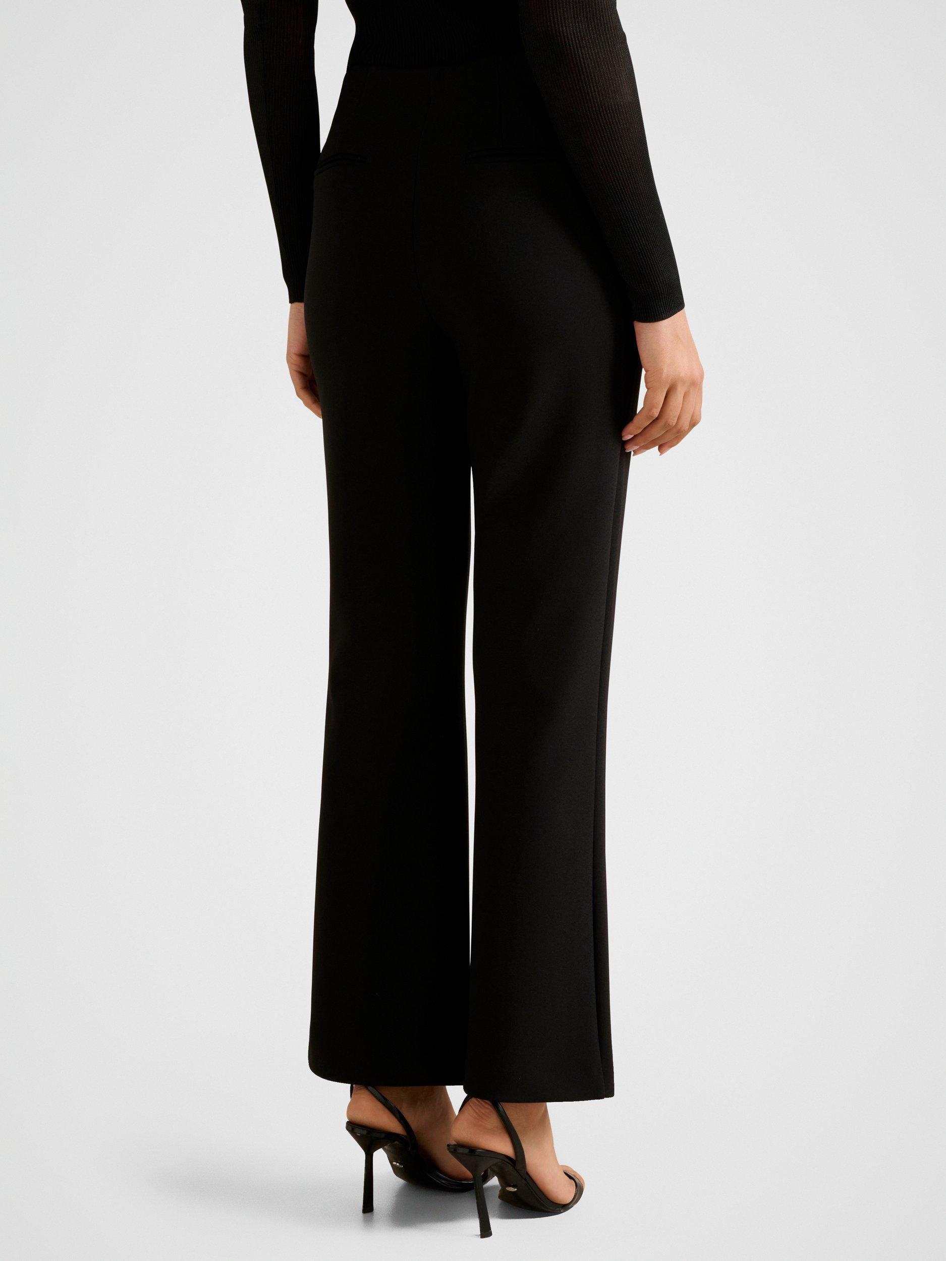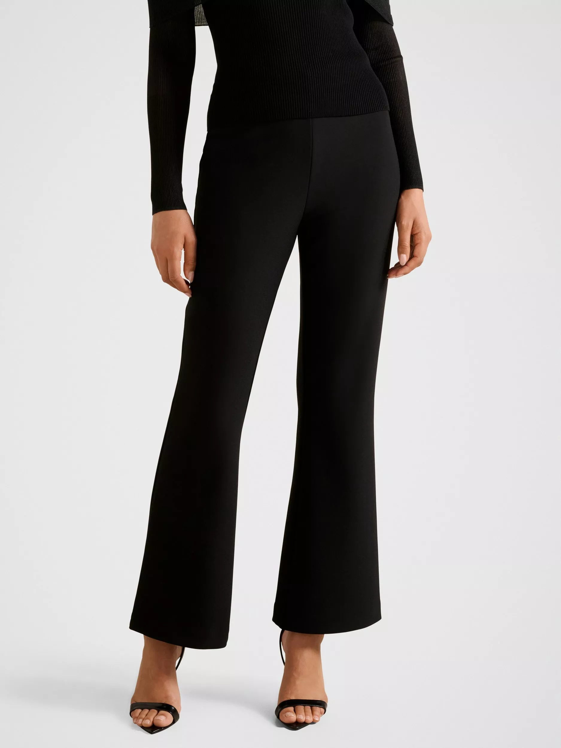 Sleek flared trousers by Forever New. They sit mid rise with a zip fly and hems that are fall past the ankle.