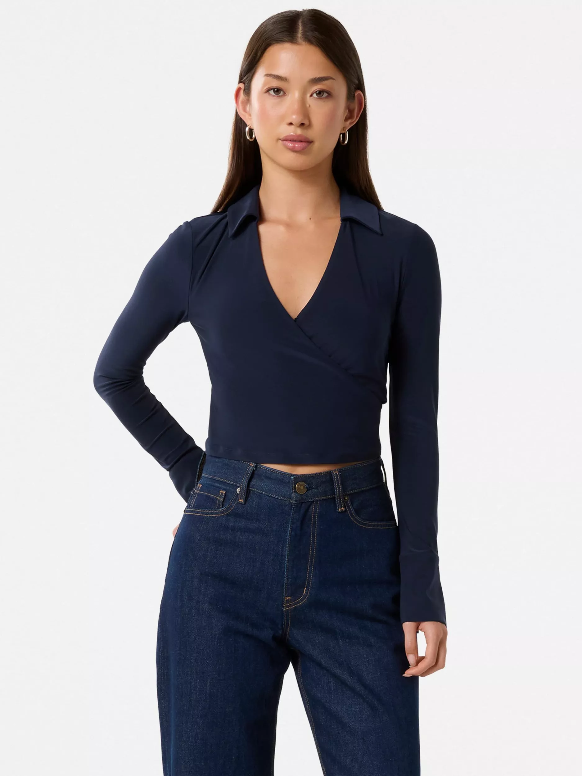 Not your average staple, this wrap top from Forever New makes for the perfect companion to patterned layers. Framed with a flattering neckline and long sleeves, it is made from a soft jersey fabric.