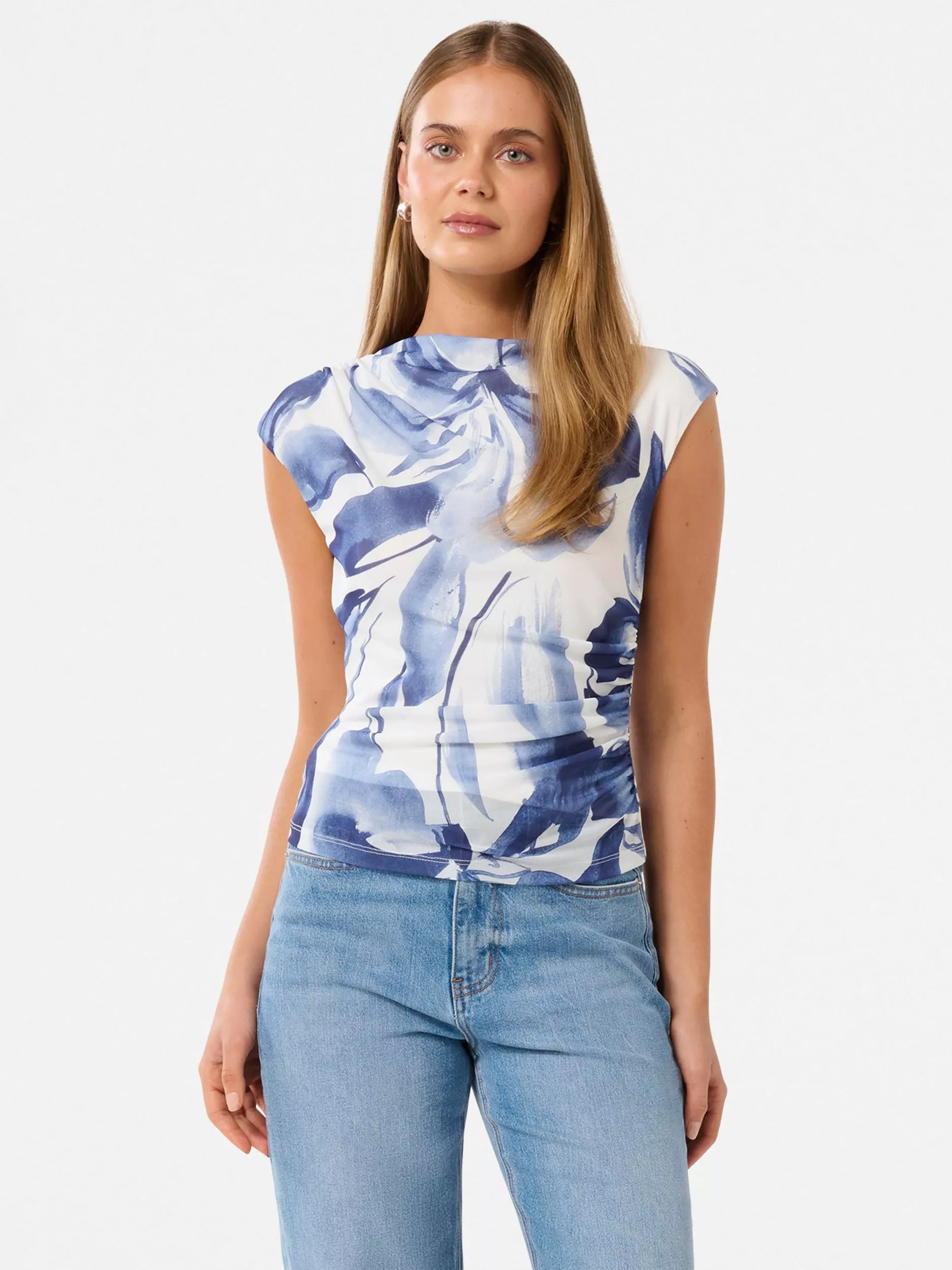 Forever NewMel Floral Mesh Top, Blue/White