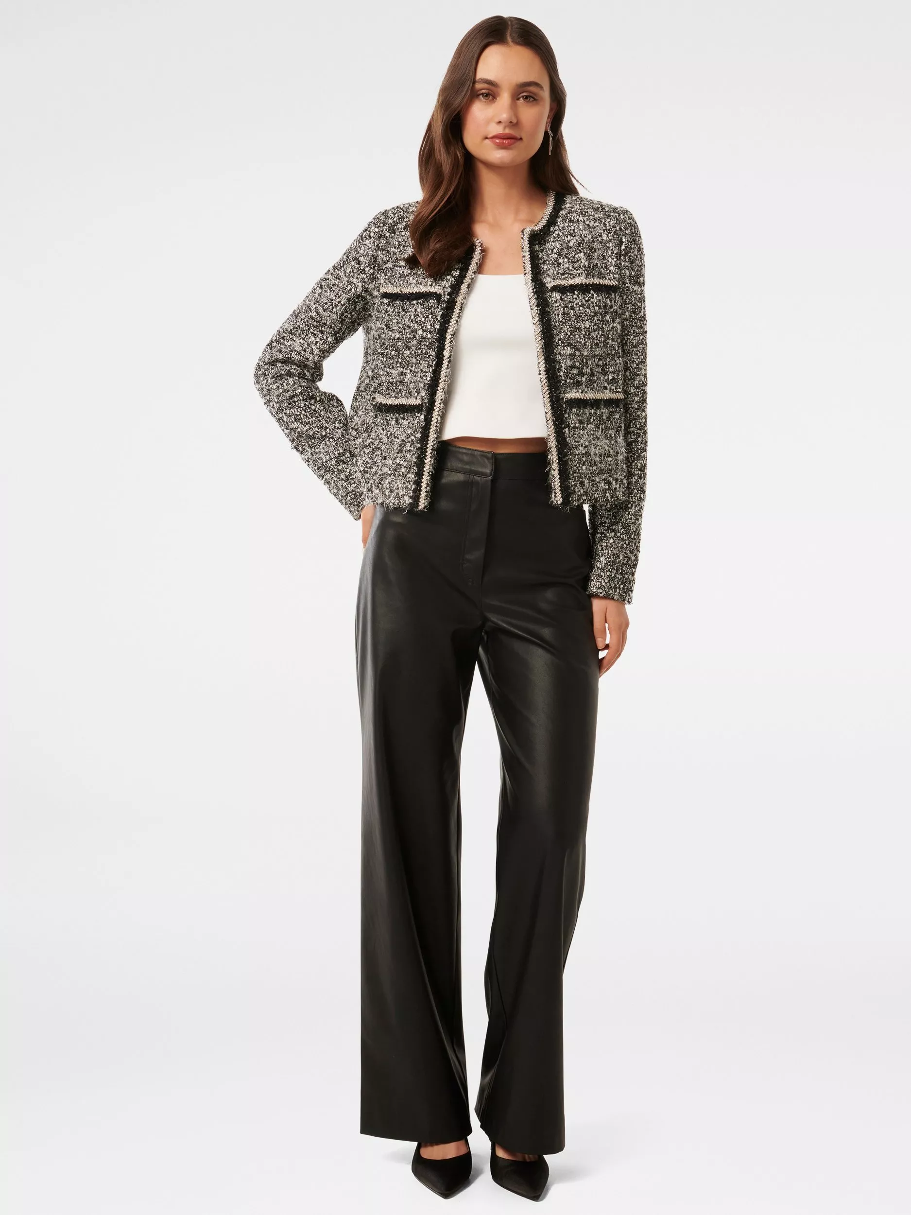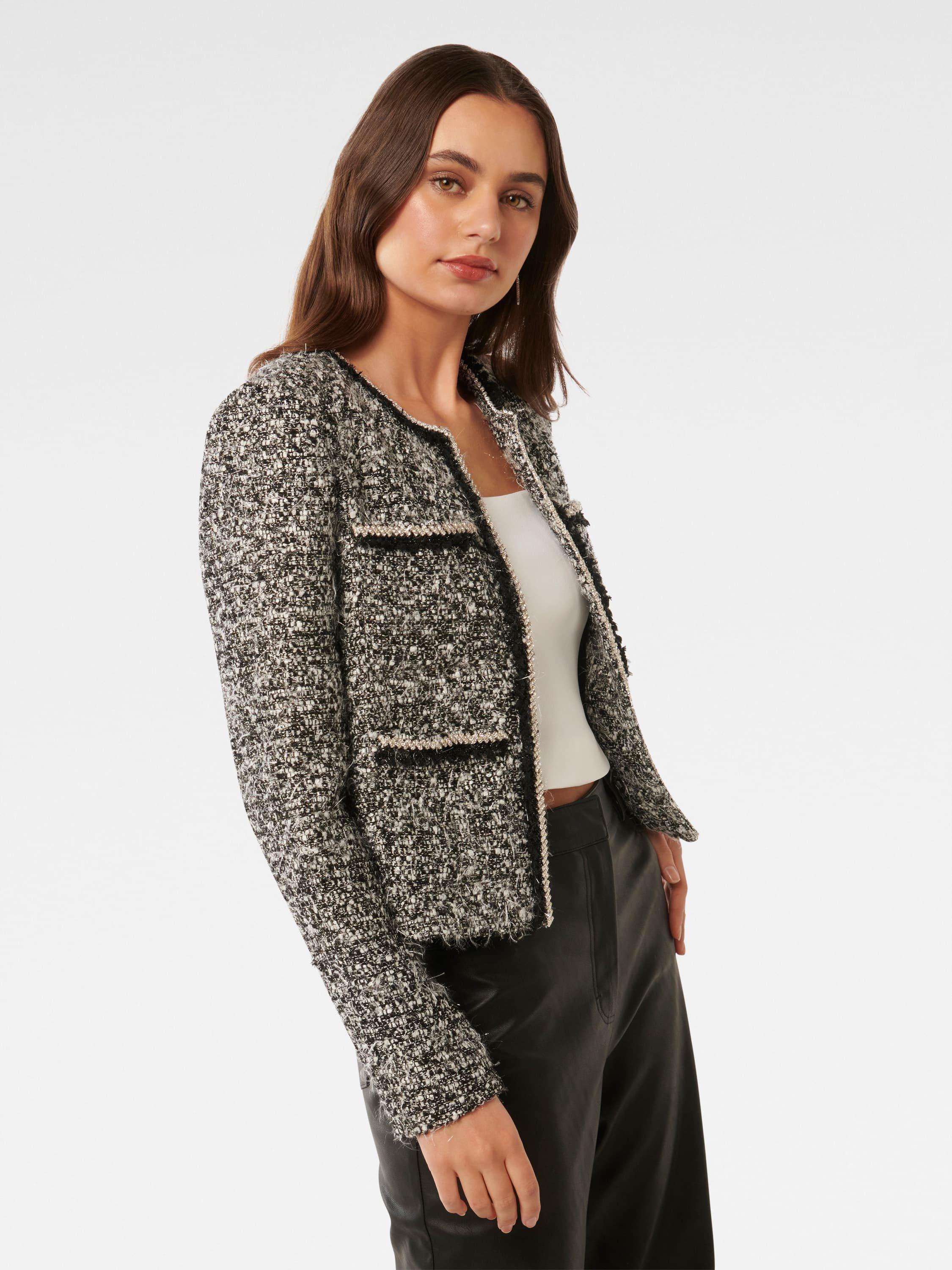 An easy layering piece that is sure to keep you cosy, this boxy jacket from Forever New is topped with a crew neck and makes for a warming choice thanks to its wool blend tweed fabric.