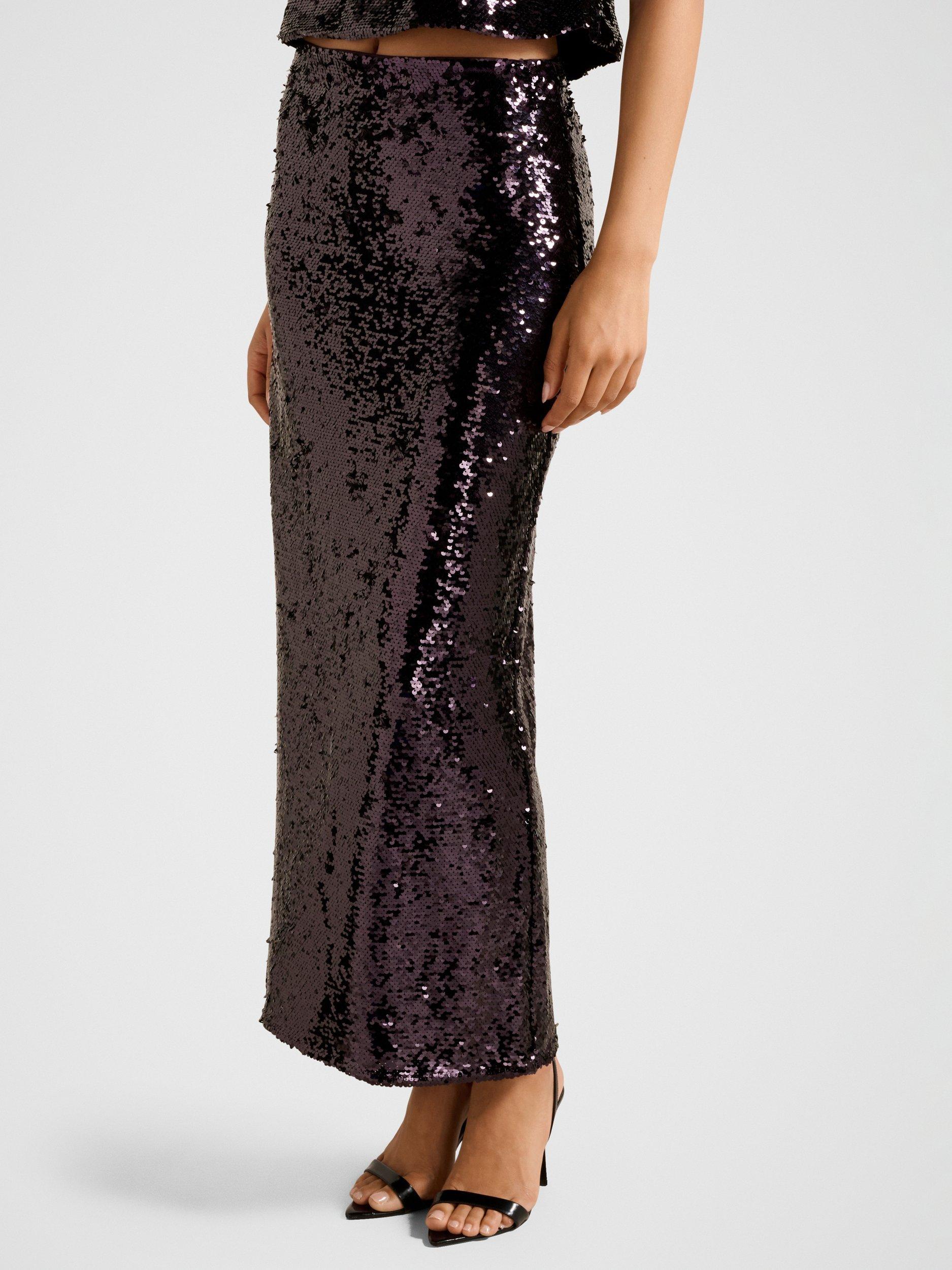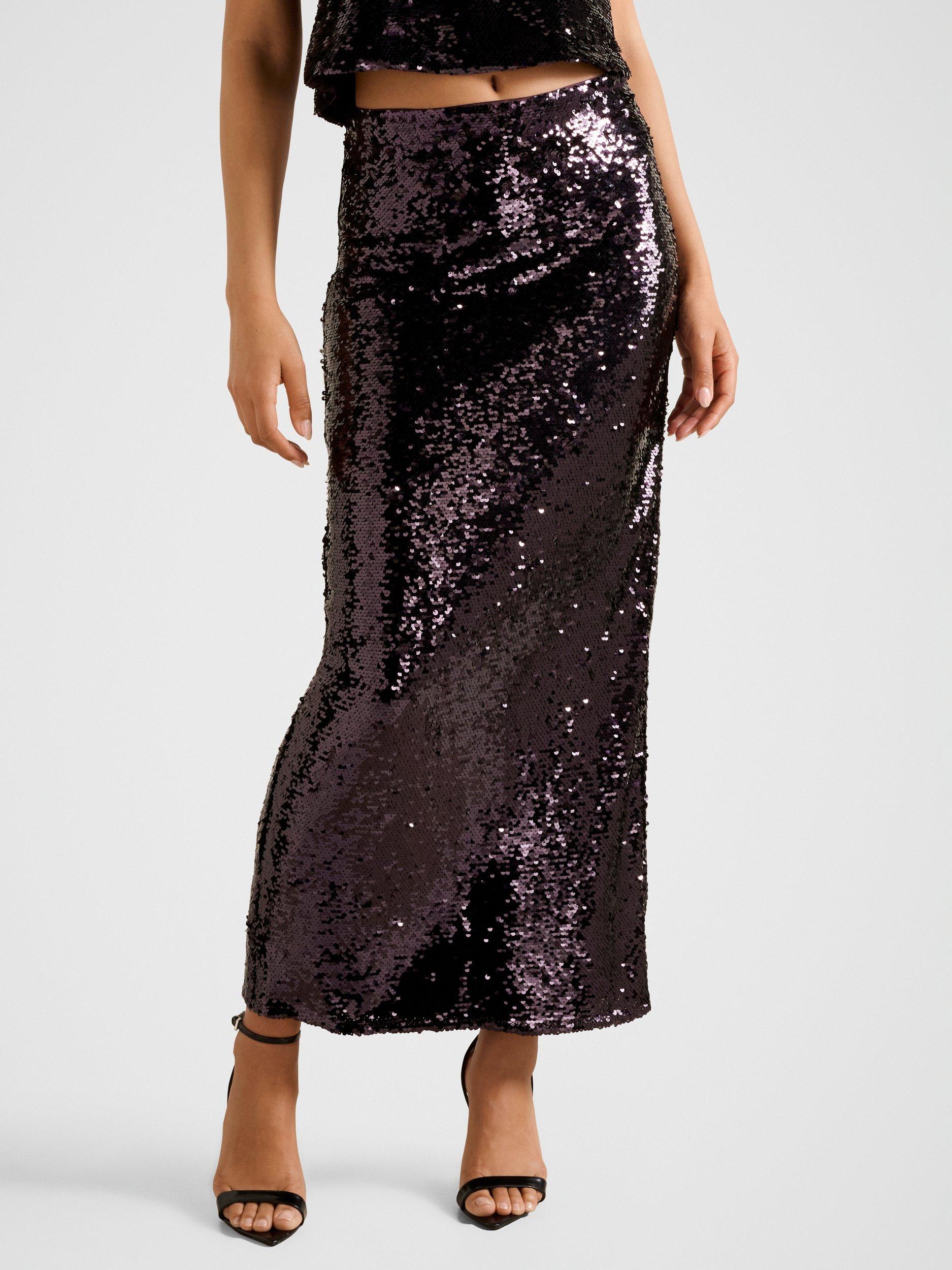 Designed with a midi cut - this one's by Forever New. Worn in a breezy A-line, it's defined with a mid rise and all-over embellishment. Secured by a zip closure.