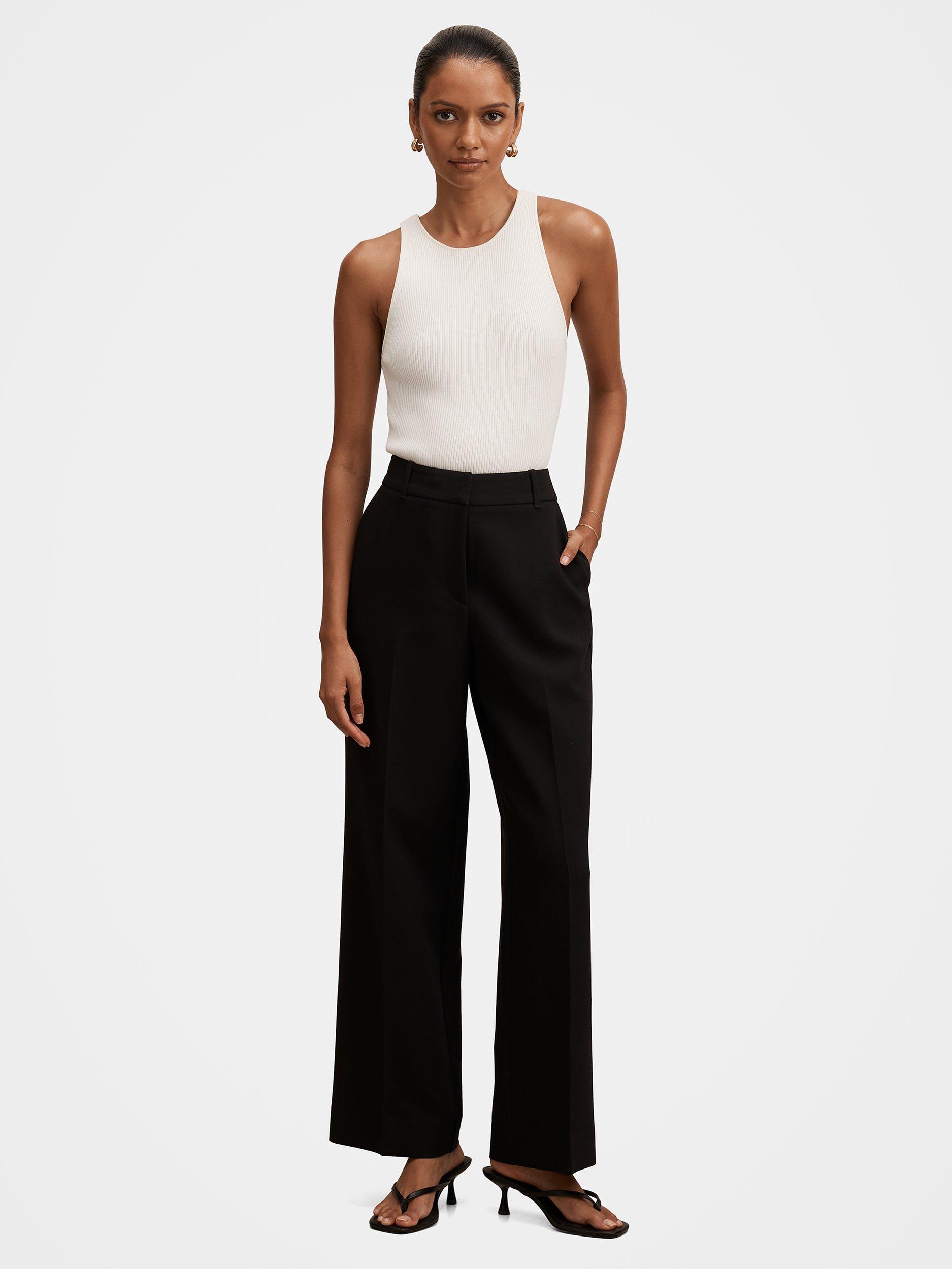 A pair of straight leg trousers from Forever New. They are designed to sit mid rise with a zip fastening and hems that fall to a regular length.