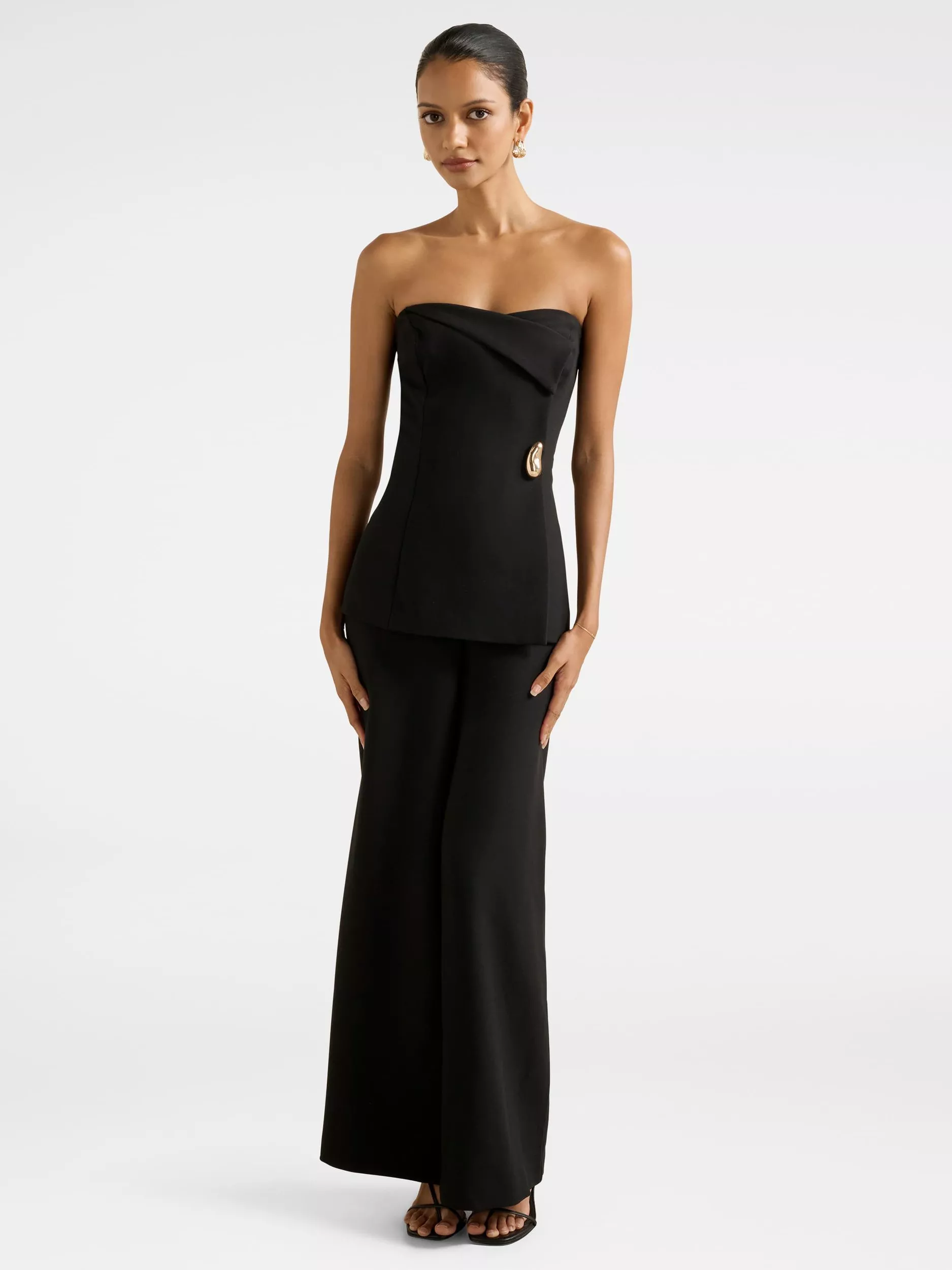 With a clean-lined square neckline, this strapless jumpsuit from Forever New is made with durable fabric for longevity of wear. Proving that less is certainly more, this one piece adds a touch of glamour.
