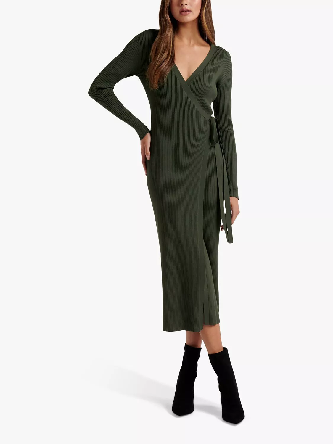 With a refined wrap front, this midi dress by Forever New is a muted, yet chic addition to your repertoire.