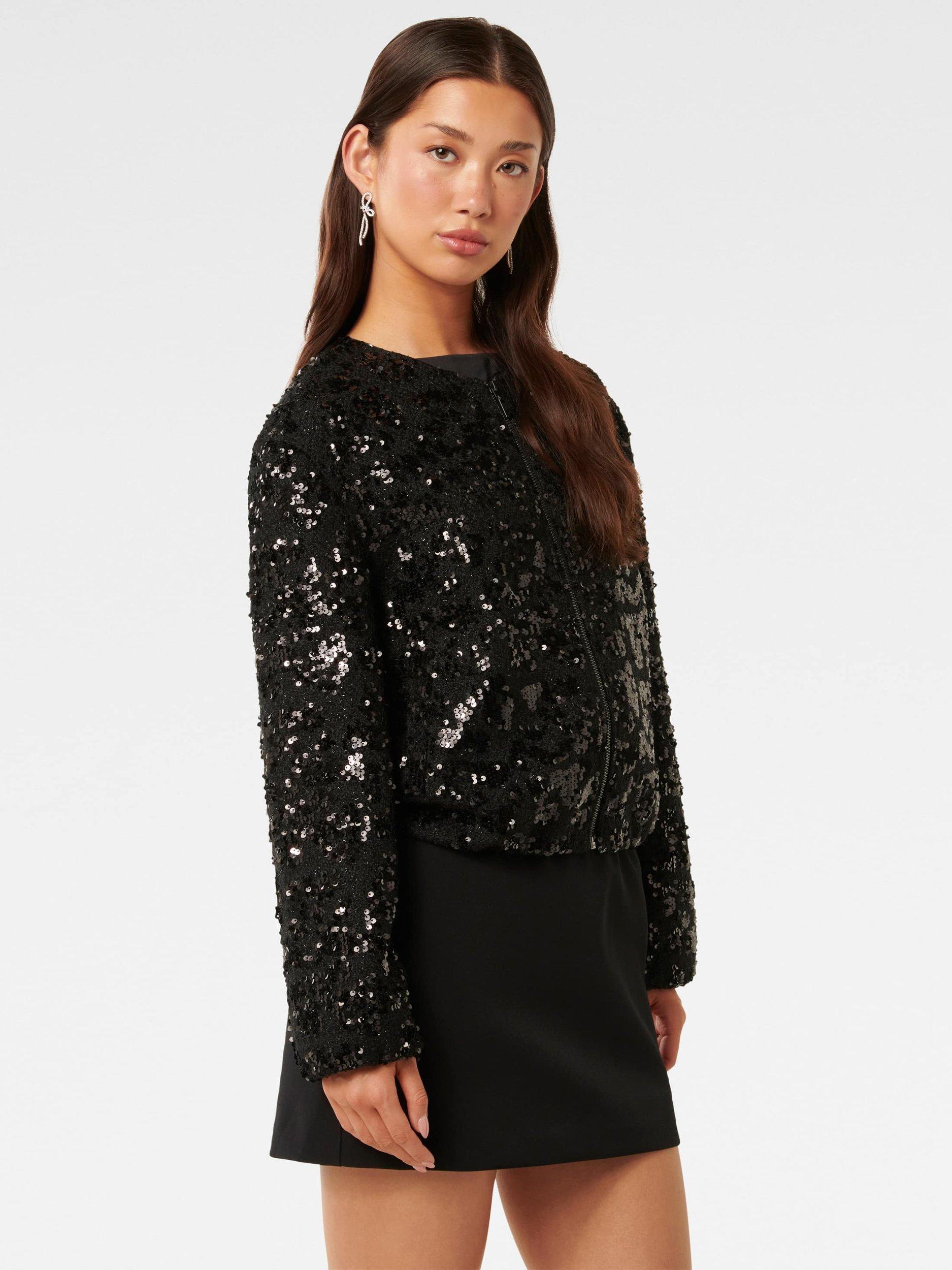 A classic bomber silhouette accented with sequin embellishments for a party-ready spin.