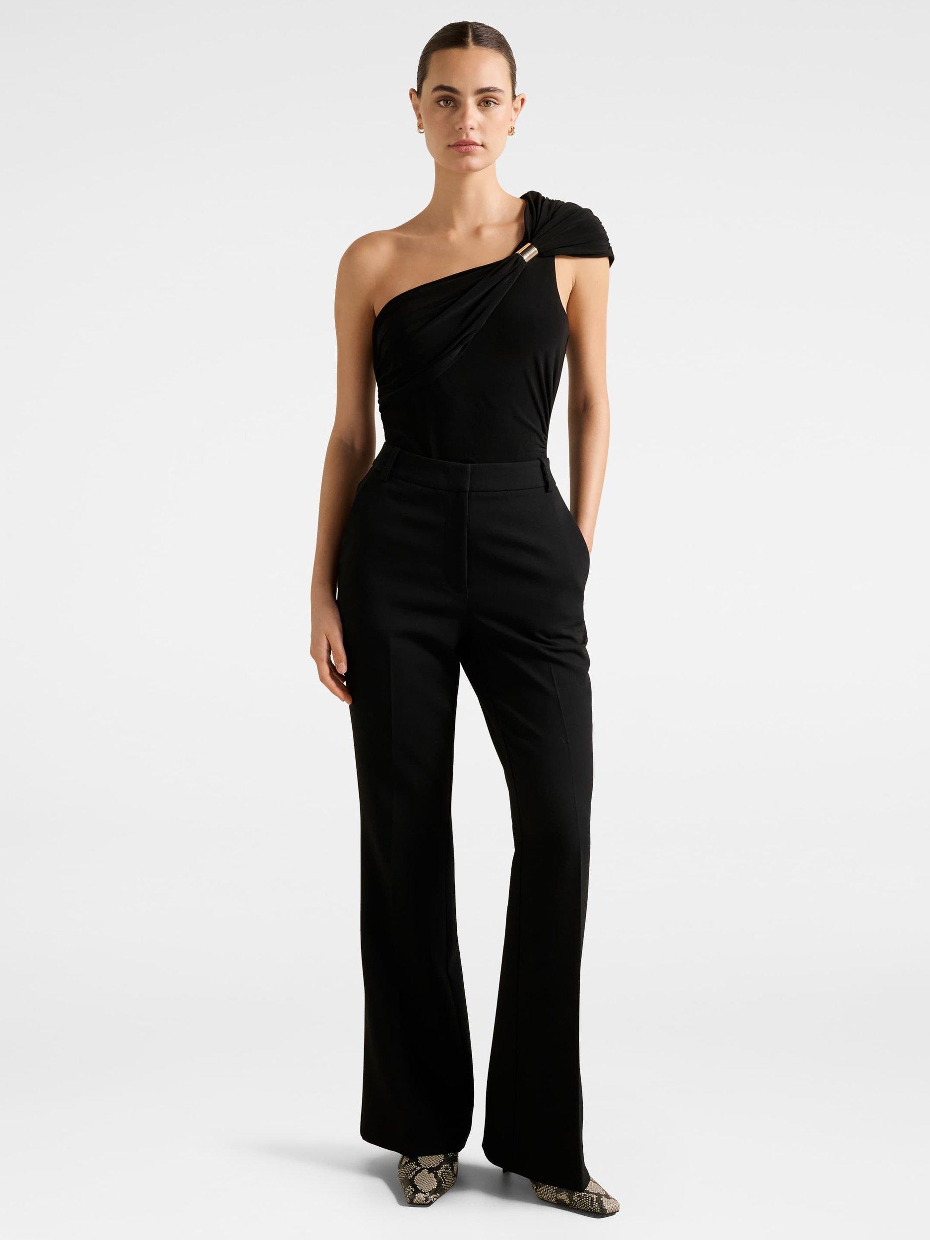 A sleeveless jersey top by Forever New with a gathered asymmetric neckline with a hardware detail. The perfect top for your next party.