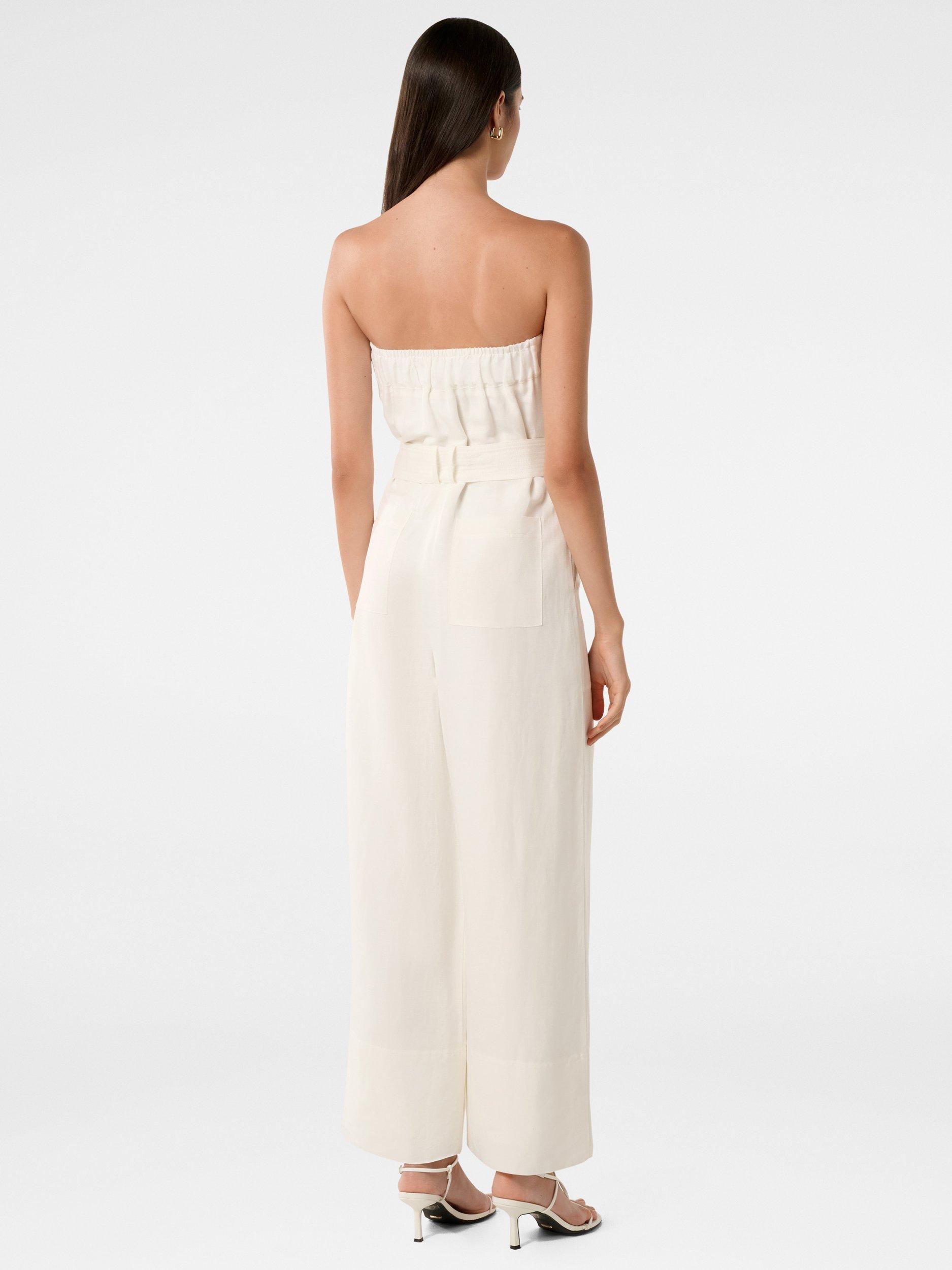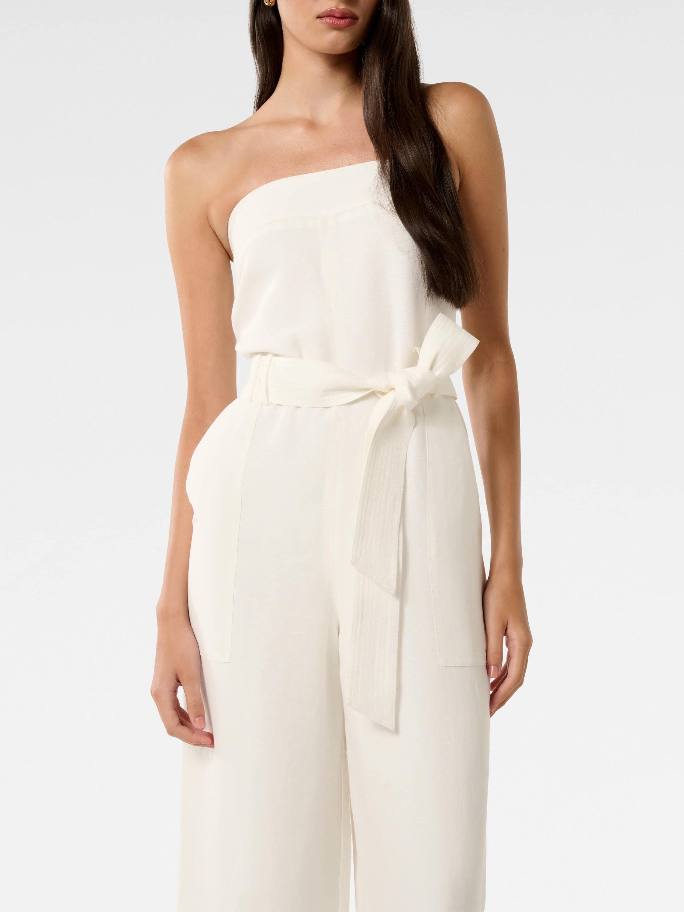 Carved out with a bandeau neckline and wide legs, this strapless jumpsuit by Forever New comes in a breathable linen blend.