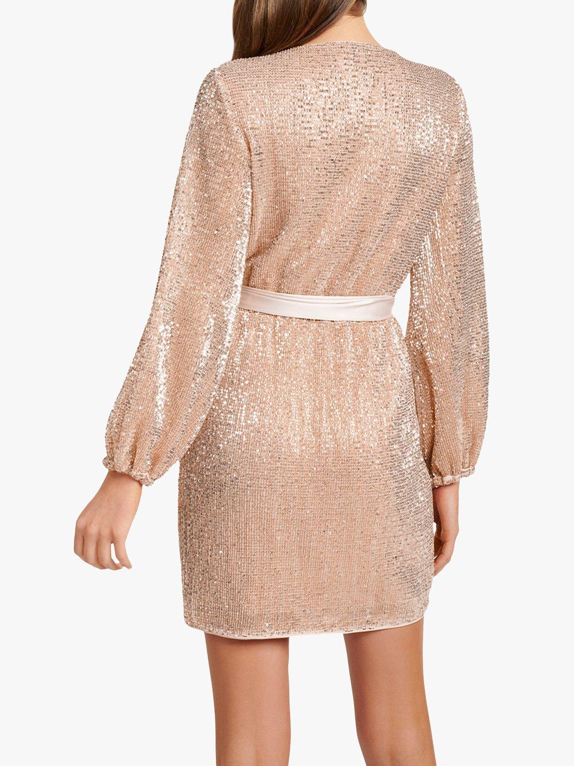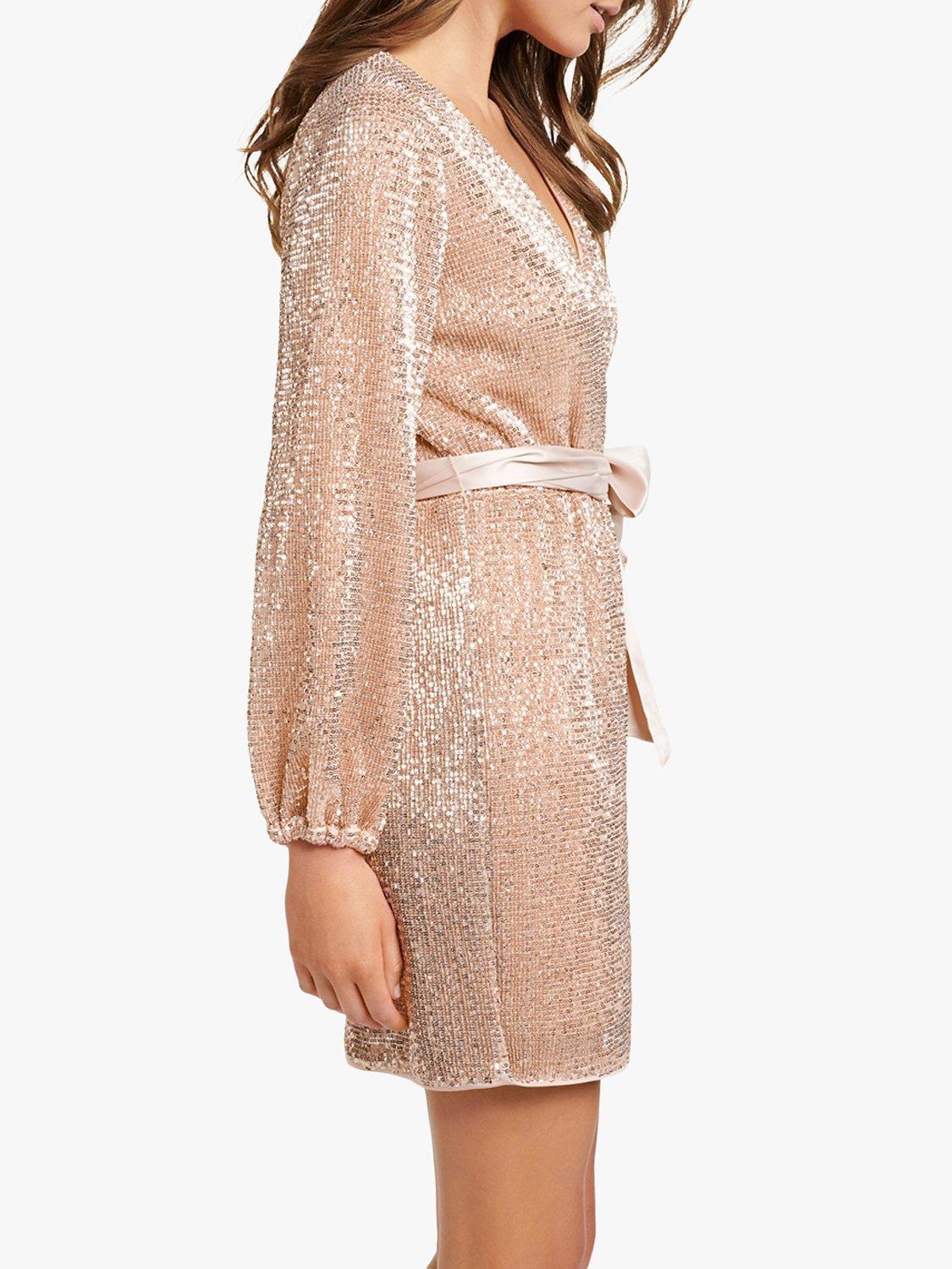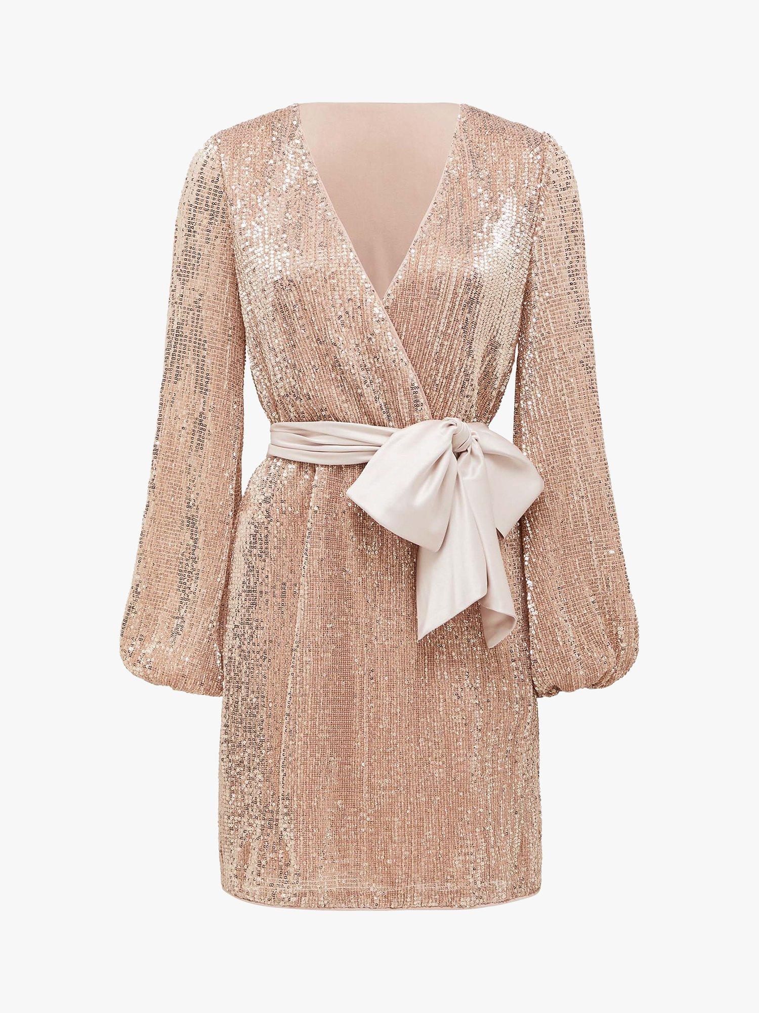 A dazzling piece to turn heads, this dress from Forever New is embellished with sequins and an oversized satin bow for an arresting blend of luxe textures. It has a flattering wrap style front, gently gathered sleeves and comes in a playful mini length that looks best worn with your sleekest heels. Add a beaded clutch for instant party glamour.