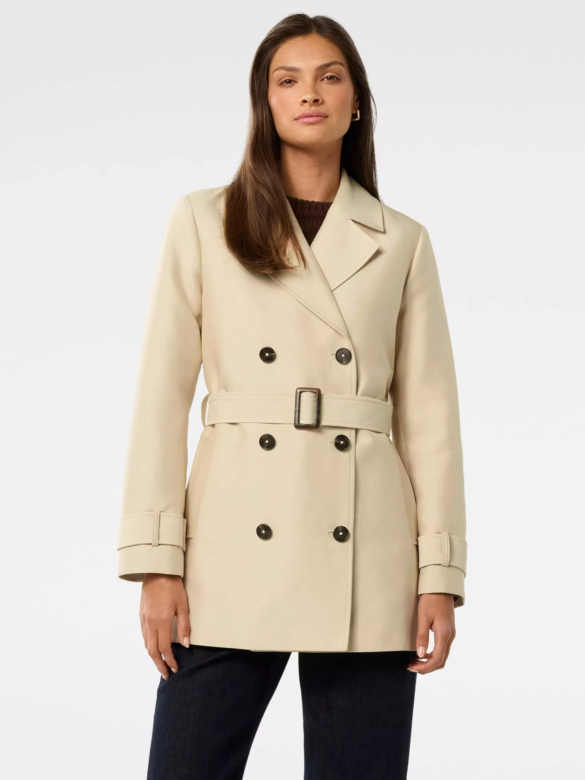 A modern trench with a sharp V-neck, long sleeves, and versatile button fastening. Designed for comfort during cool days, offering just the right length for day wear while keeping you warm and ready for anything winter brings.