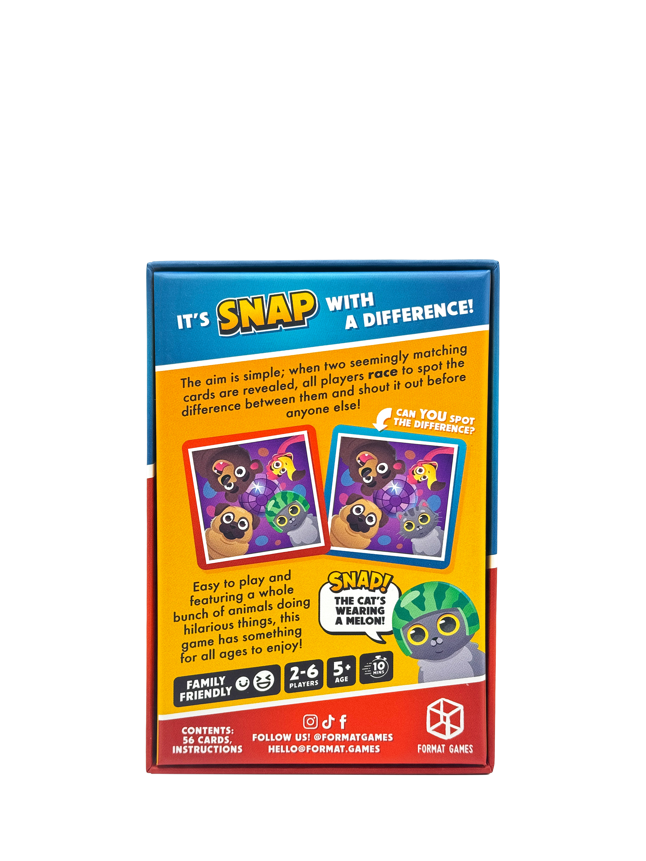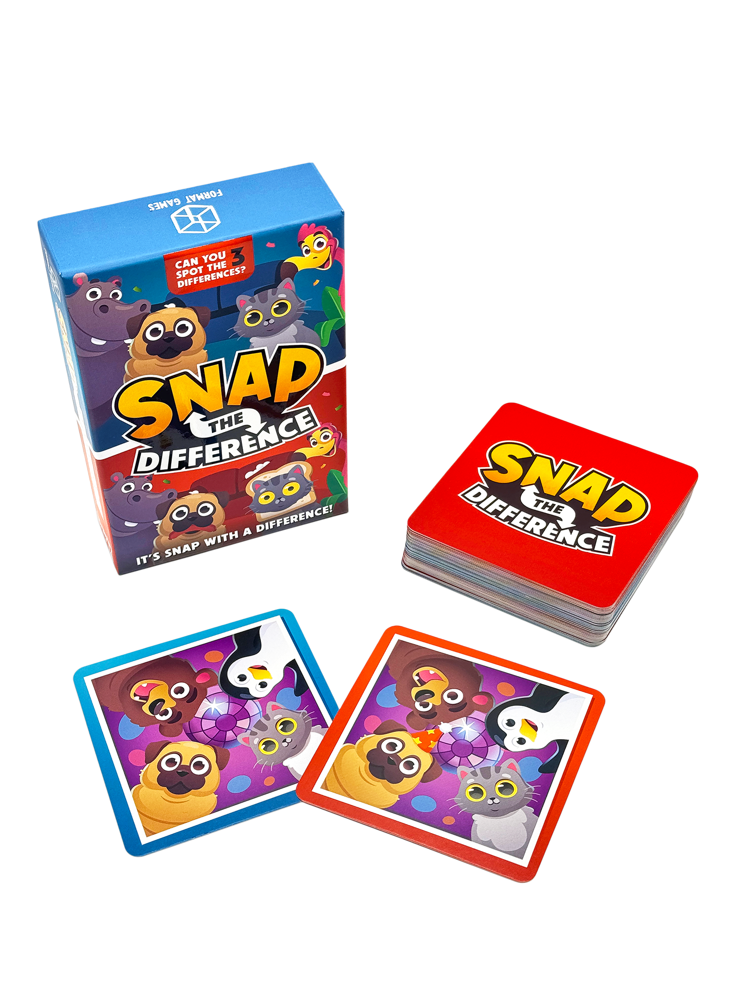 Easy to learn and suitable for ages 3+, Snap The Difference plays in quick, refillable rounds for 2–6 players, making it perfect for mixed-age households, playdates, or sleepovers. Lightweight and travel-friendly, it’s ideal for cafés, holidays, and car trips—a vibrant twist on classic Snap that builds observation, quick thinking, and friendly competition.