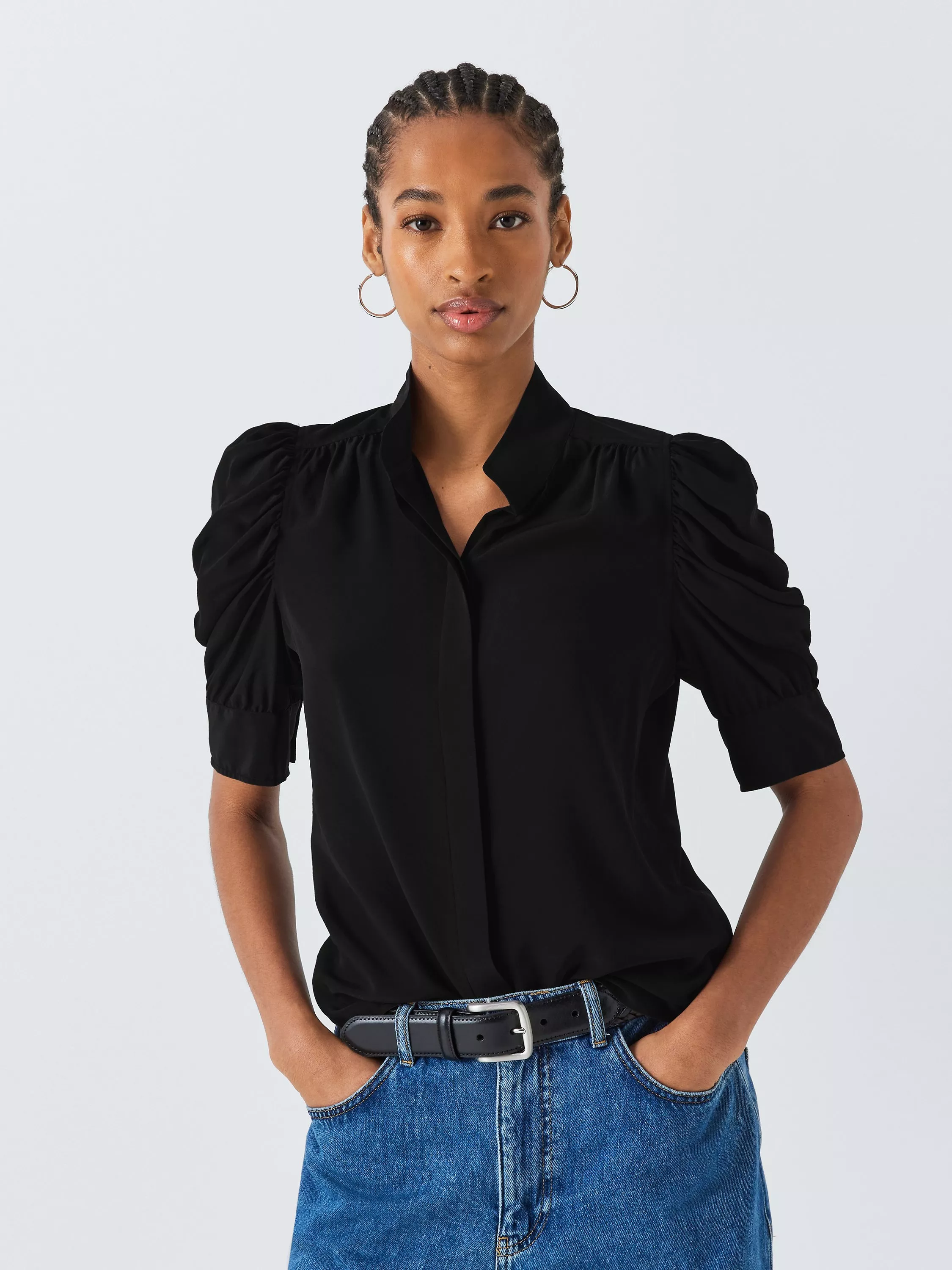 Framed with a collar and short puffy sleeves, it is made from pure silk for a premium finish and will slot seamlessly into your everyday staples.