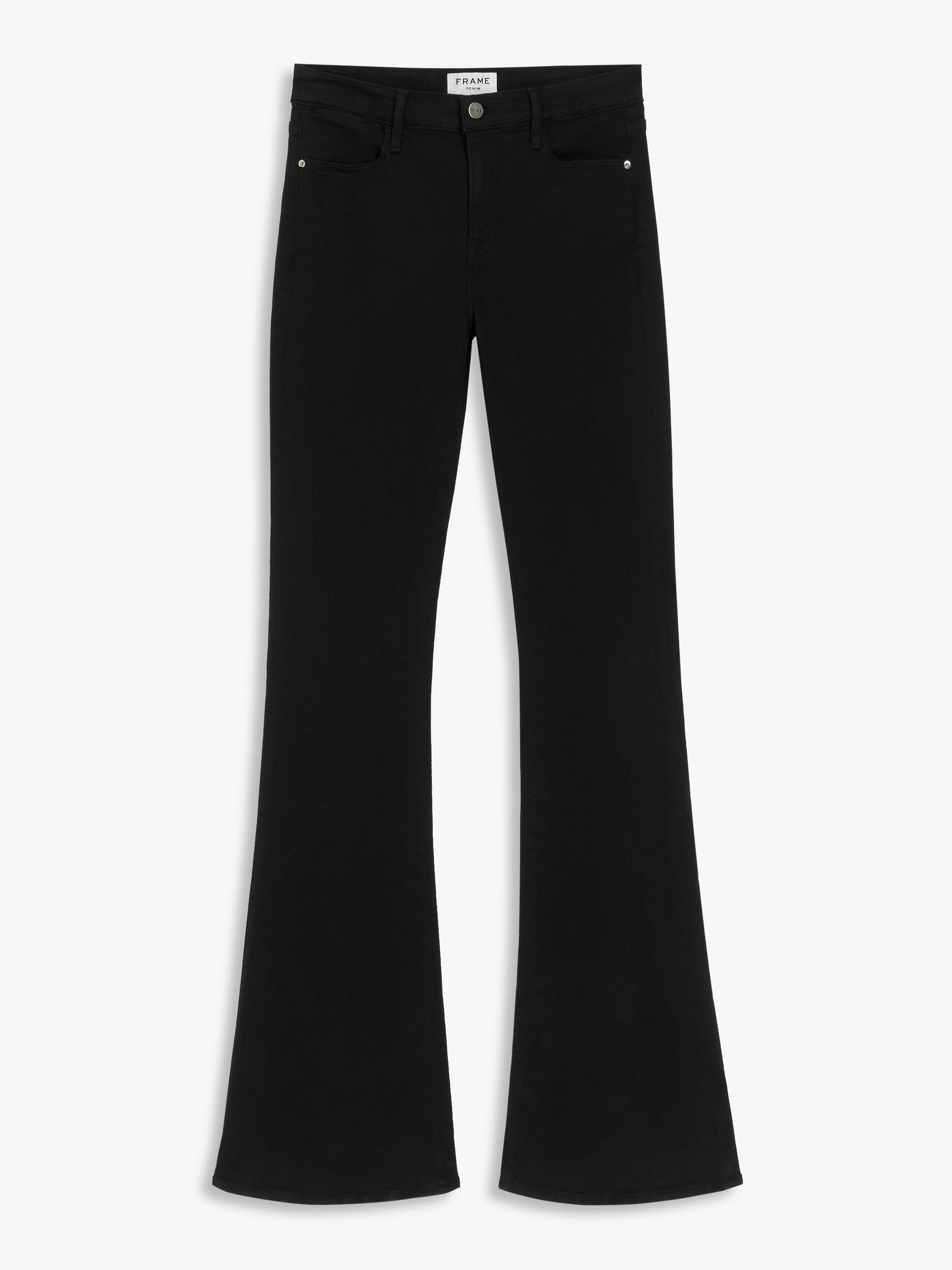 These jeans from FRAME are a 70's inspired style in soft stretch denim. Offering a balanced silhouette with a skinny fit through the hips and thighs and a dramatic flare through the hem, these jeans sit just below the natural waist for a flattering and comfortable fit. Pair yours with a cropped chunky knit and heeled boots.