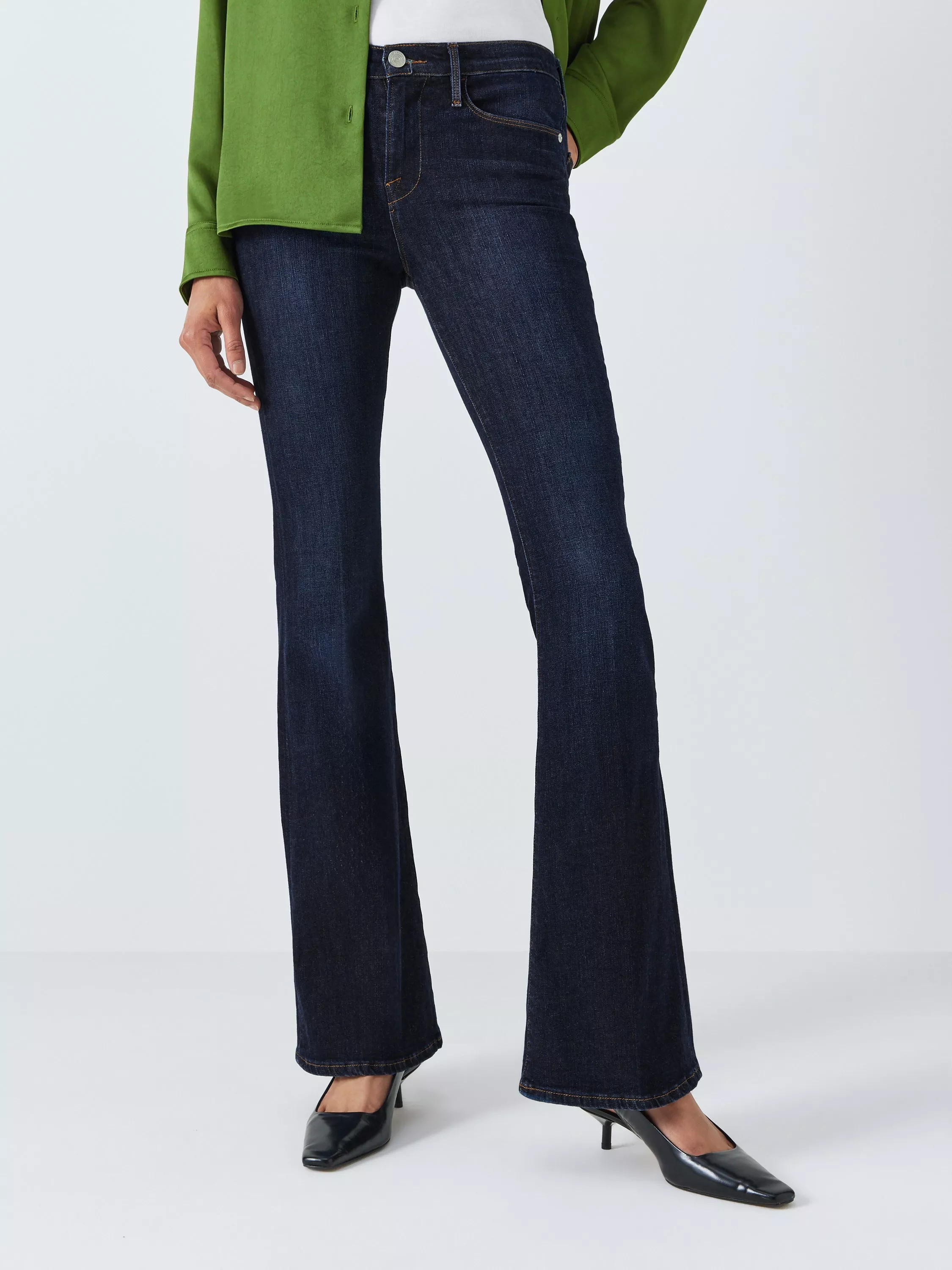 These jeans from FRAME are a 70's inspired style in soft stretch denim. Offering a balanced silhouette with a skinny fit through the hips and thighs and a dramatic flare at the hem, they sit just below the natural waist for a flattering and comfortable fit. Pair yours with anything from a simple tee to pretty blouses or gauzy knits.