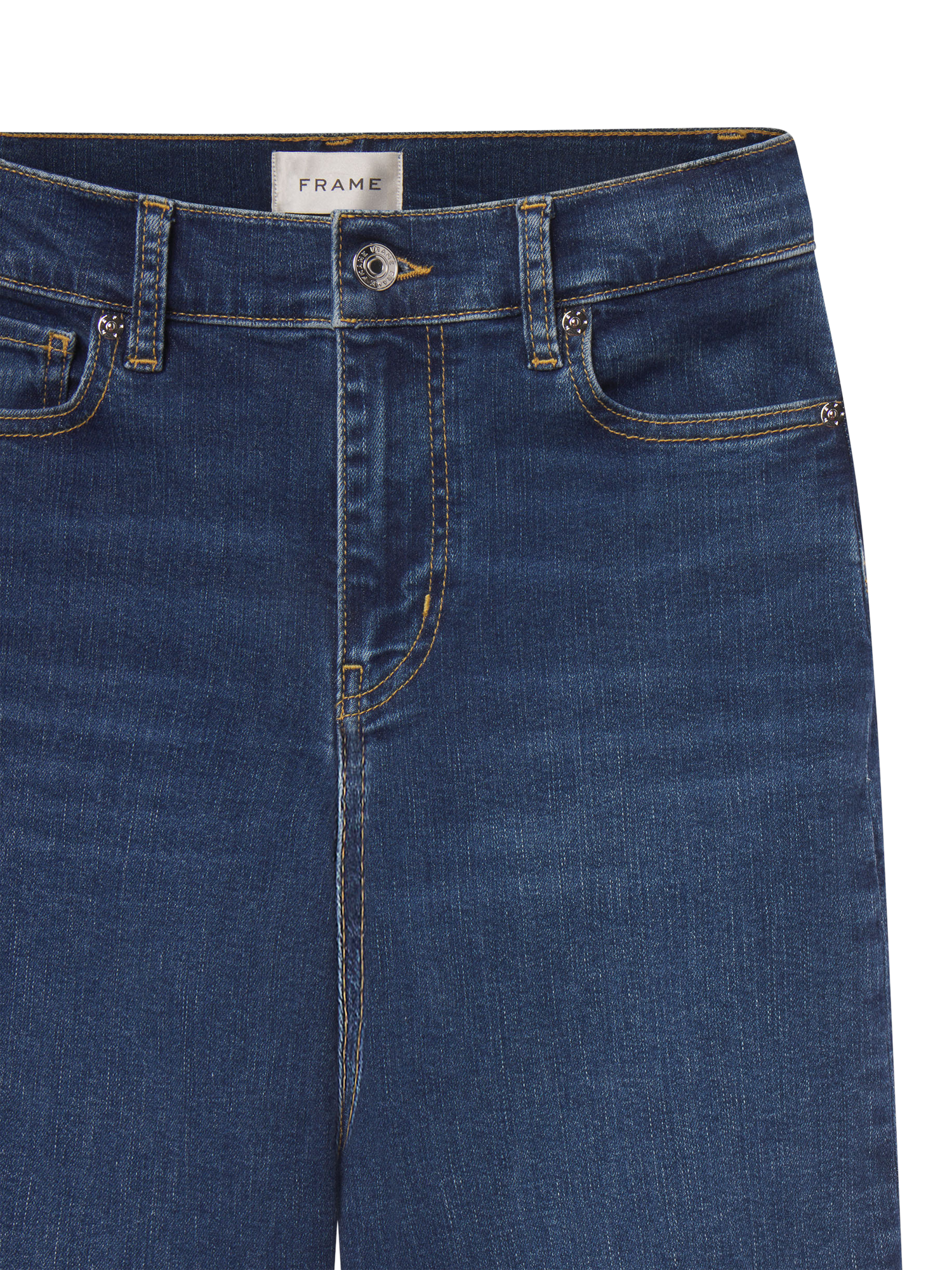 A FRAME introduction to the best-selling palazzo silhouette, this pair is designed with a flattering high rise, fitted hip, and subtle wide-leg flare that hits at the floor. Crafted from an ultra-stretch cotton blend for soft and comfortable wear.