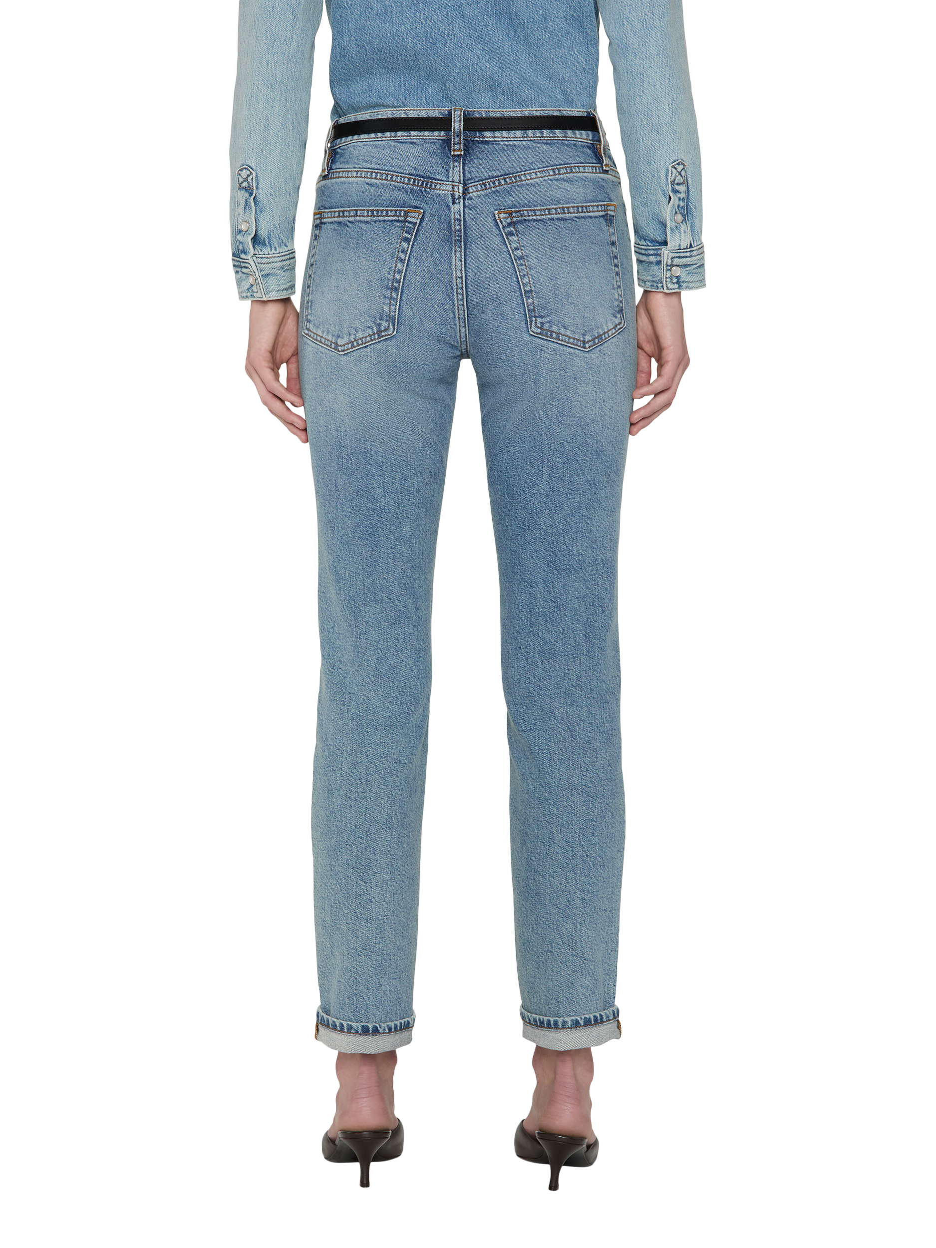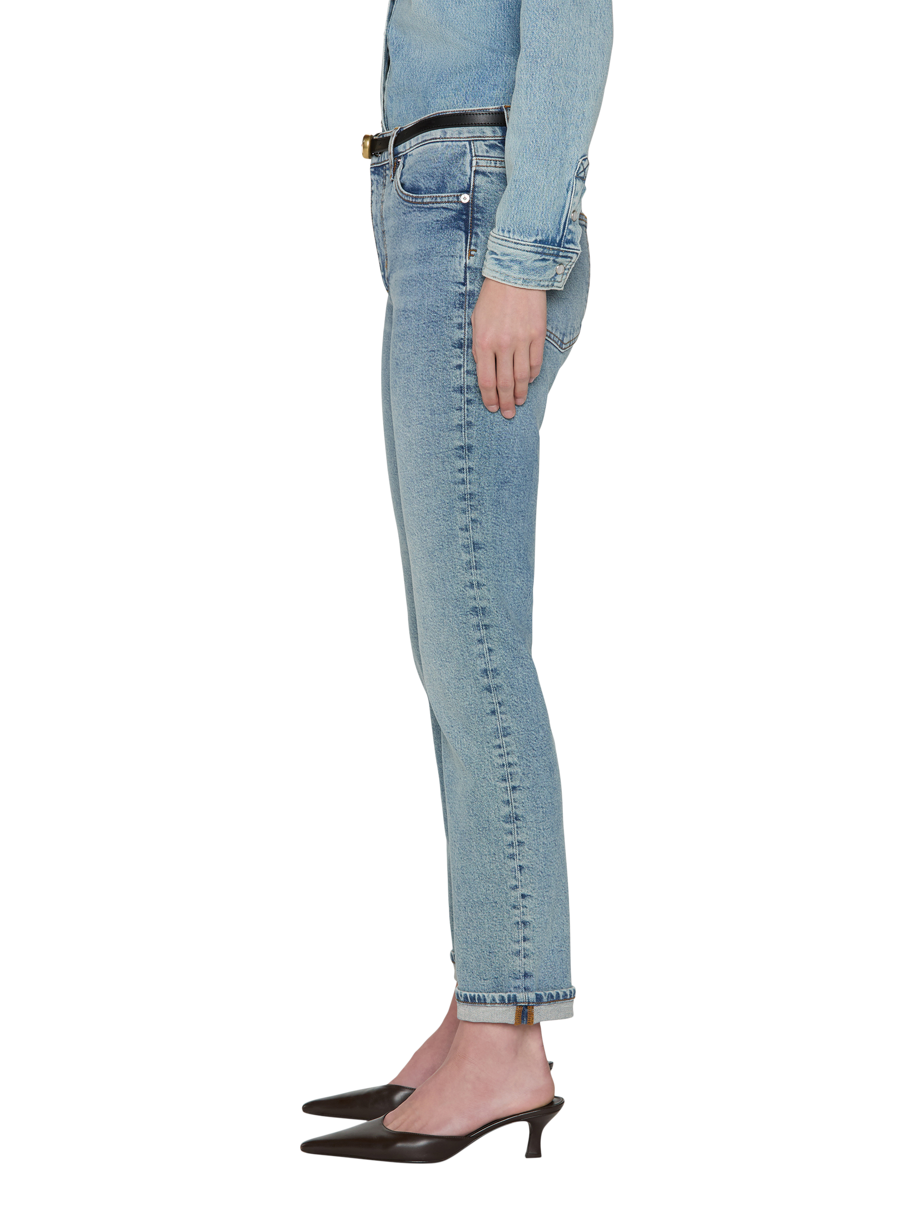A boyfriend jean for the new millennium, this mid-rise silhouette hugs the hip and finishes into an ankle-length inseam. We love to style it with a one cuff, though you're free to unroll it for a longer look. Cut in Structured Stretch denim for a vintage look with modern comfort.