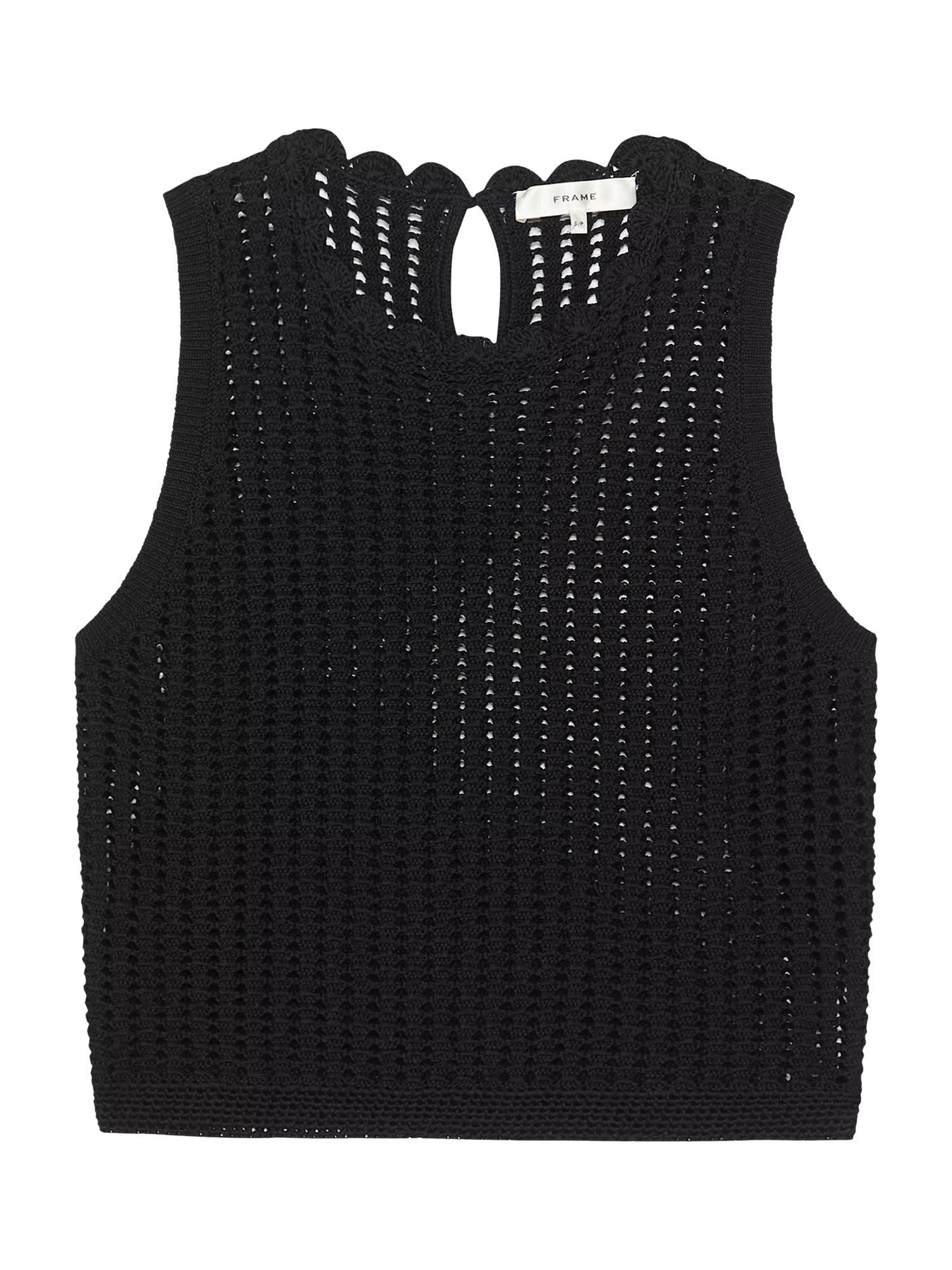 The Cropped Crochet Tank is a sleek and versatile summer piece. Featuring a sleeveless silhouette and a round collar, this lightweight, unlined tank pairs perfectly with shorts for an effortlessly chic warm-weather outfit.