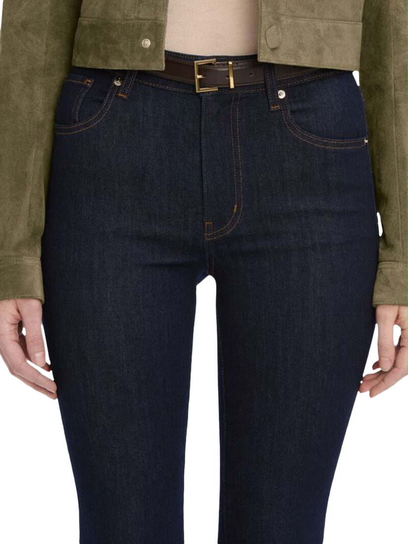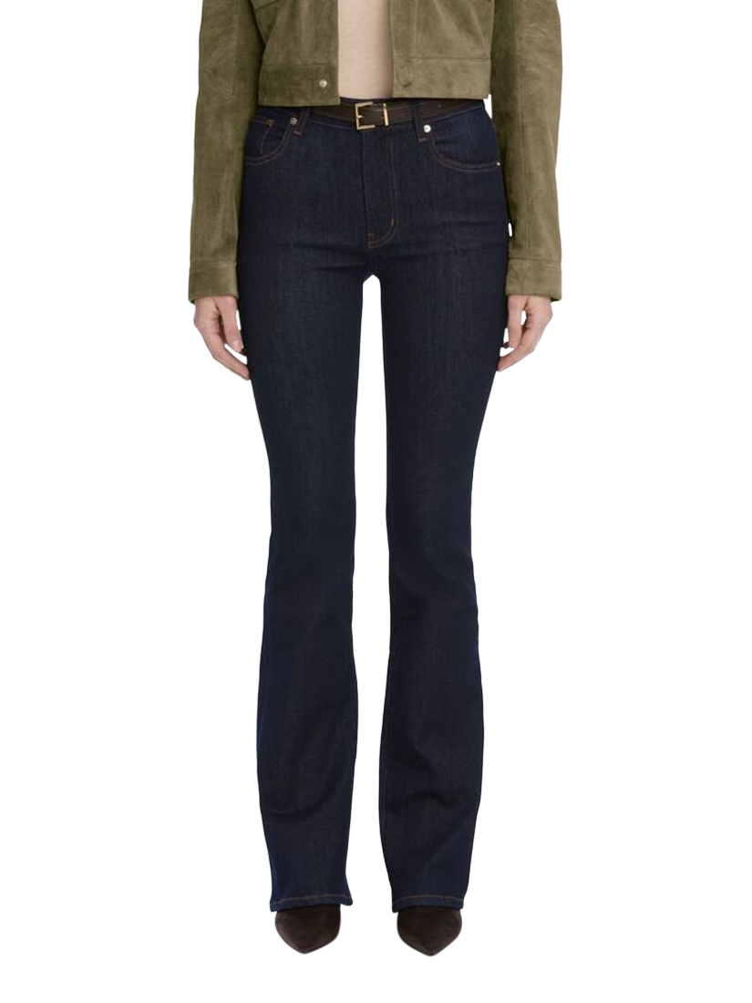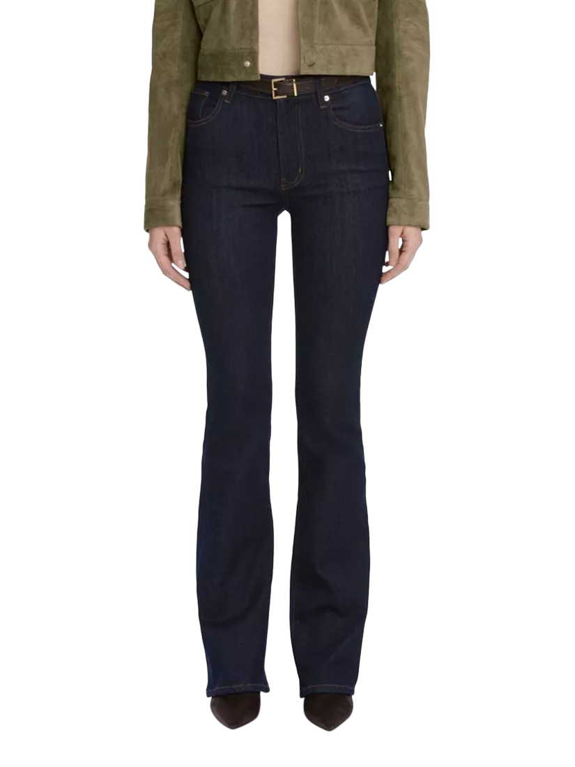 This jean offers a high-rise, full-length inseam, and breaks into a true boot leg. Cut in super stretch denim for comfortable, all-day wear.