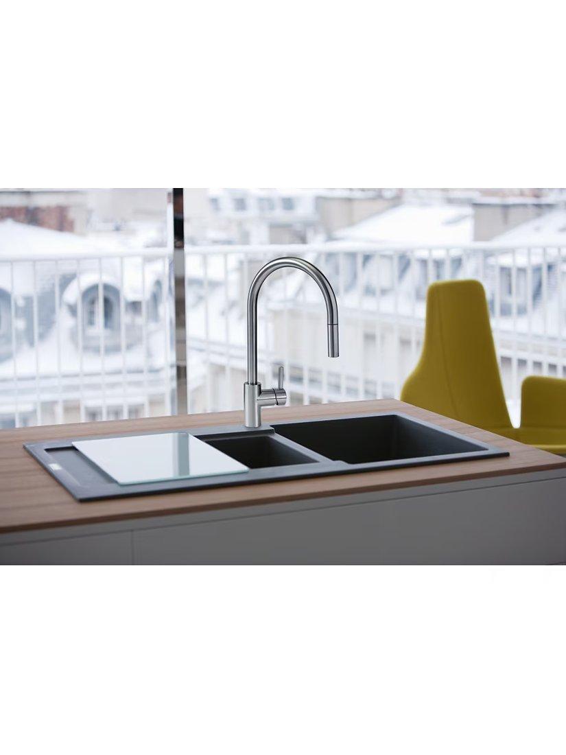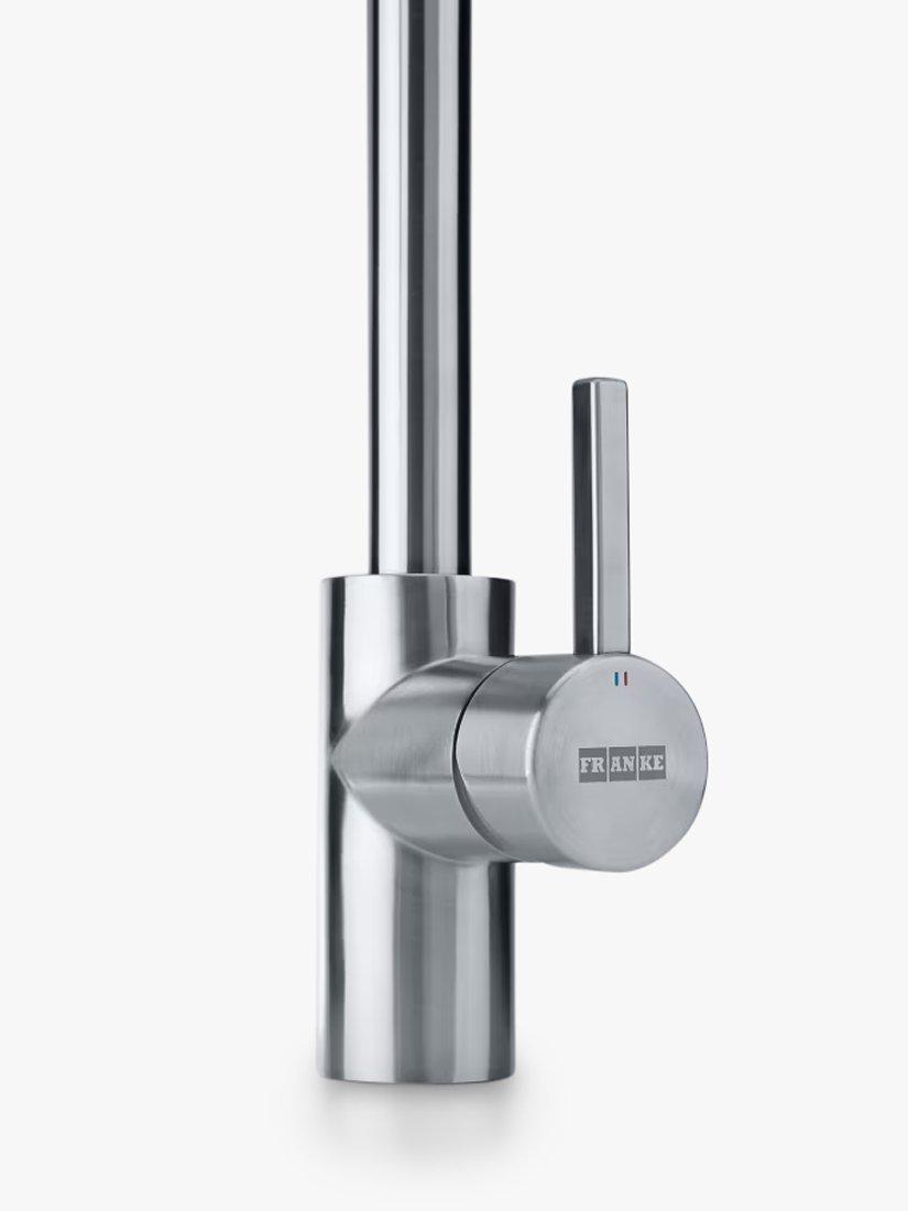 Franke's contemporary Eos Neo Pull-Down kitchen mixer tap has a single side lever and 180-degree rotating spout with a pull-down spray to give you total control over the direction of water flow in the sink. The tap is suitable for high-pressure water systems only.