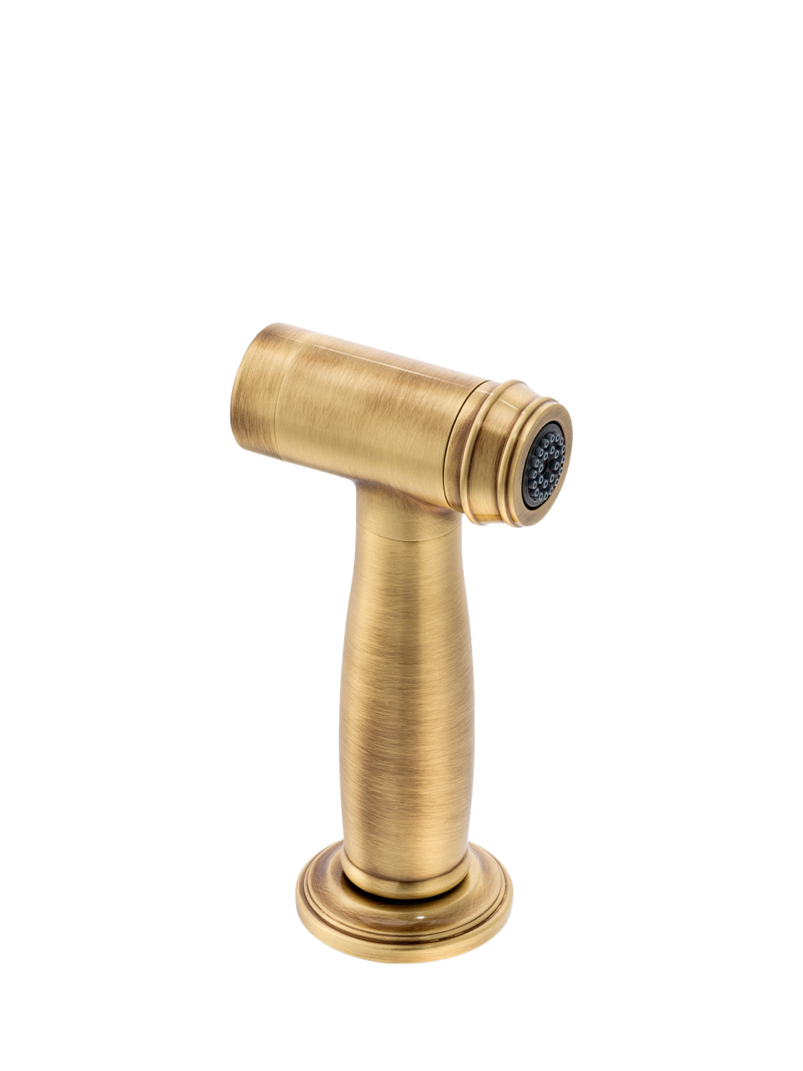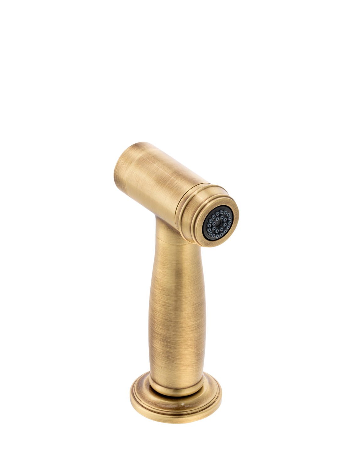 Perla Pull-Out Rinse Tap, a shower head with rear push-button control dispensing cold water only. Classical design from the Franke Heritage Collection.