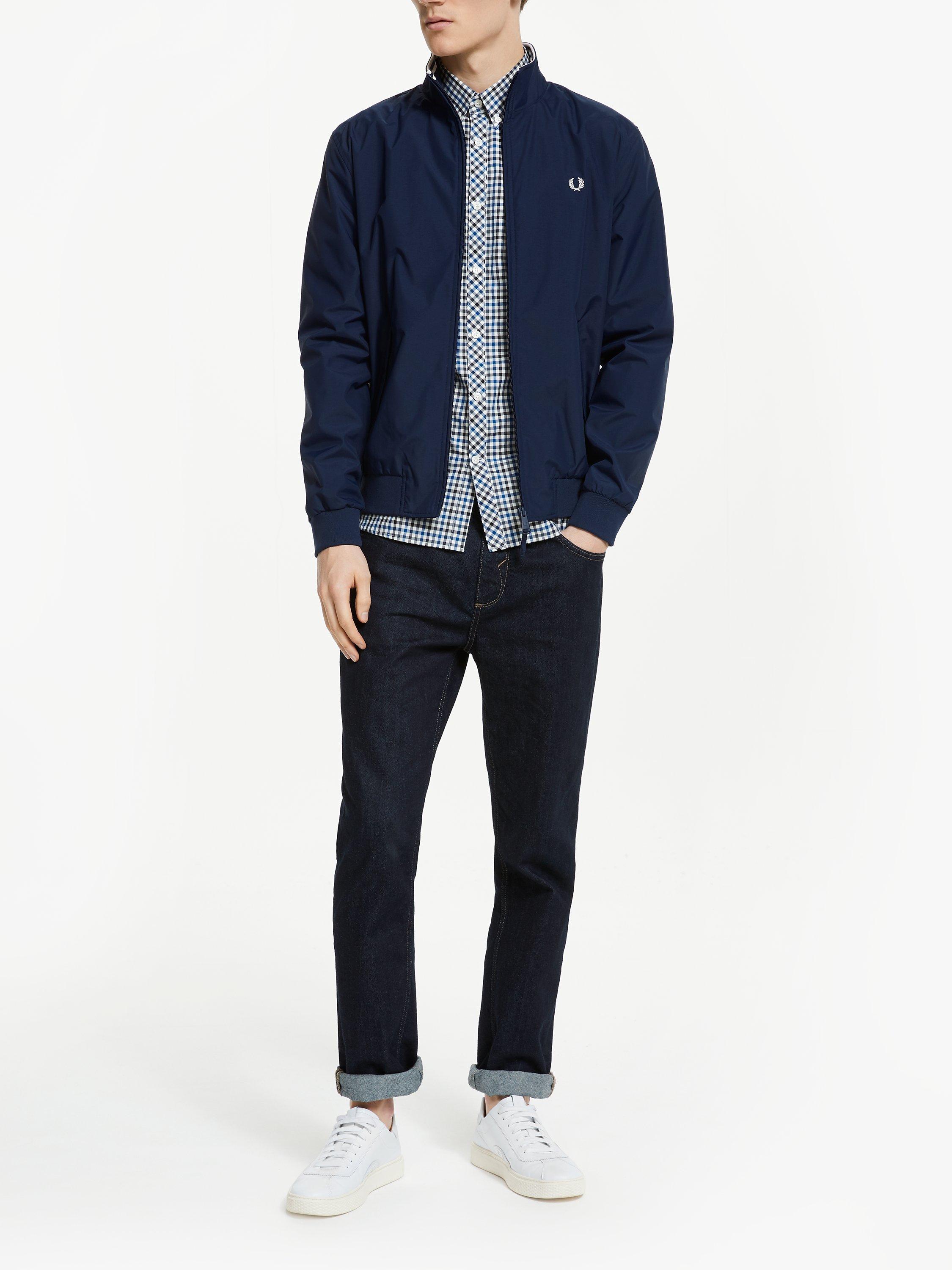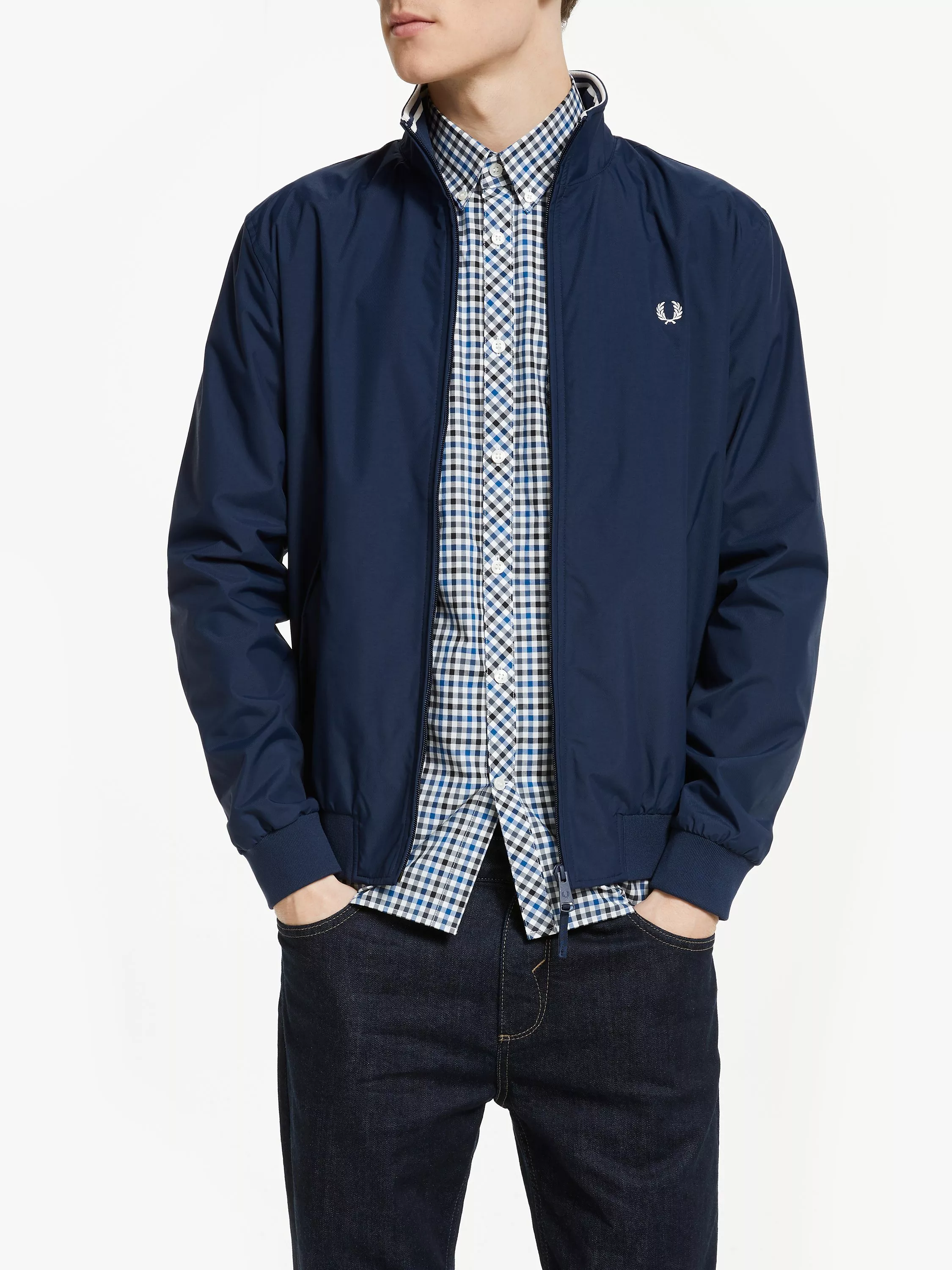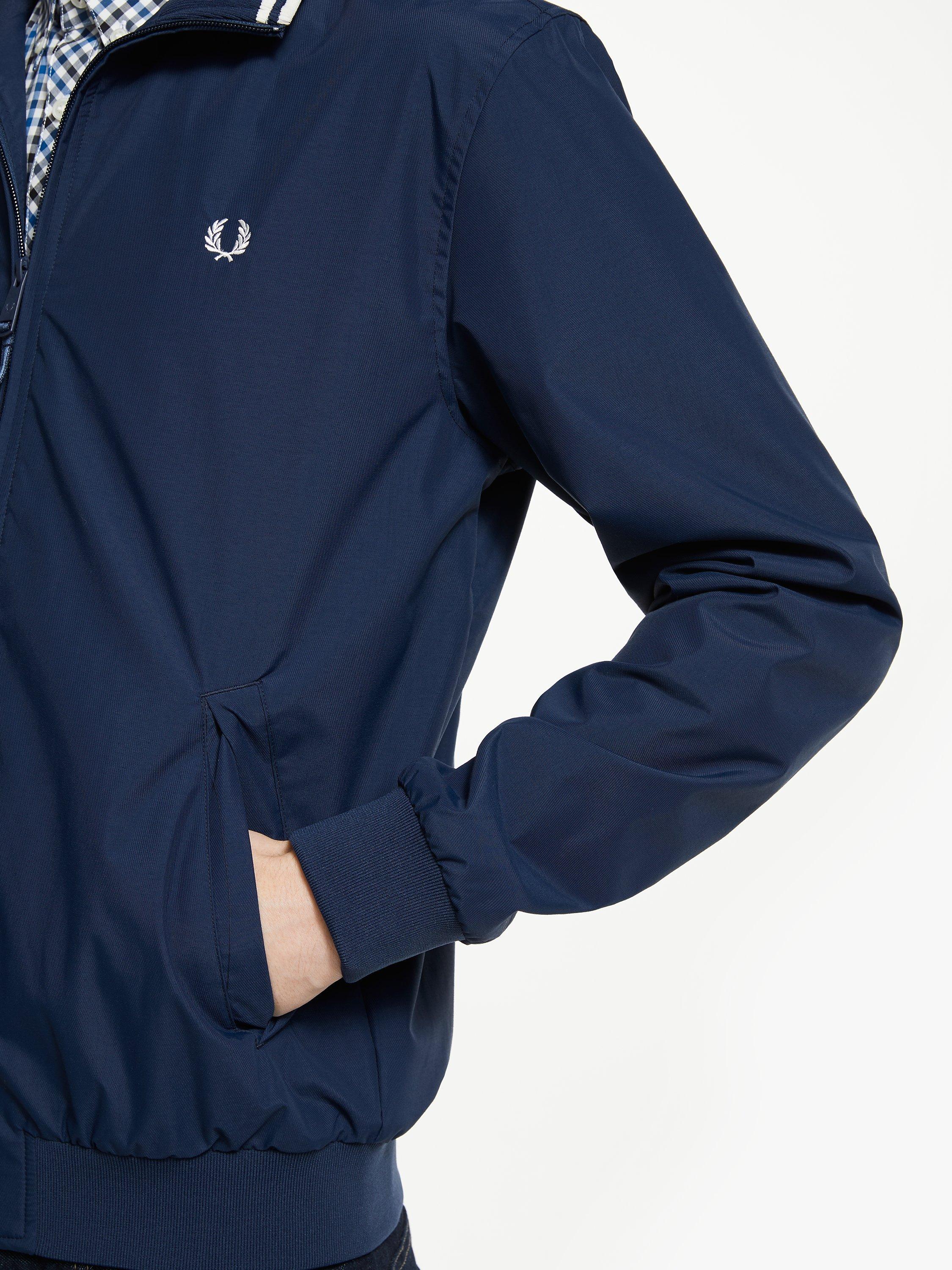 This Fred Perry Brentham style is a transitional jacket for all year round. Designed in a lightweight fabric, this features a stand up contrasting collar, ribbed hem and cuffs and contrasting branded embroidery. Completed with practical side pockets, this can be worn for smart or casual occasions.