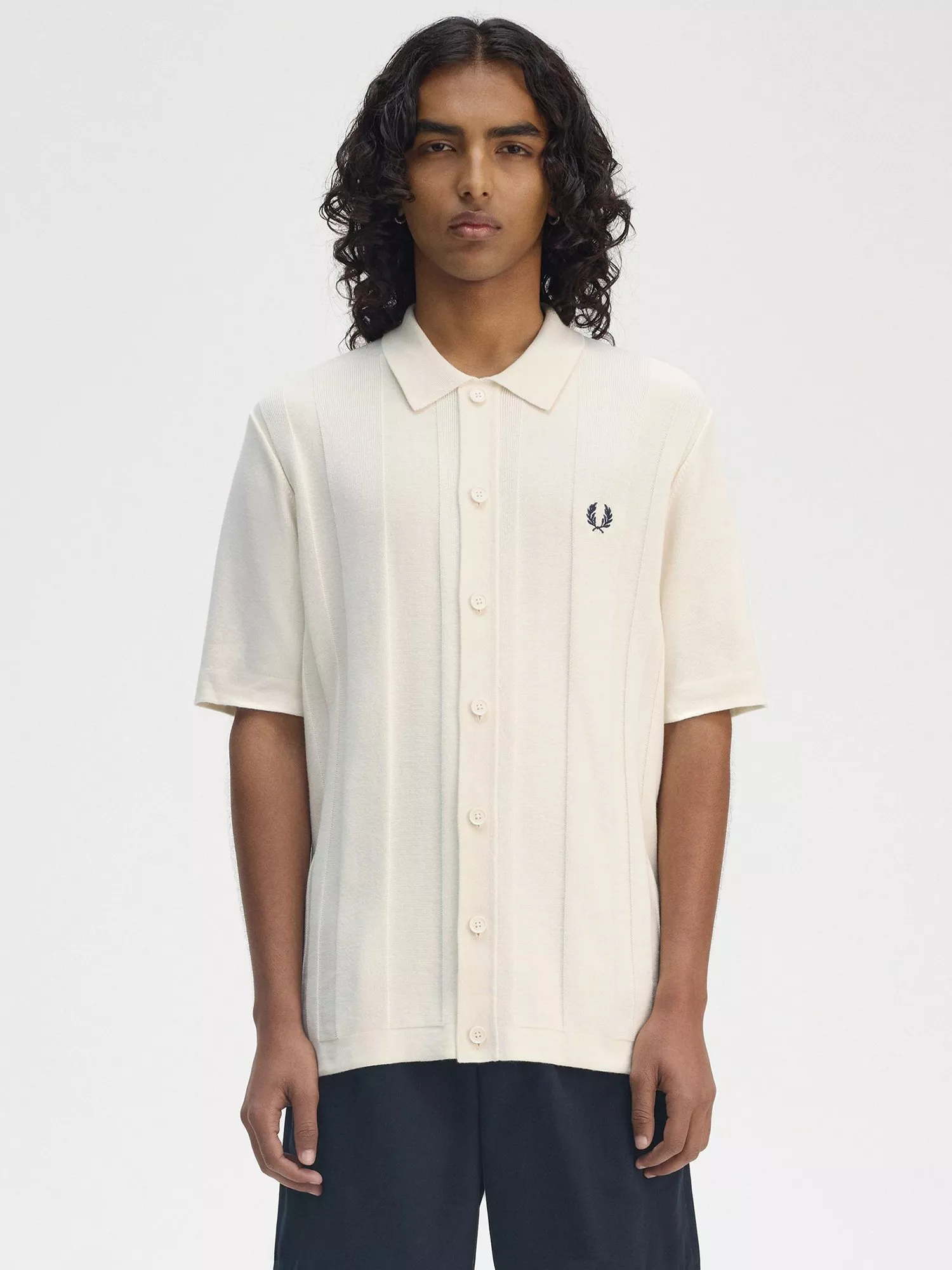 Blending knitwear with Fred Perry's design prowess, this short sleeve shirt scores an ace. Featuring full button down frontage, it's finished with the brand's laurel wreath embroidery to the left chest.