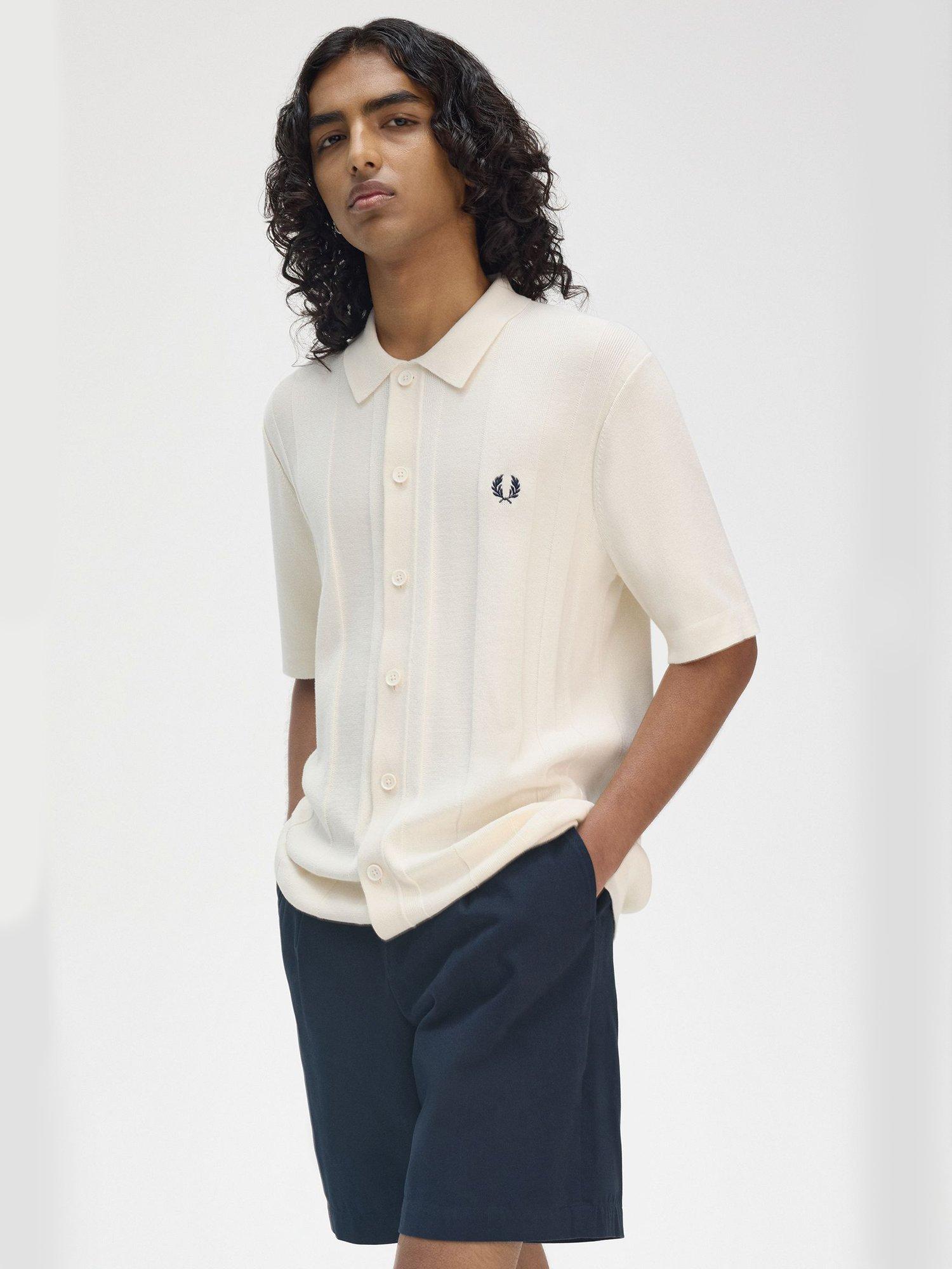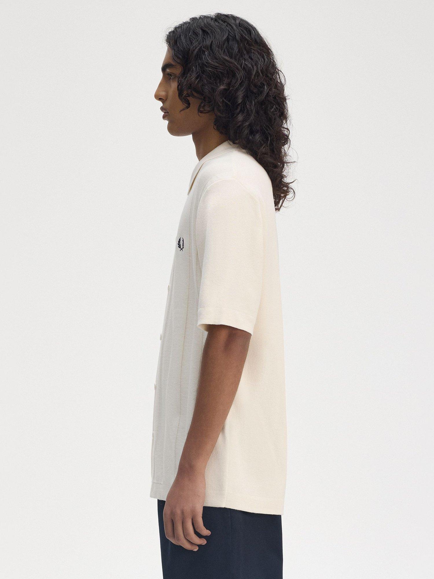 Fred PerryButton Through Short Sleeve Cotton Shirt, Ecru
