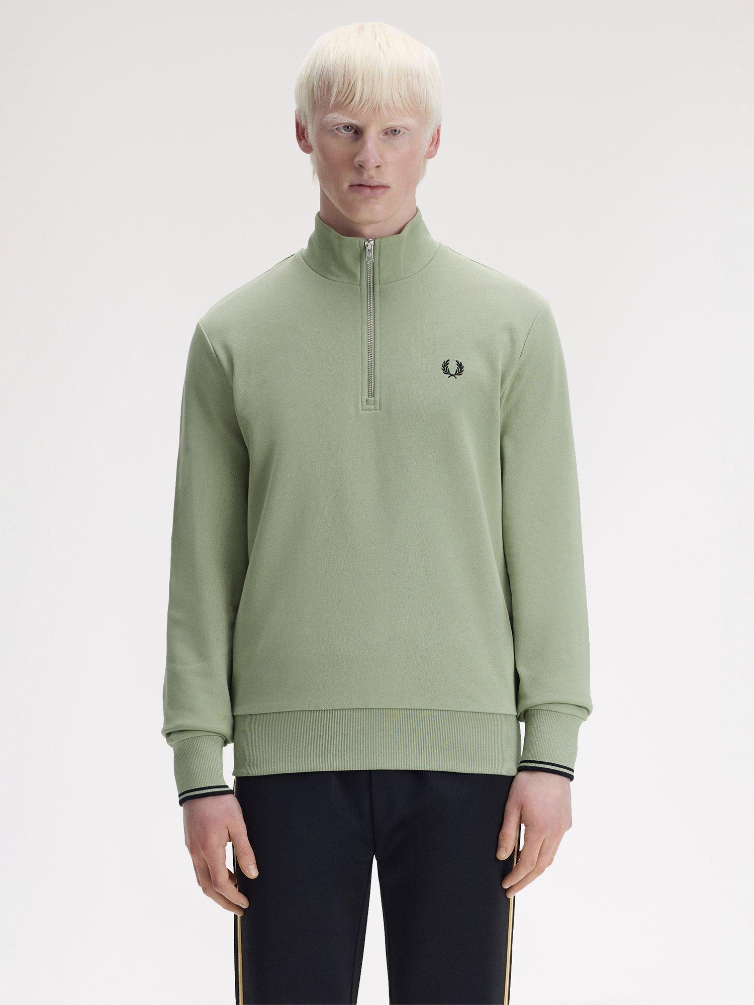 A half zip sweatshirt from Fred Perry. The clever stripe detail adds sharpness, while soft cotton keeps you comfortable and ready for whatever comes your way.