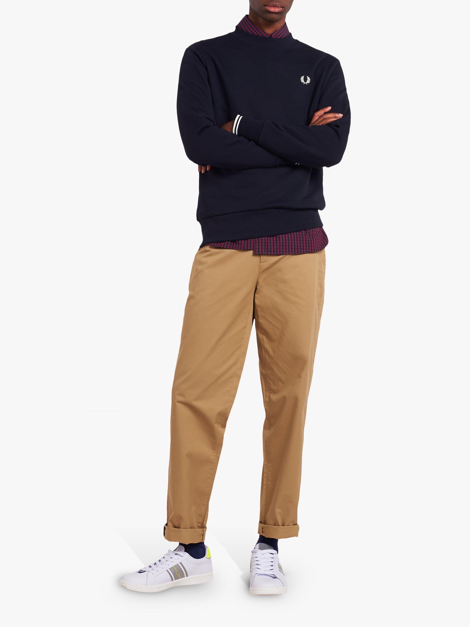 Adopted by sports-players in winter training sessions, this cotton sweatshirt from Fred Perry is a sportswear classic. A mid-weight handle in loopback cotton, rib trims and twin-tipped cuffs complete the iconic design.