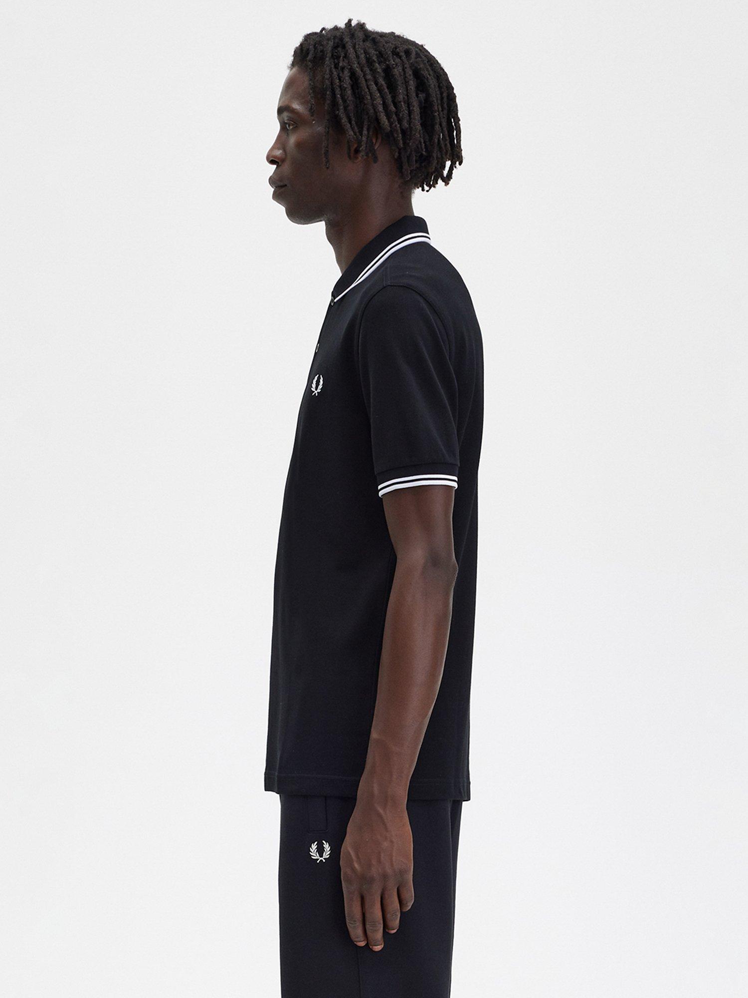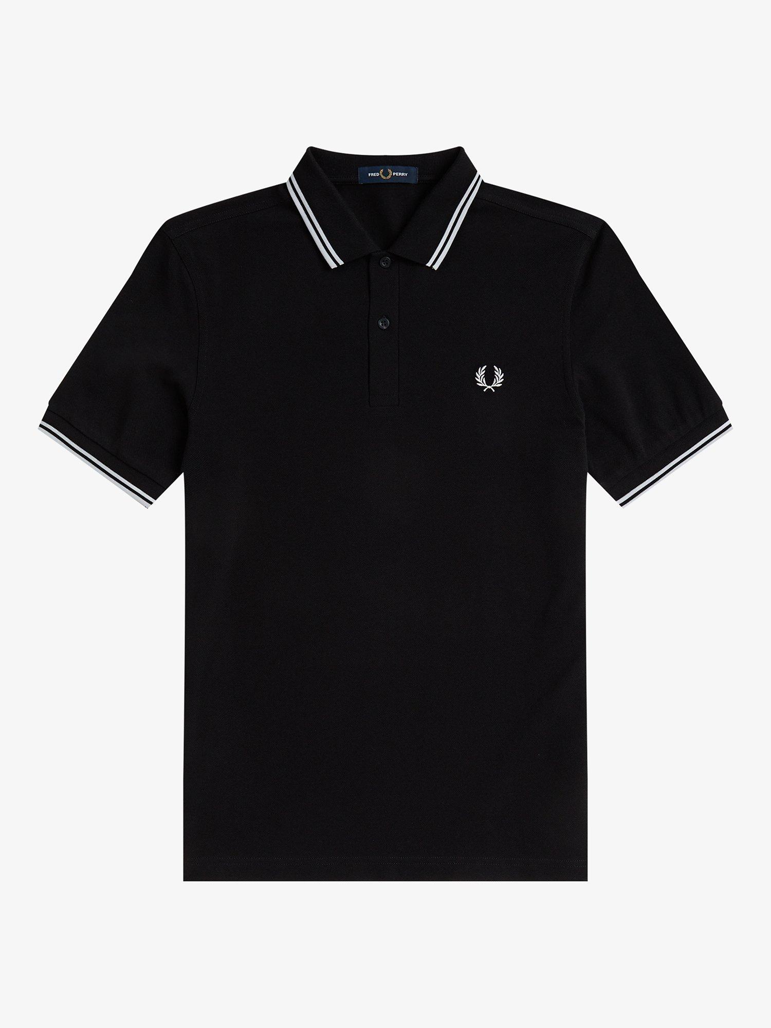 This cotton pique shirt from Fred Perry features the trademark twin tipping running across a slightly smaller collar and each cuff. The signature Laurel Wreath embroidery sits on the chest, and the shirt fits with two buttons.