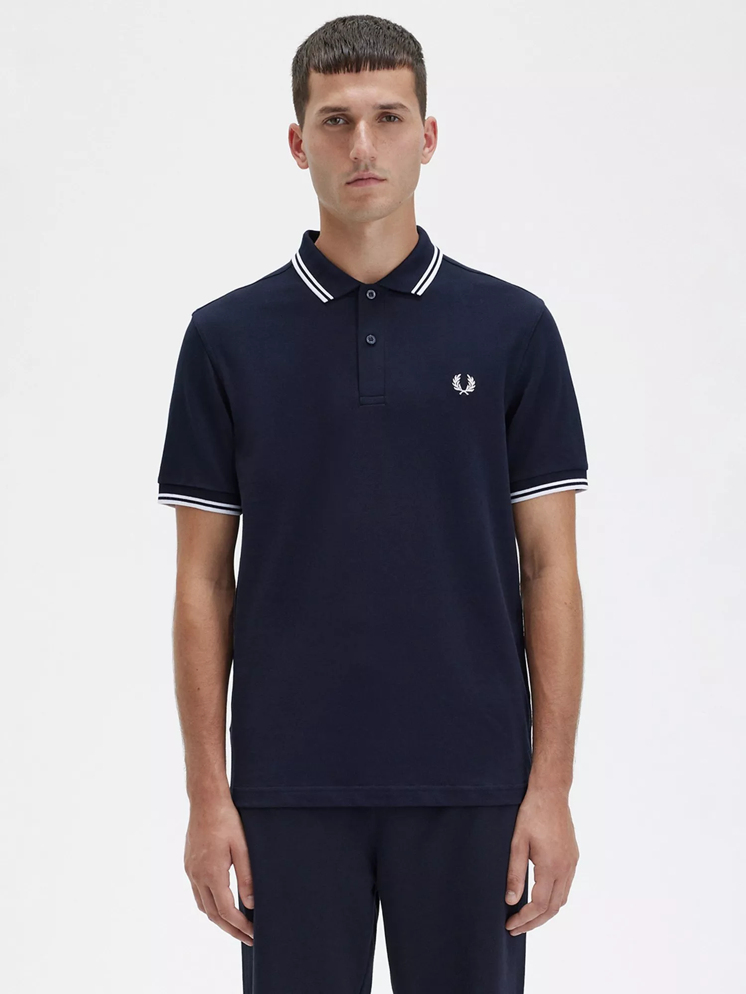 This cotton pique shirt from Fred Perry features the trademark twin tipping running across a slightly smaller collar and each cuff. The signature Laurel Wreath embroidery sits on the chest, and the shirt fits with two buttons.