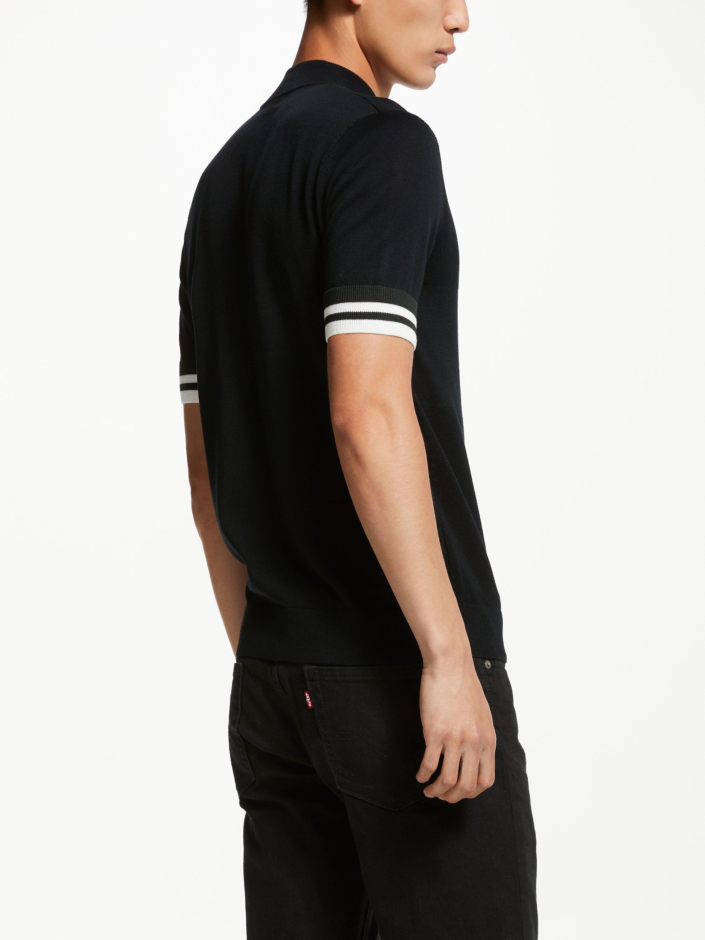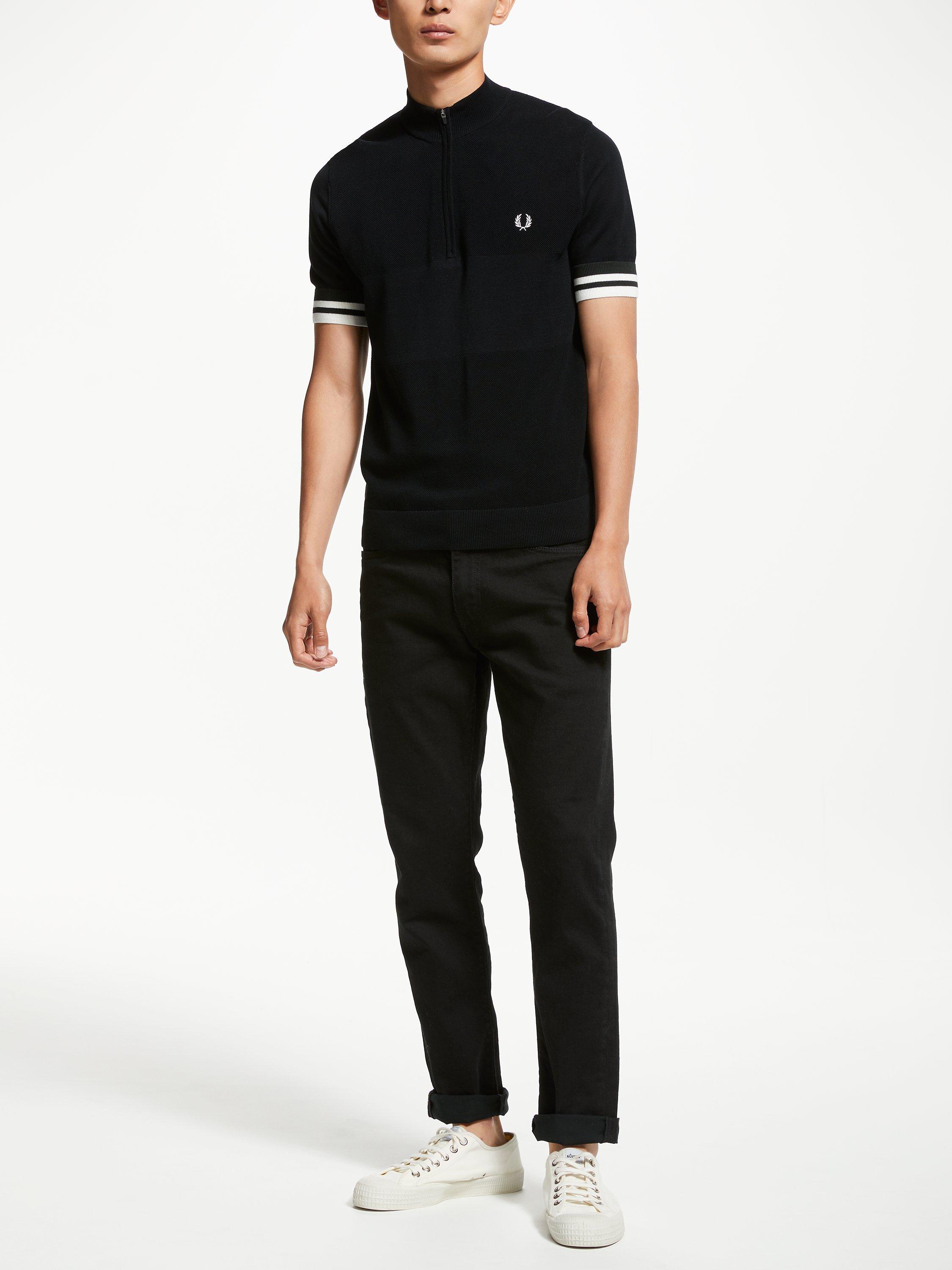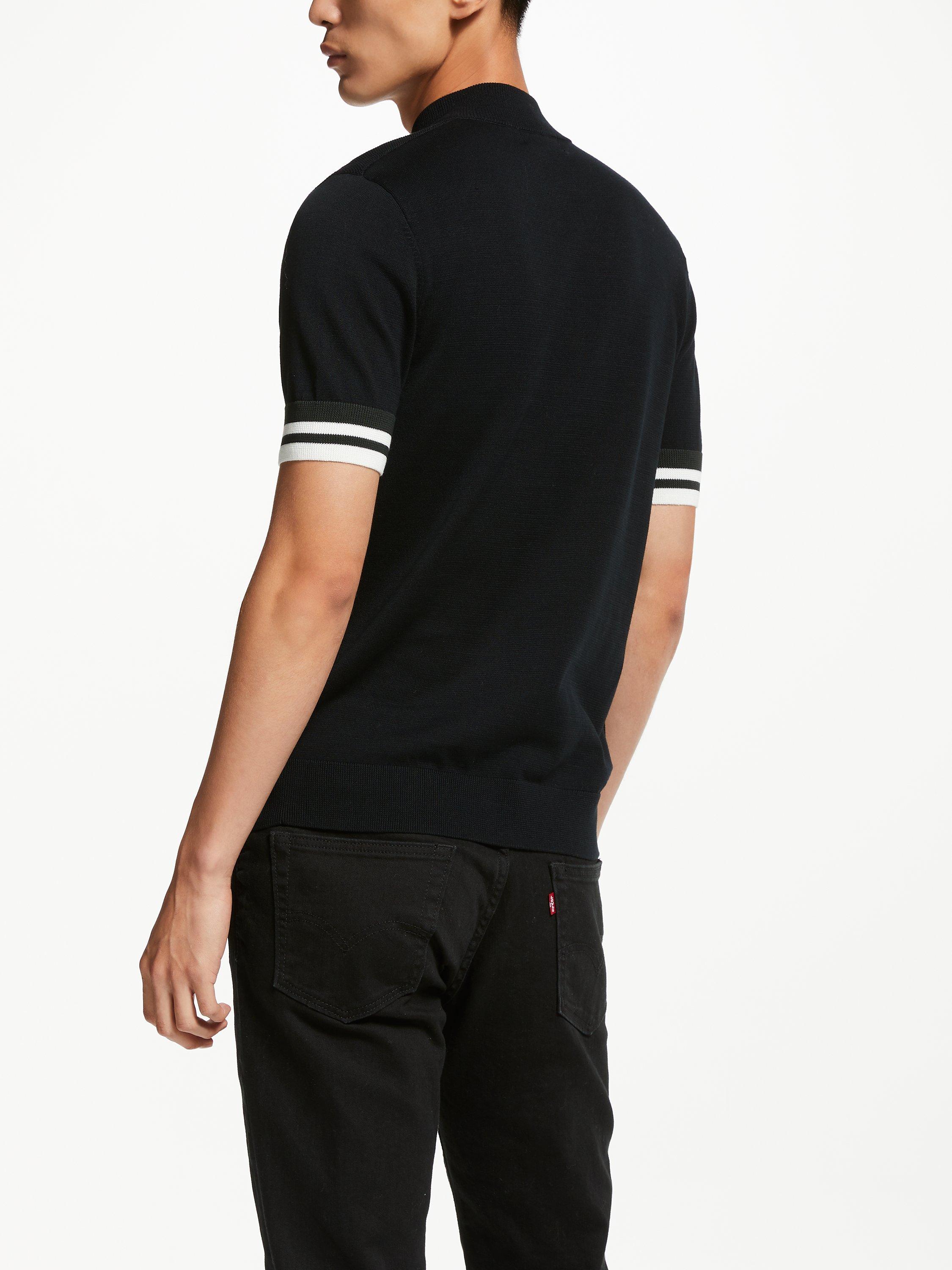 Designed with a zip neck and cut to a slim fit, this knitted polo shirt from Fred Perry is accented with tipping on the sleeves, a button placket and signature brand logo embroidery on the chest. Pair it with dark or light jeans with trainers for effortless casual style.