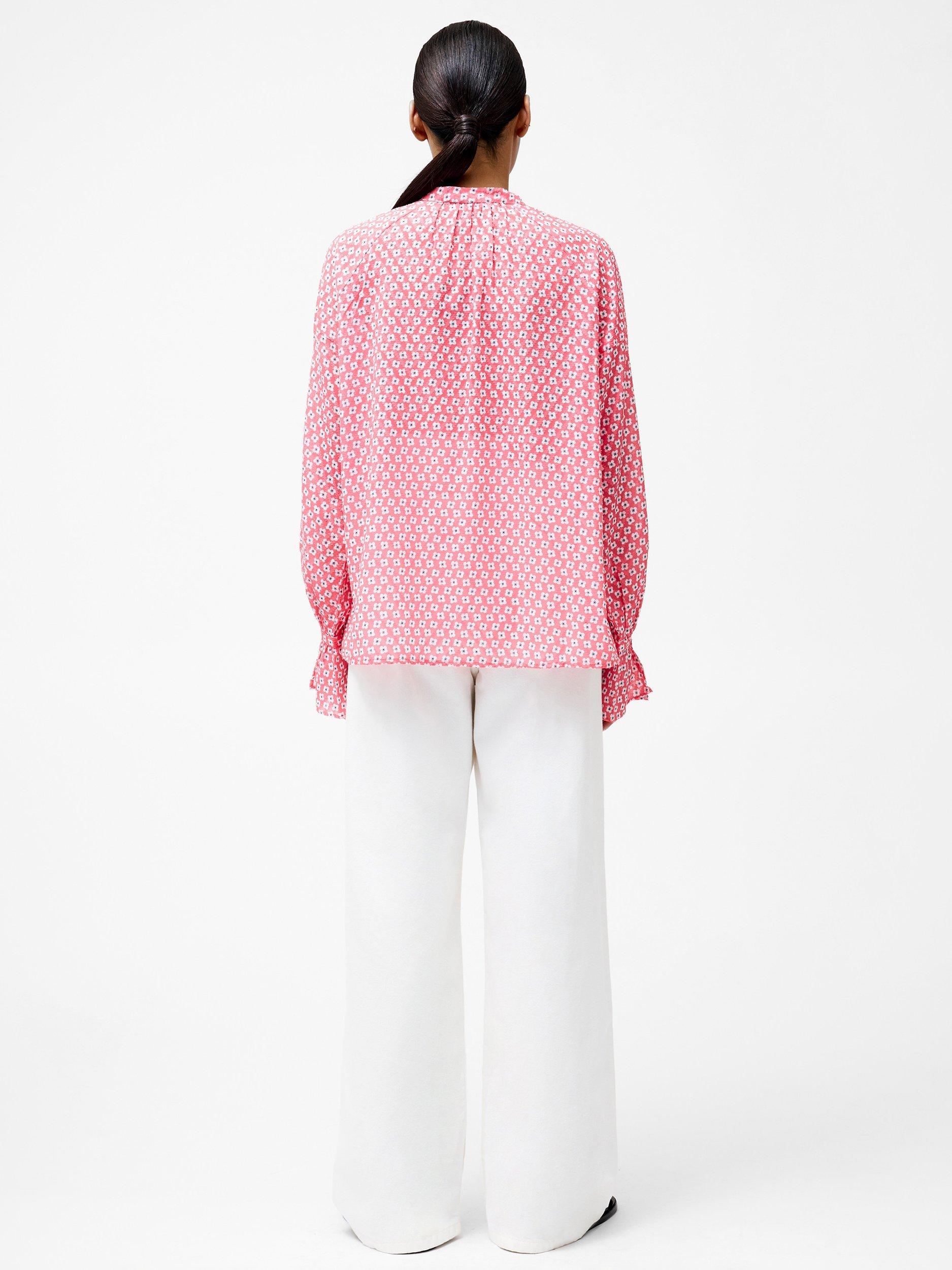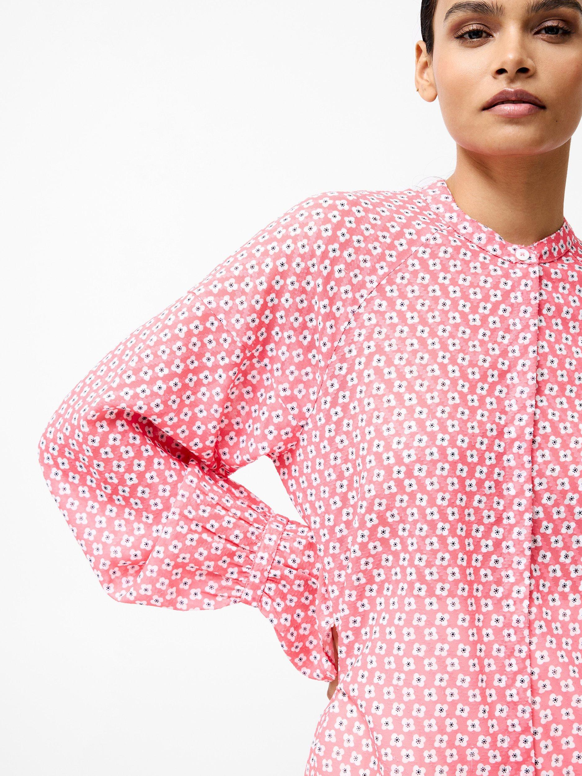 The lightweight Fil Coupe Shirt shirt offers a playful take on classic tailoring. A delicate floral meets geometric pattern mixes with subtle texture to bring a flowing, relaxed silhouette to life, whilst a grandad collar and flare cuffs add understated charm. This style effortlessly combines comfort and style alongside versatility to be worn tucked into trousers for a refined look or left loose for a casual feel.