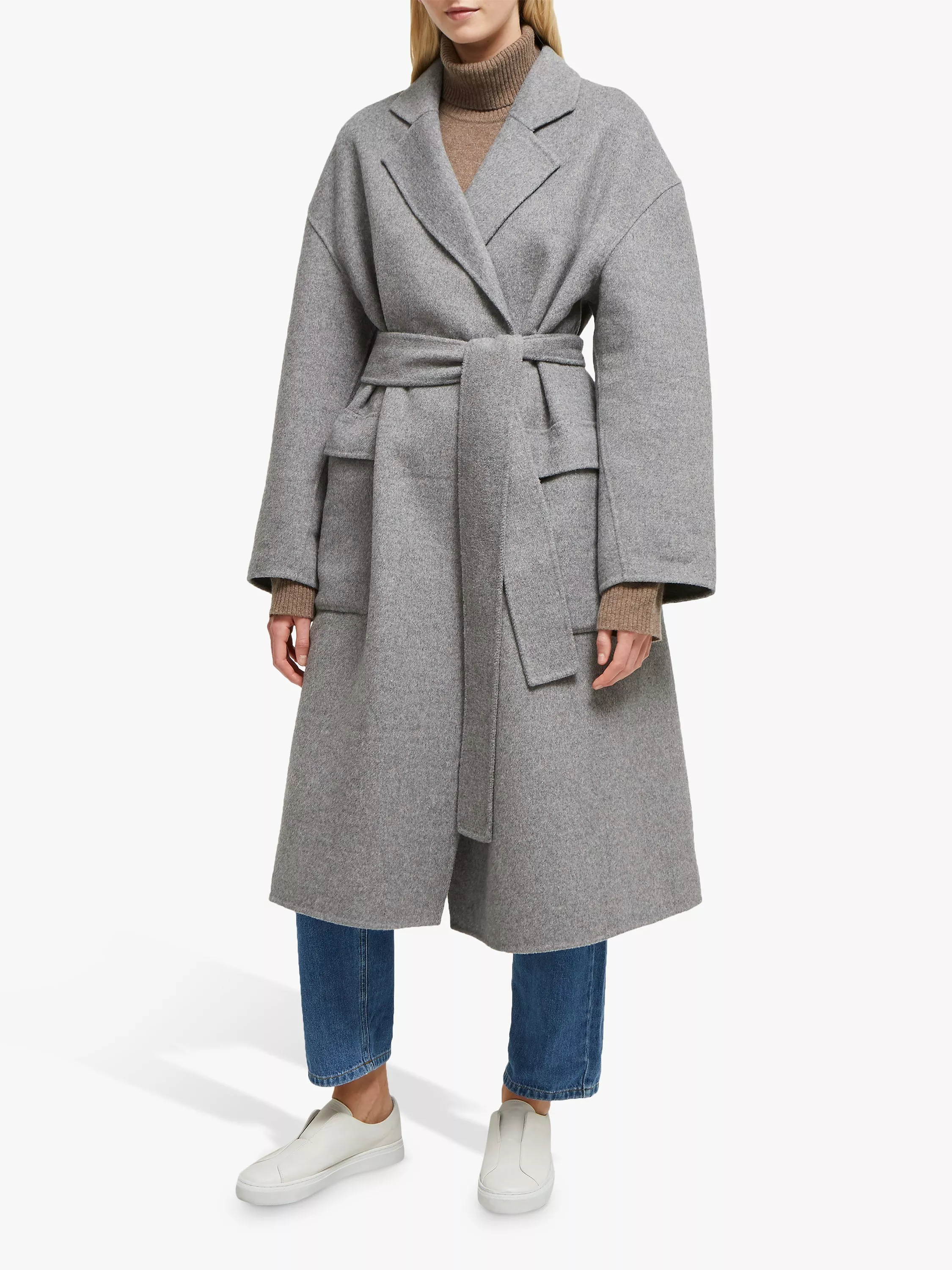 This cocoon-shaped, belted coat from French Connection is made from a warm wool blend, ideal for chilly days. Its boxy fit and relaxed, dropped shoulder design can be cinched at the waist to create shape. Complete with two large pockets to the front, layer over rollneck jumpers and denim for a cool, off-duty look.